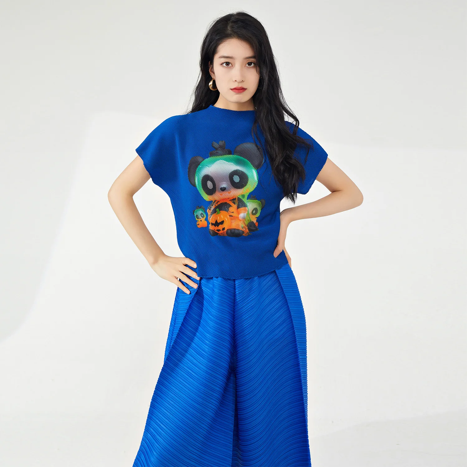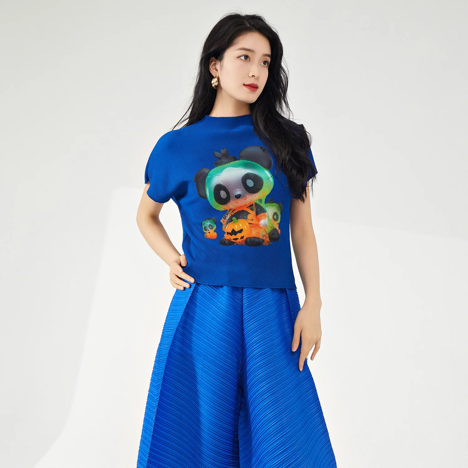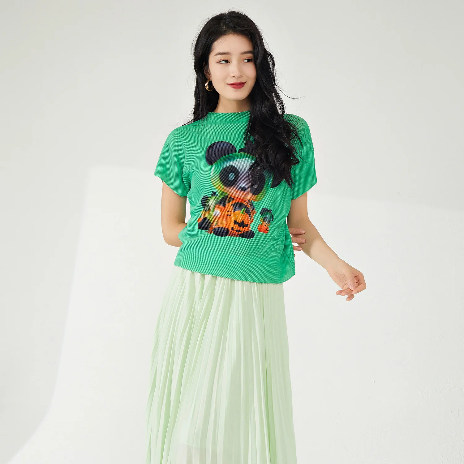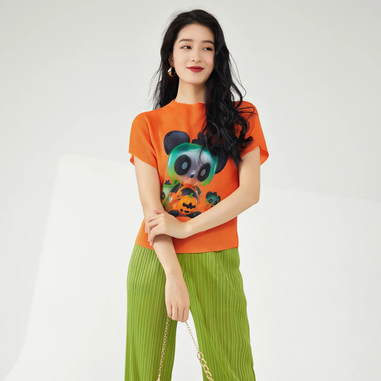 Summer Women's Casual T-Shirt Elegant Pleated Design With Breathable Stretch Printed Top Personality and Temperament