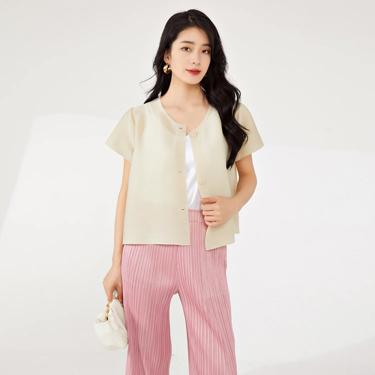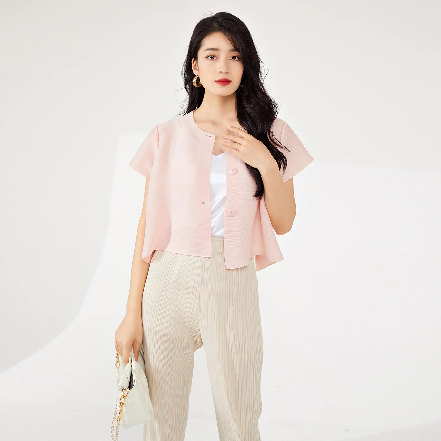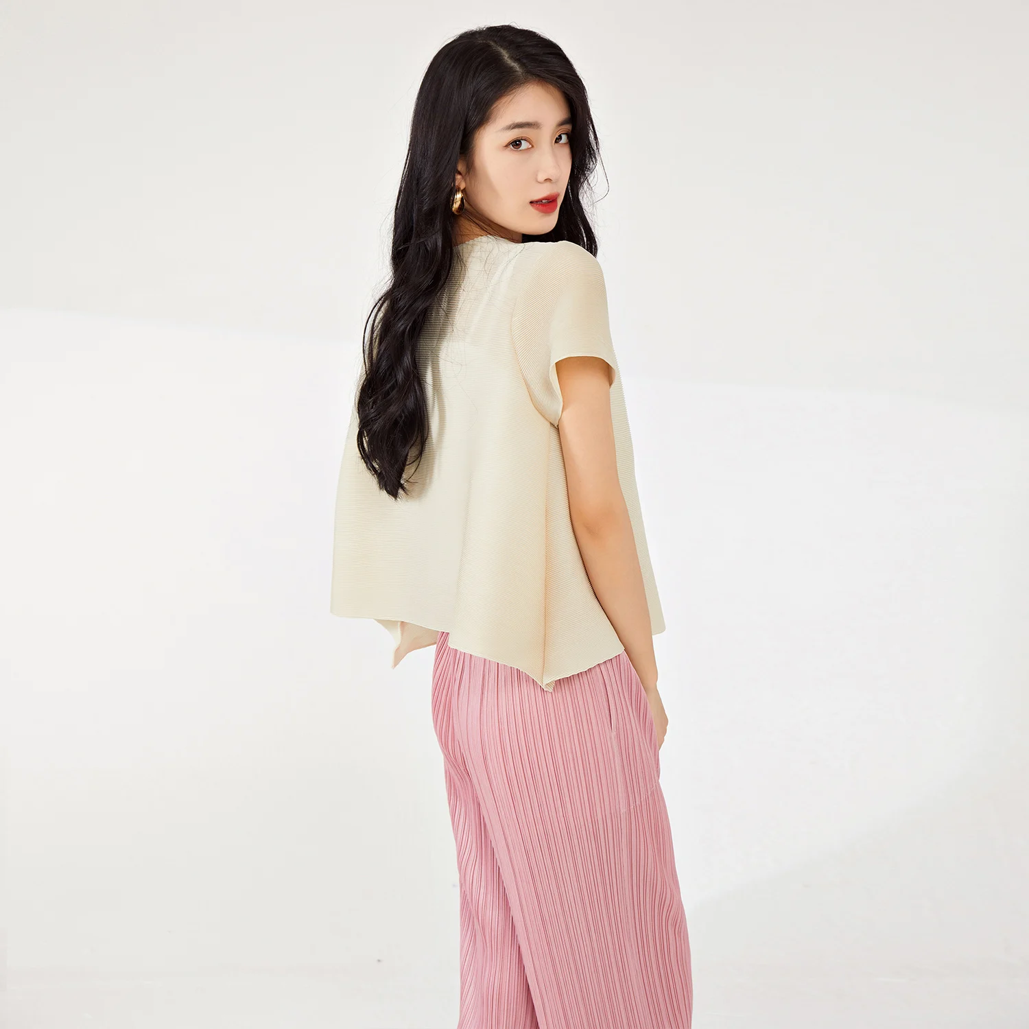 Women's Casual Pleated Tops Large Size Summer New Styles Loose Western-Style T-Shirts and Short Cardigans