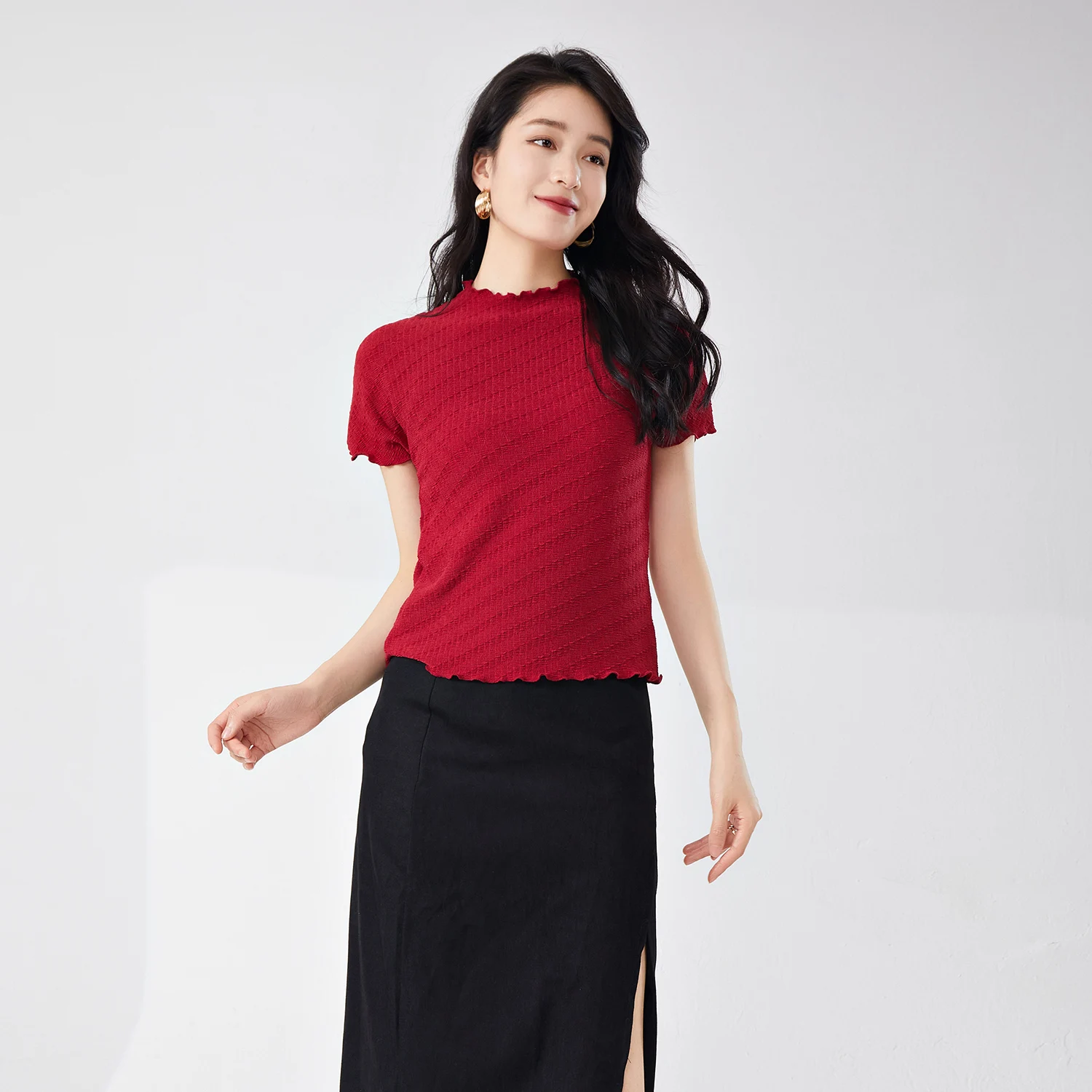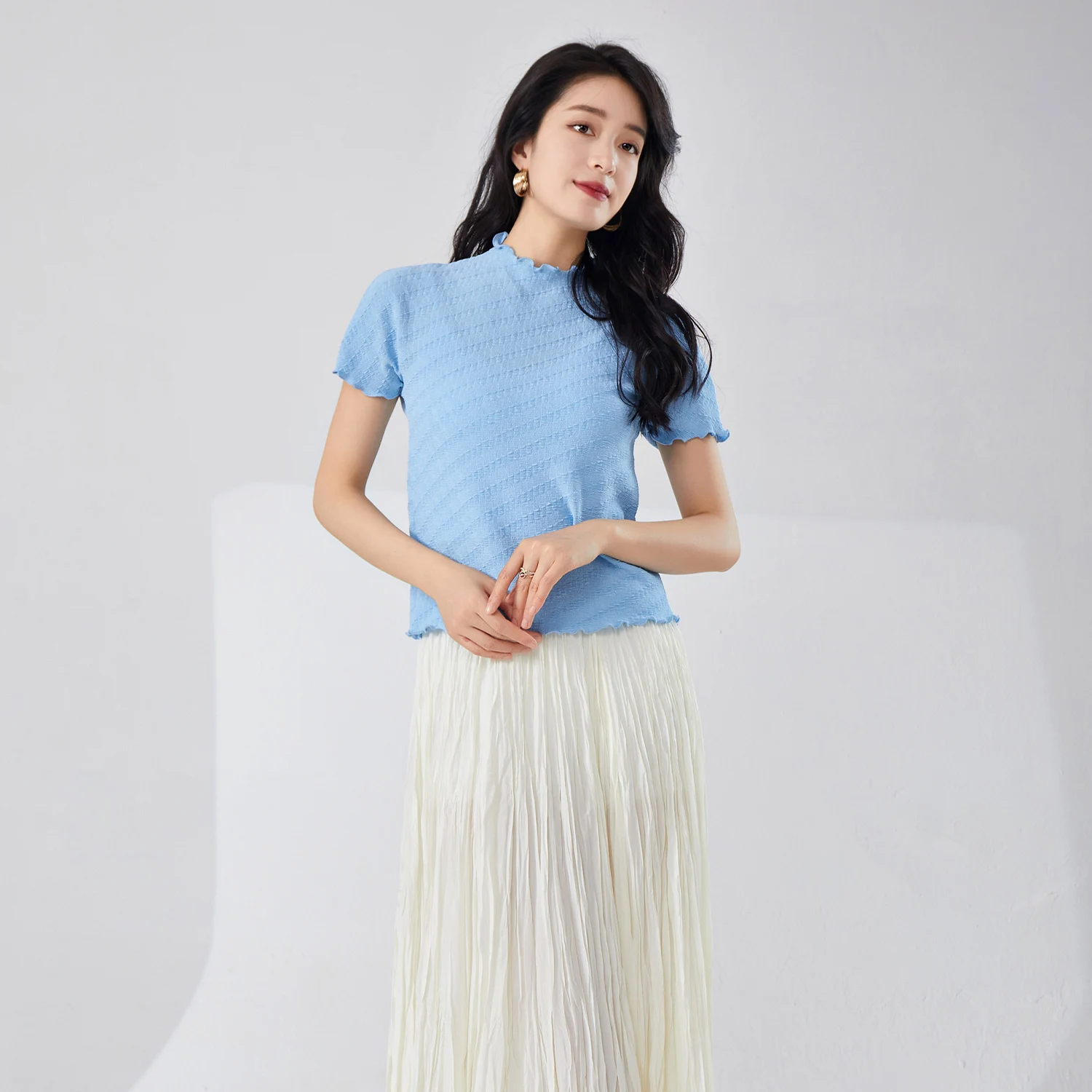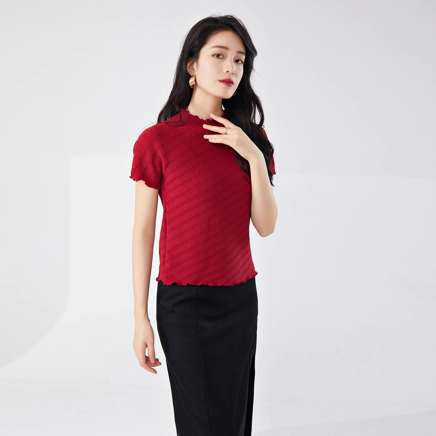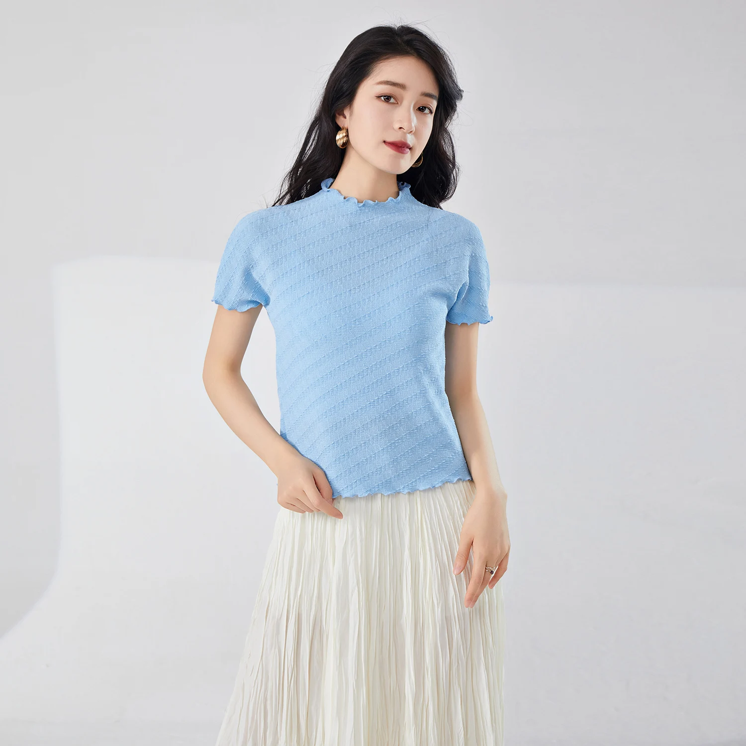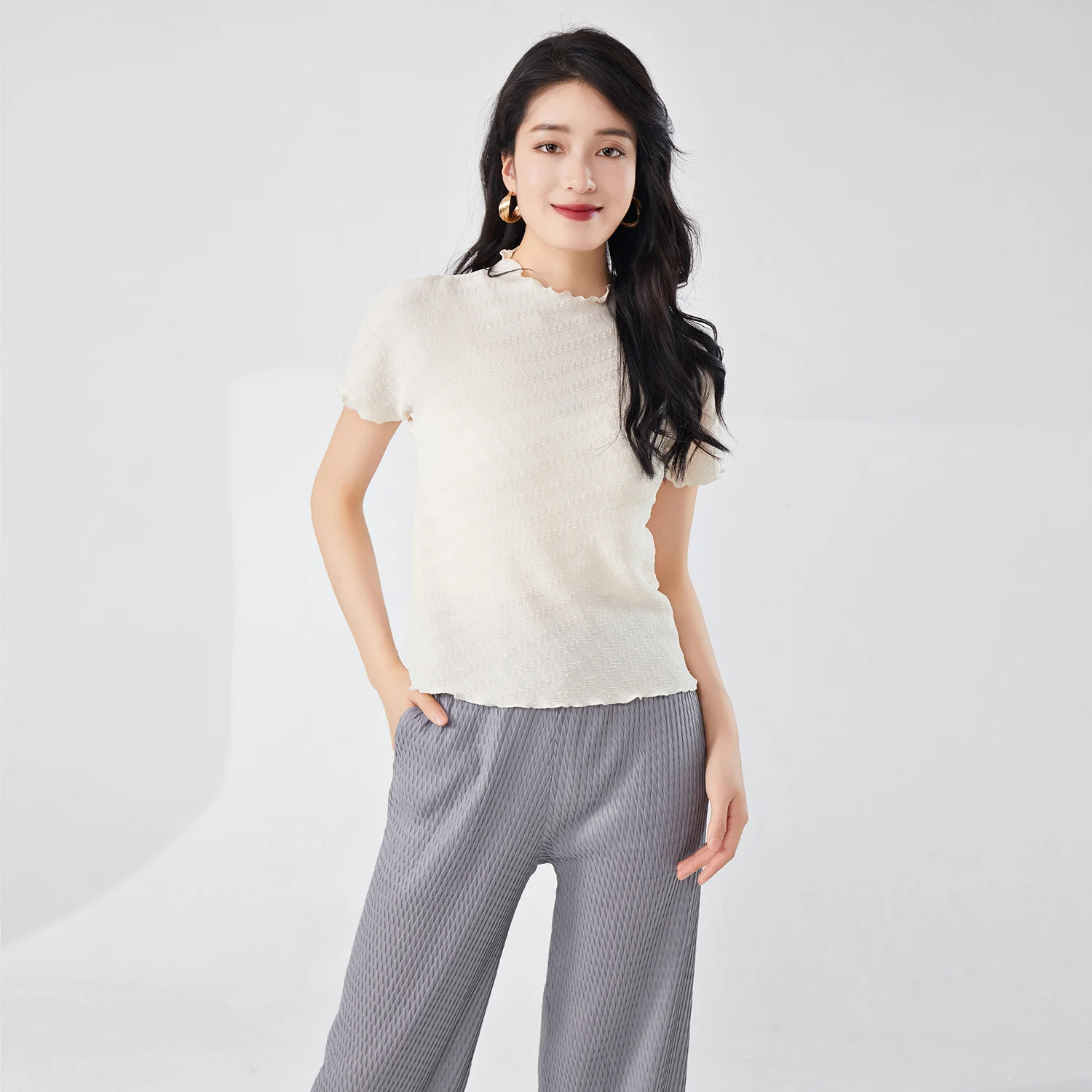 Hot-Selling Women's Casual Short T-Shirt Pleated Design With Crew Neck Breathable Short-Sleeved Top Special Summer Commuting
