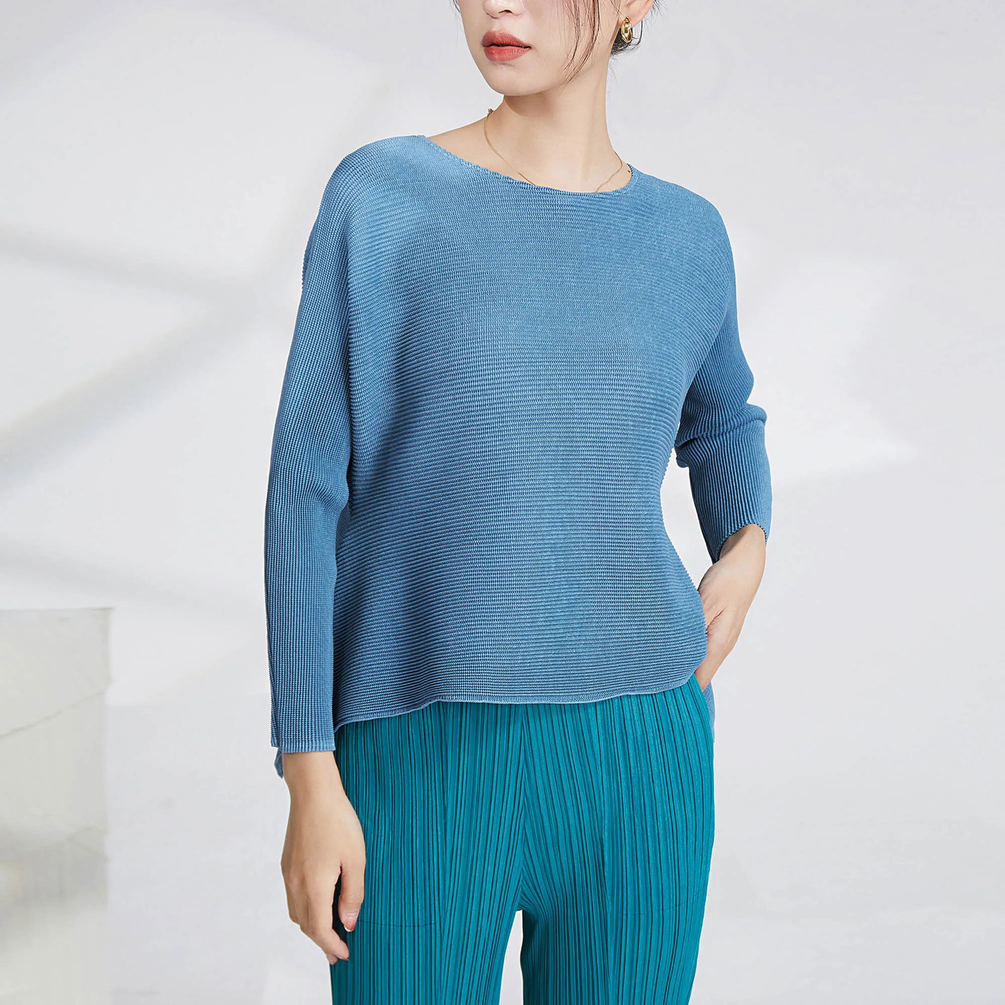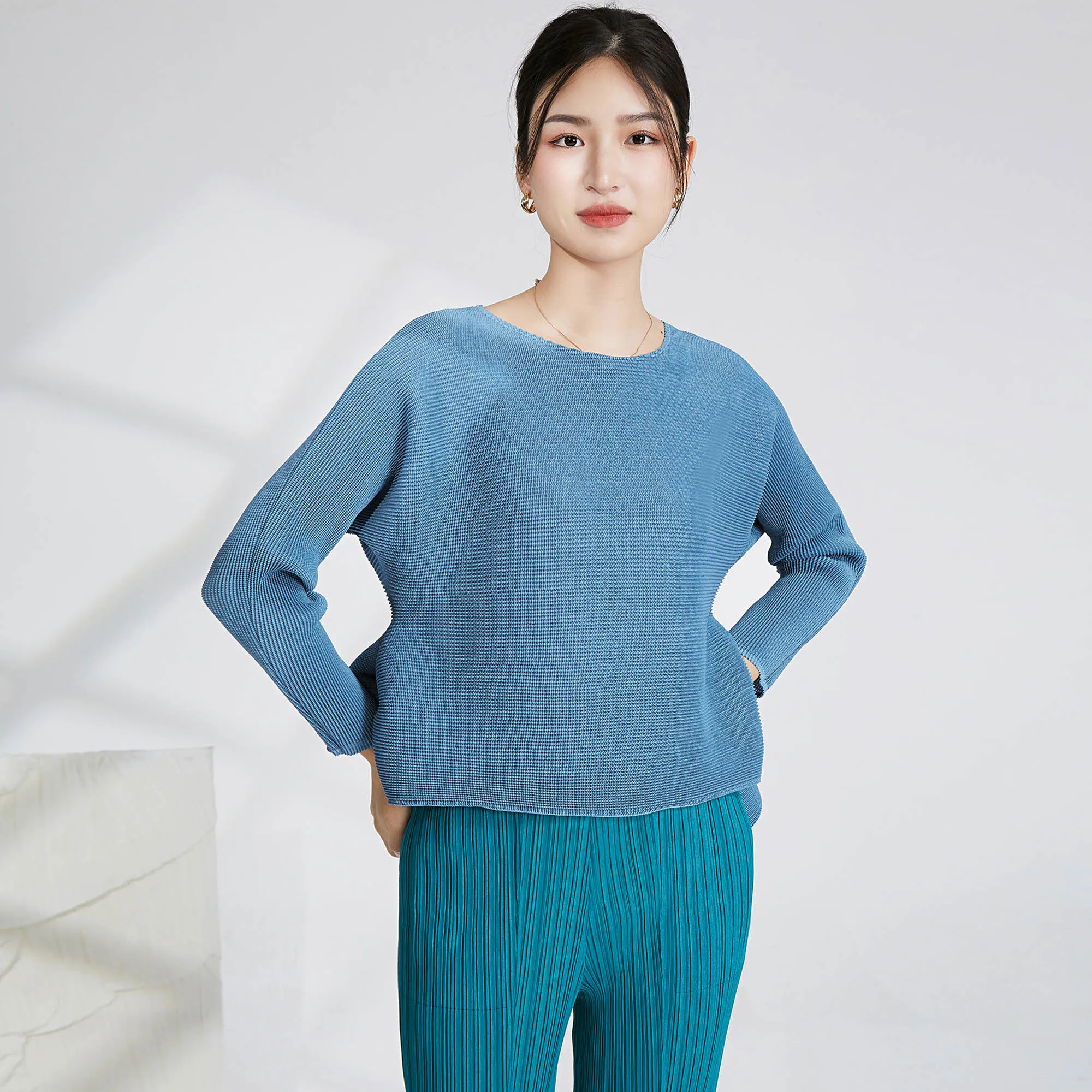 Women's Blouse Miyake Pleated Tops 2025 Ladies Long Sleeve Tops Shirt Clothing Casual Style Loose Hem Shirts