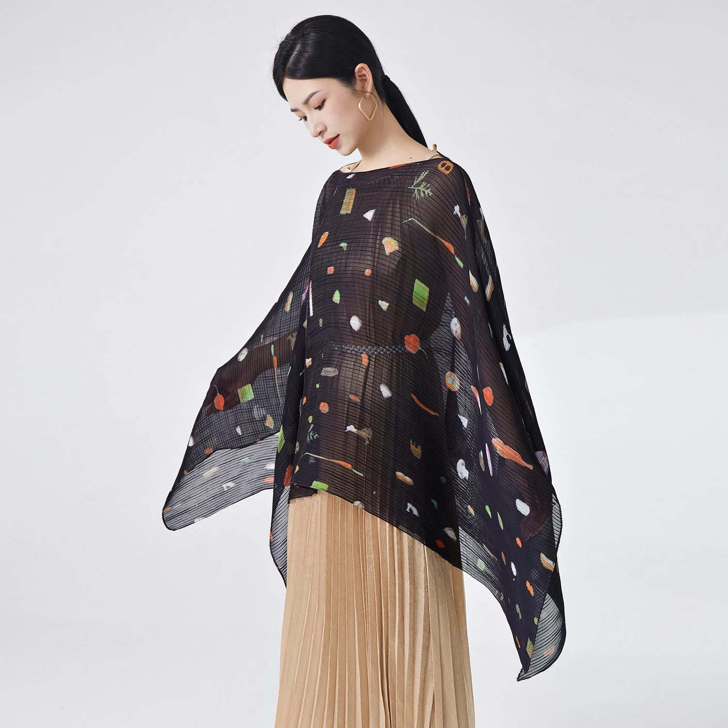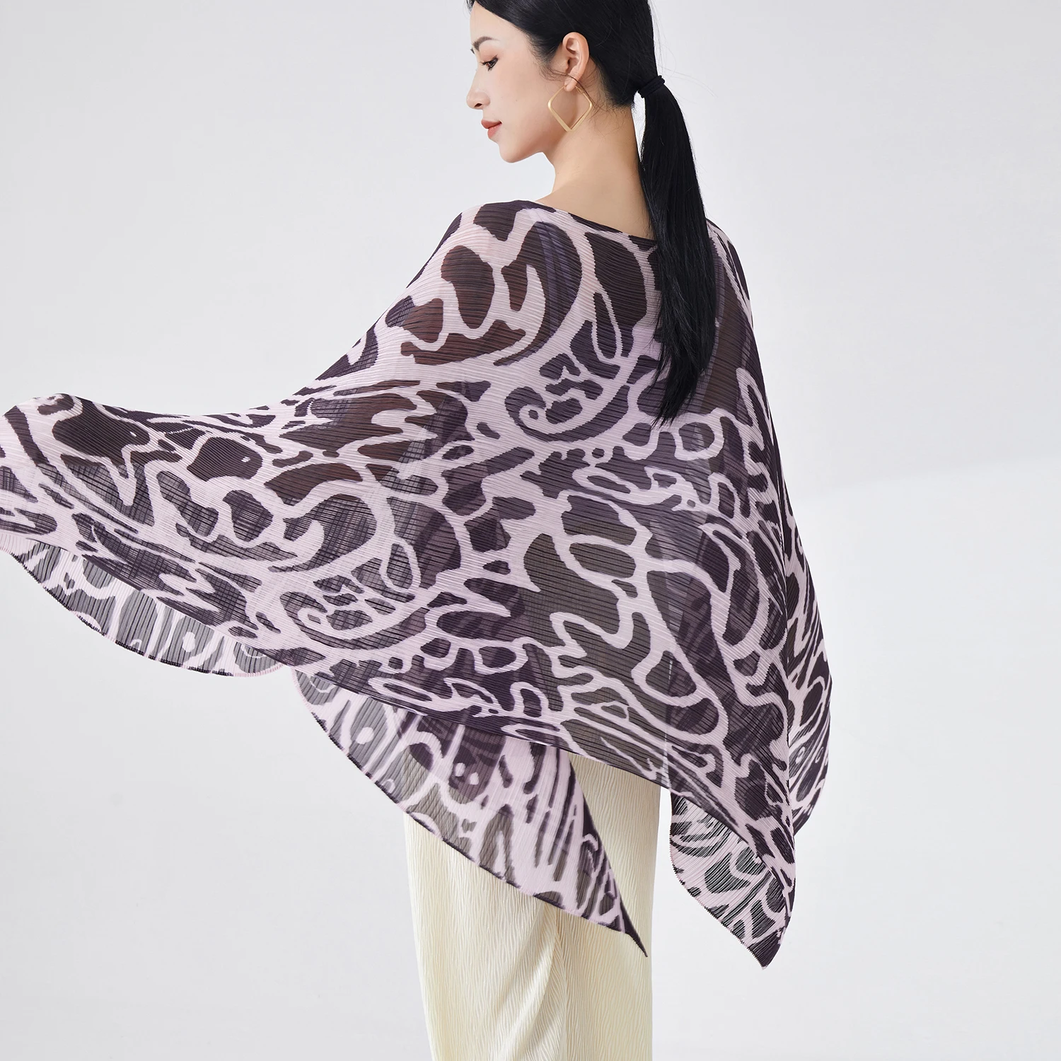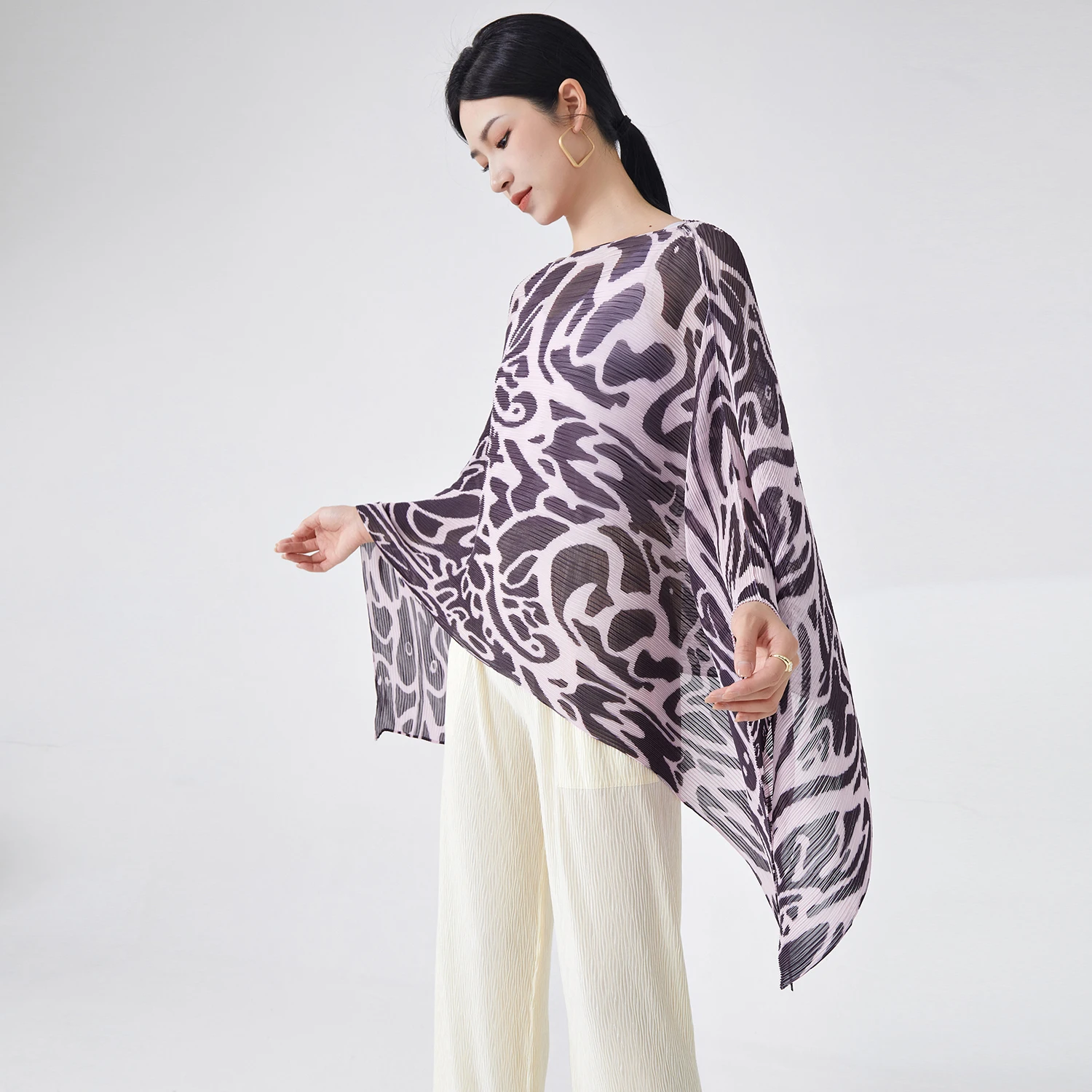 2025 Latest Design Miyake Pleated Blouse Ladies Casual Polyester Joker Shirt Lace Button Closure Long Breathable Office Work