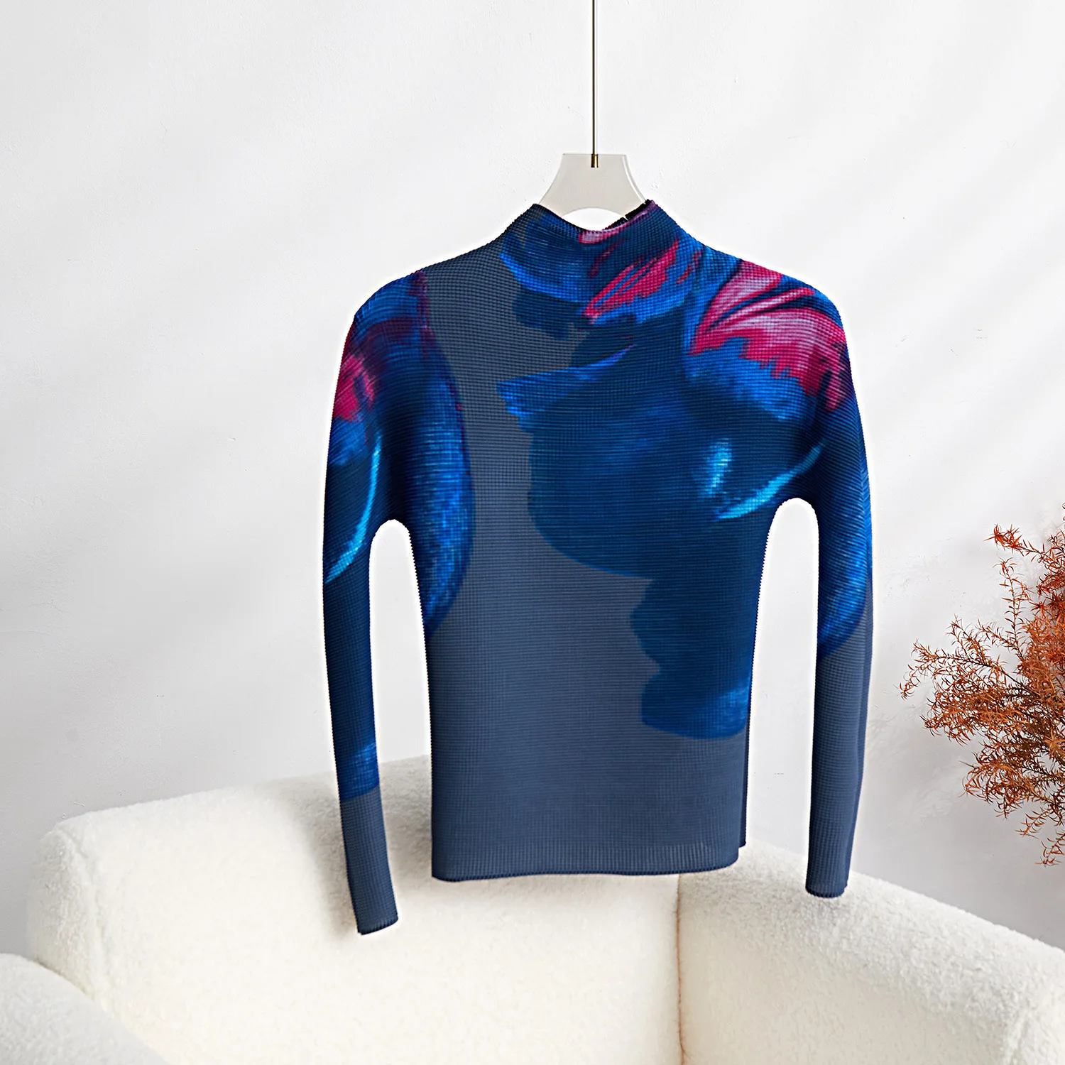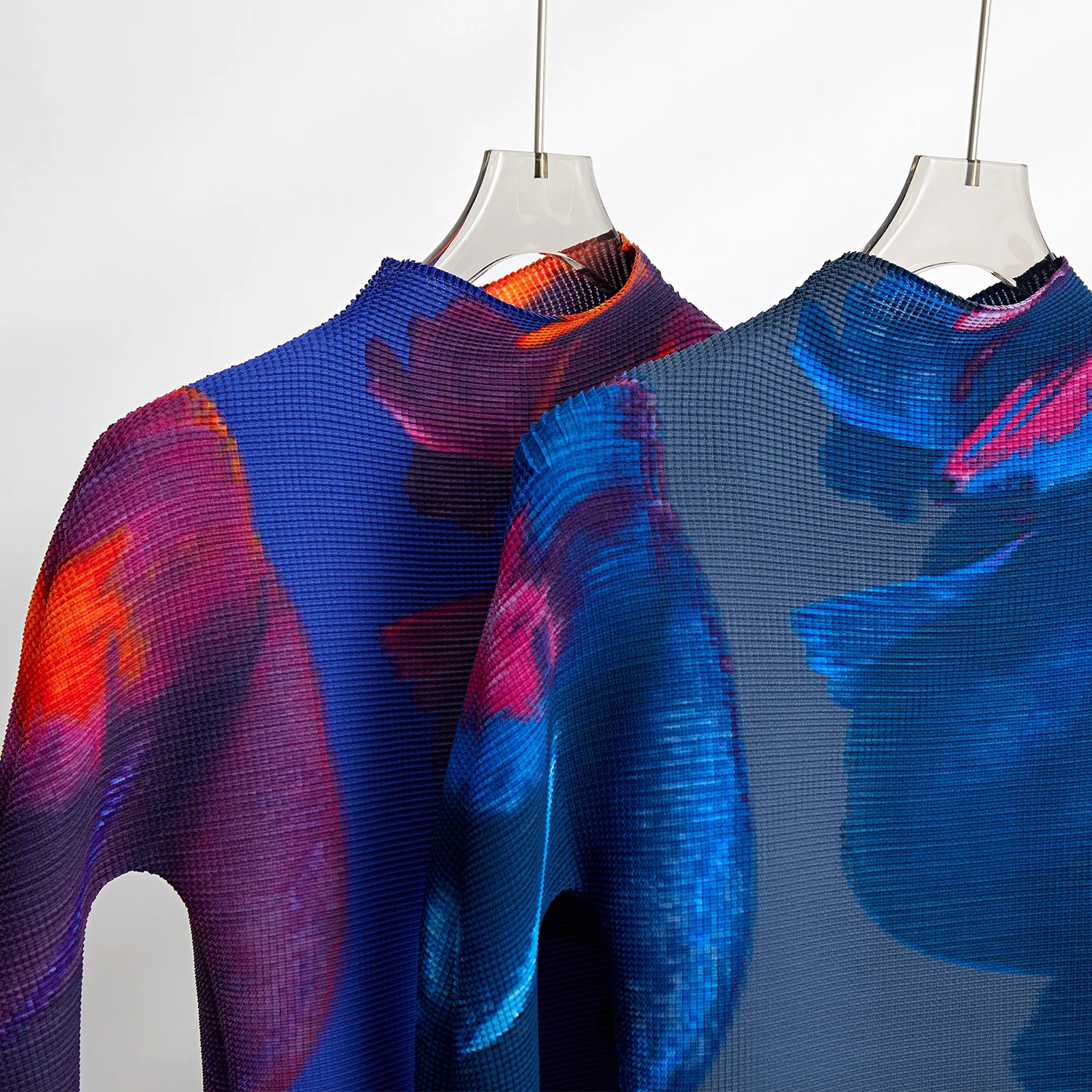 High Quality Wholesale Factory Miyake Pleated Top Women Casual Style Shirt Stretch Pleats Long-Sleeved T-Shirt