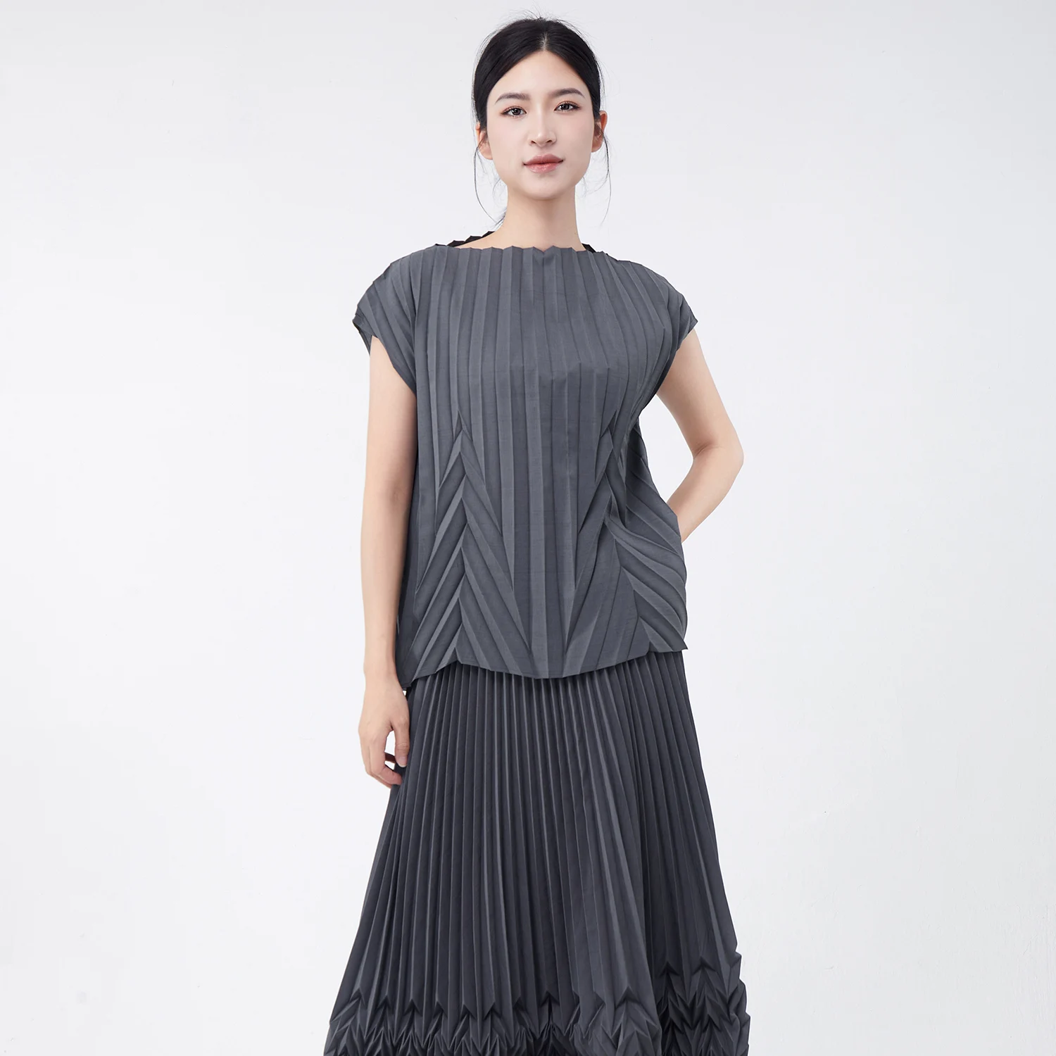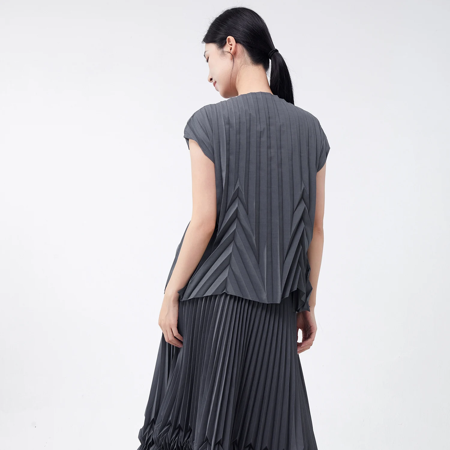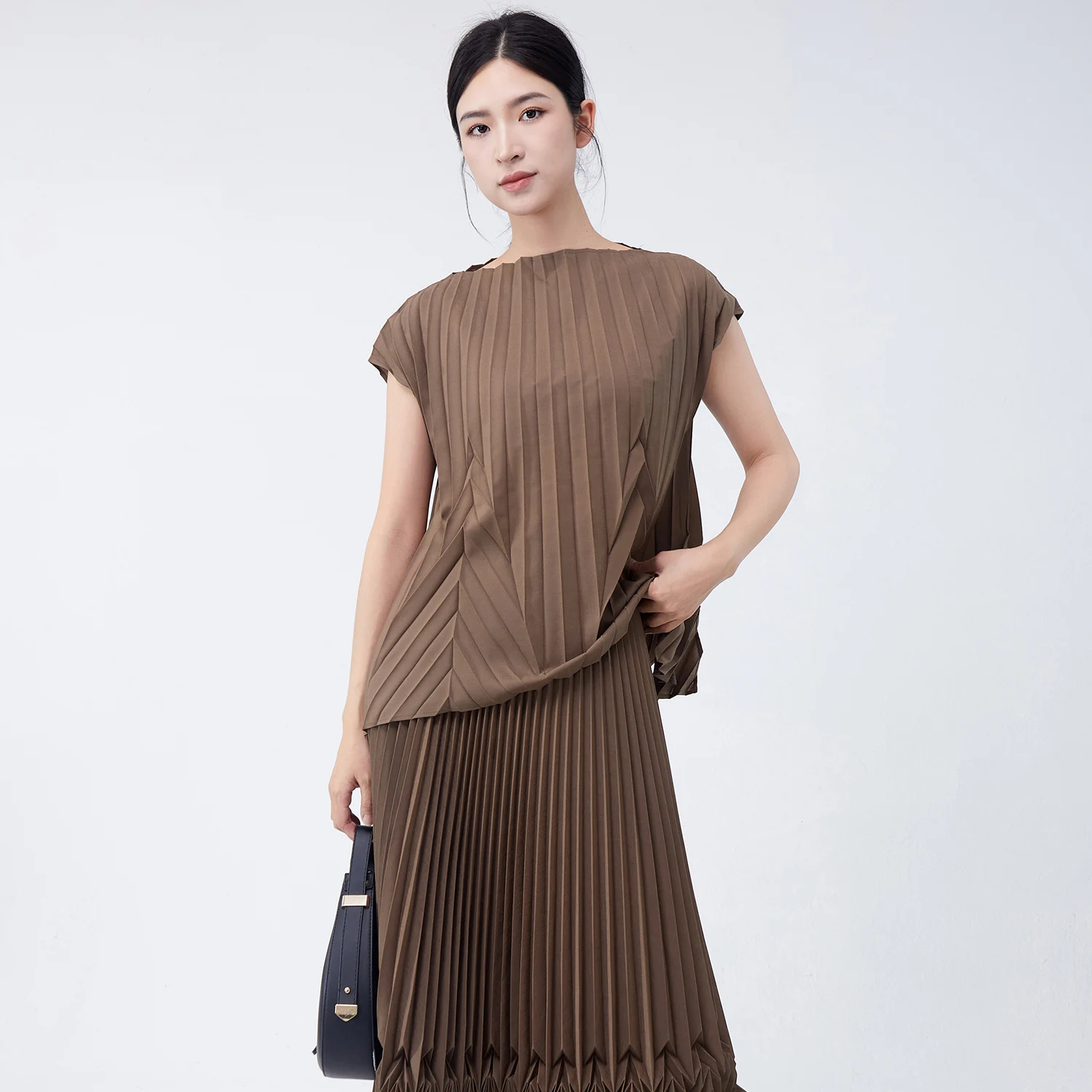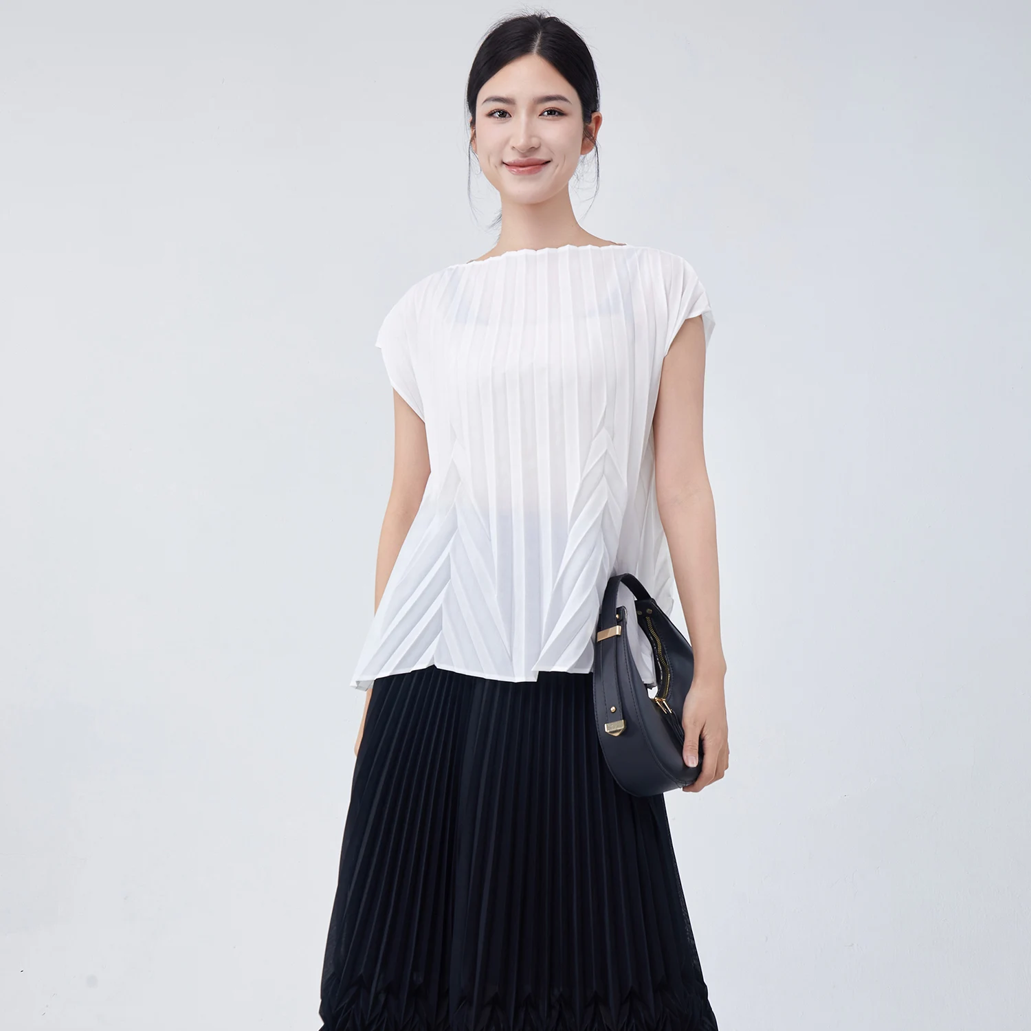 Fashion Women's Clothing 2025 New Tops Summer Style Temperament Loose Shirt Miyake Short-Sleeved T-Shirt
