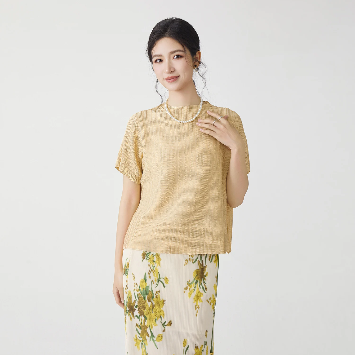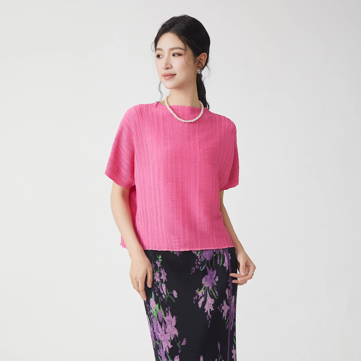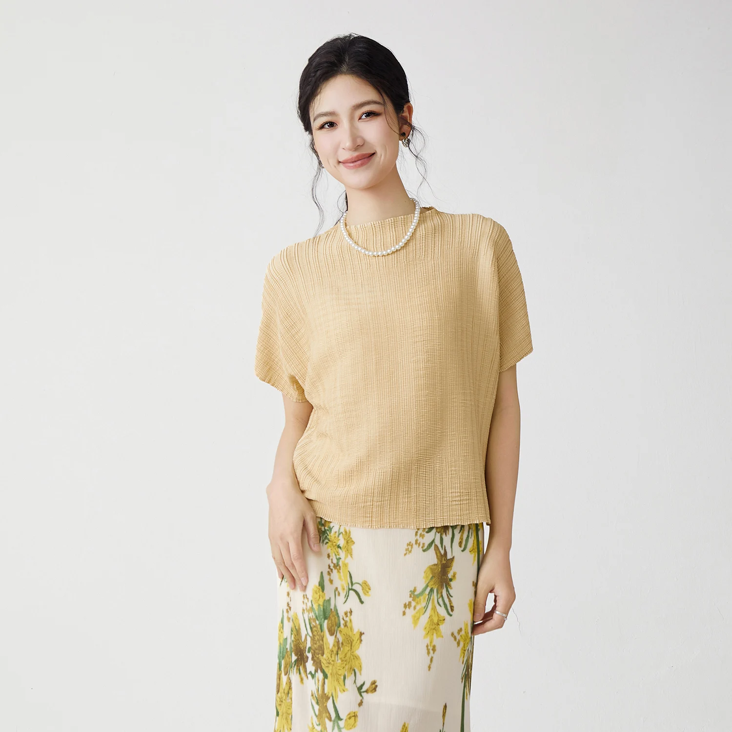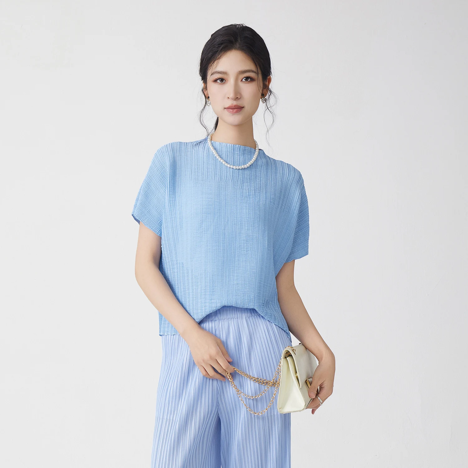 Wholesale Fashion Direct Women's Pleated Tops Summer Polyester Fabric Stretch Casual T-shirt Free Size