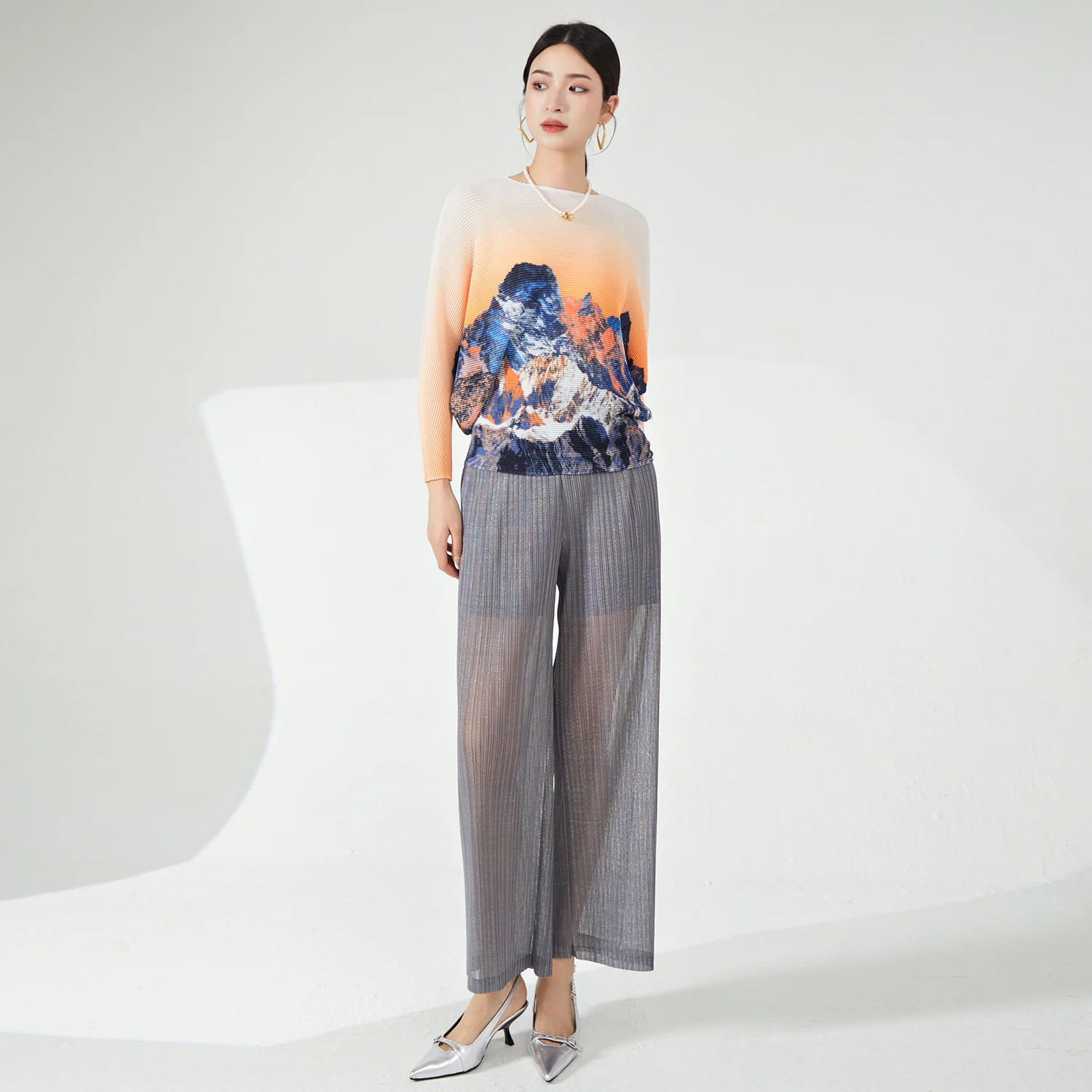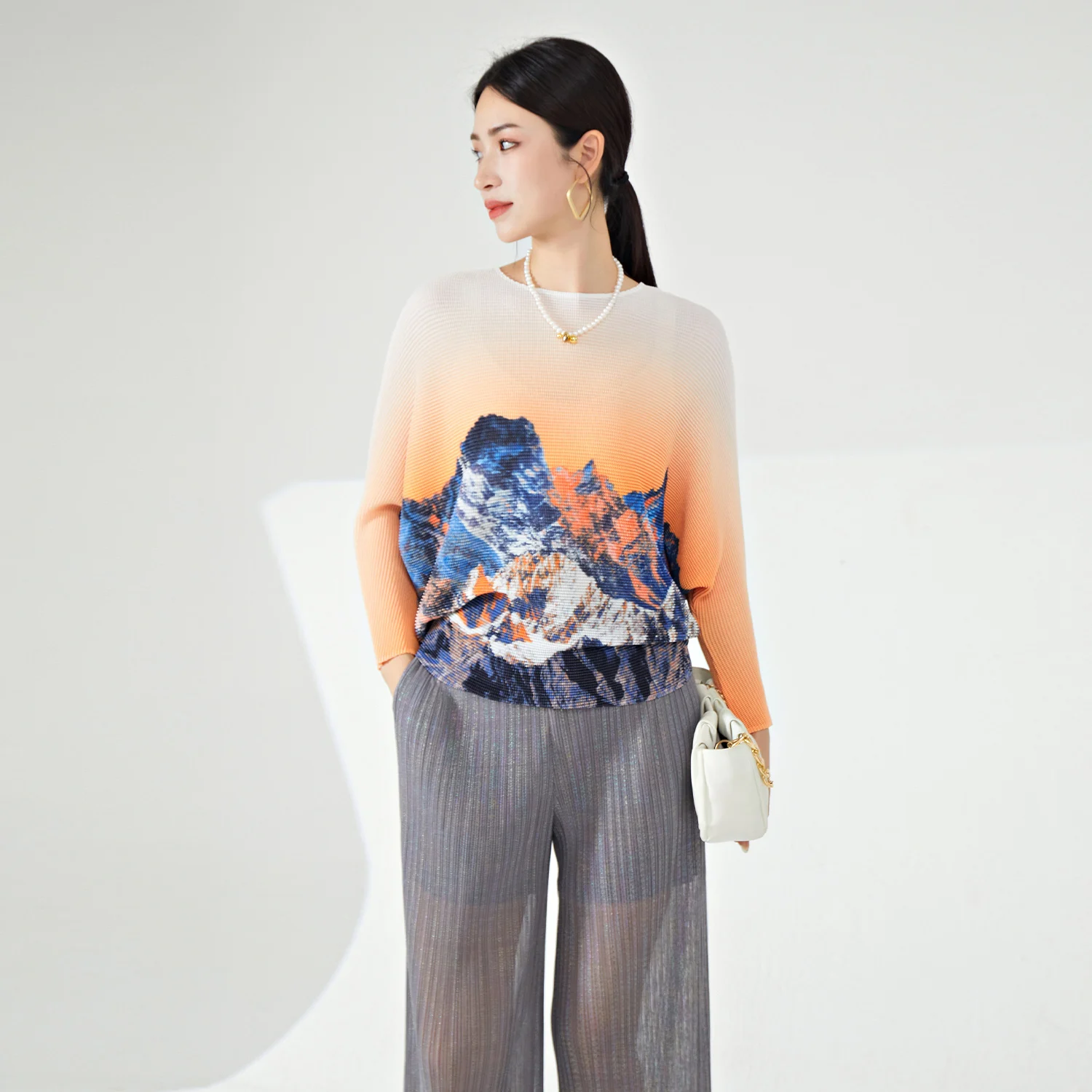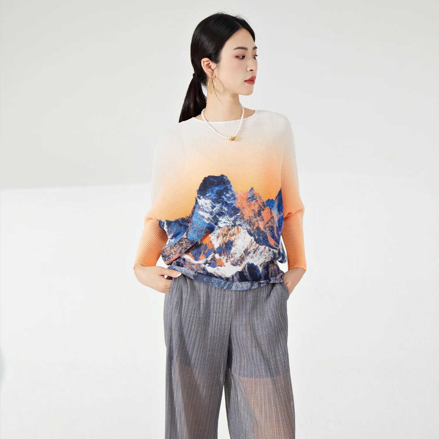 2025 Latest Women's Elegant Top Summer Pleated Shirt With Bat Sleeves High Quality Casual Style Loose Plus Size Floral Pattern