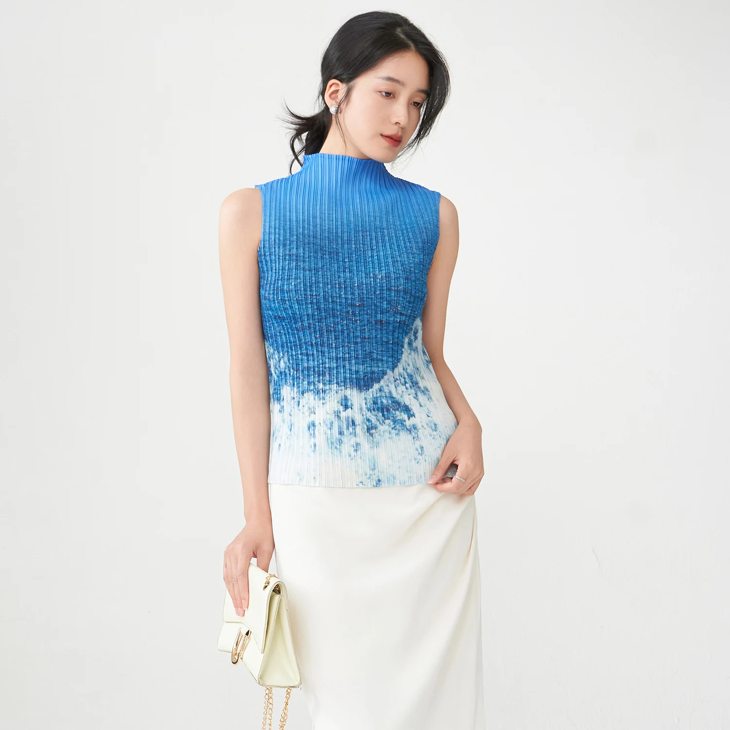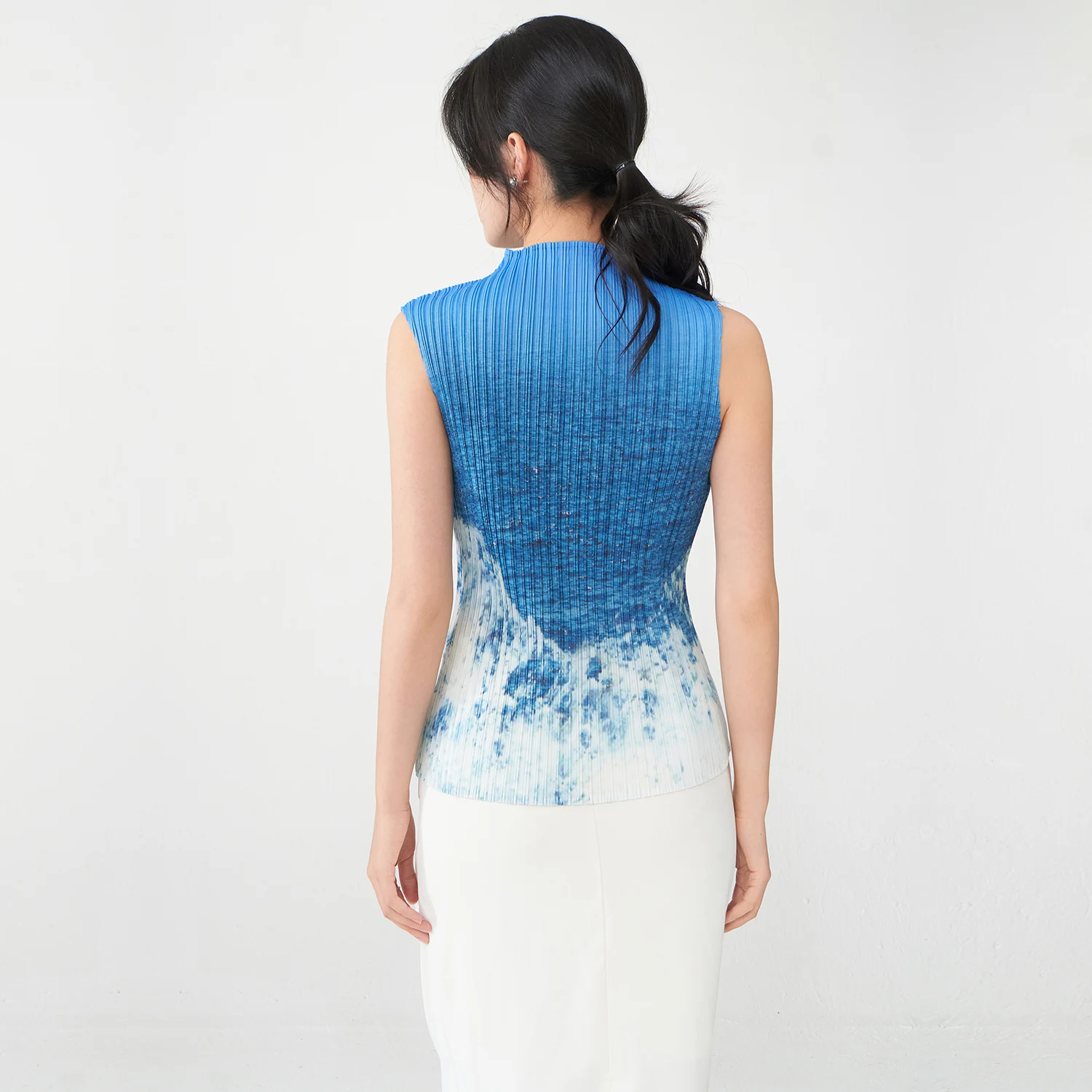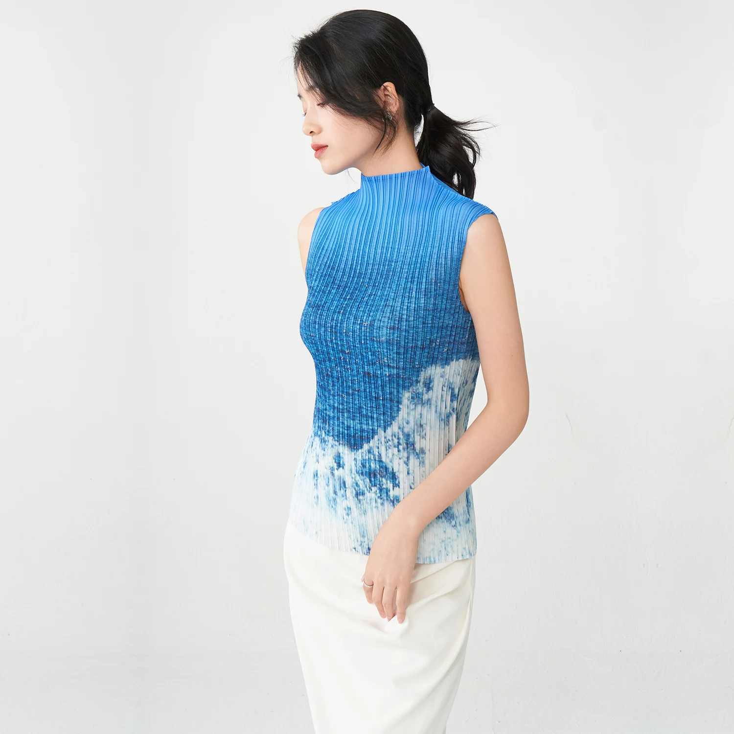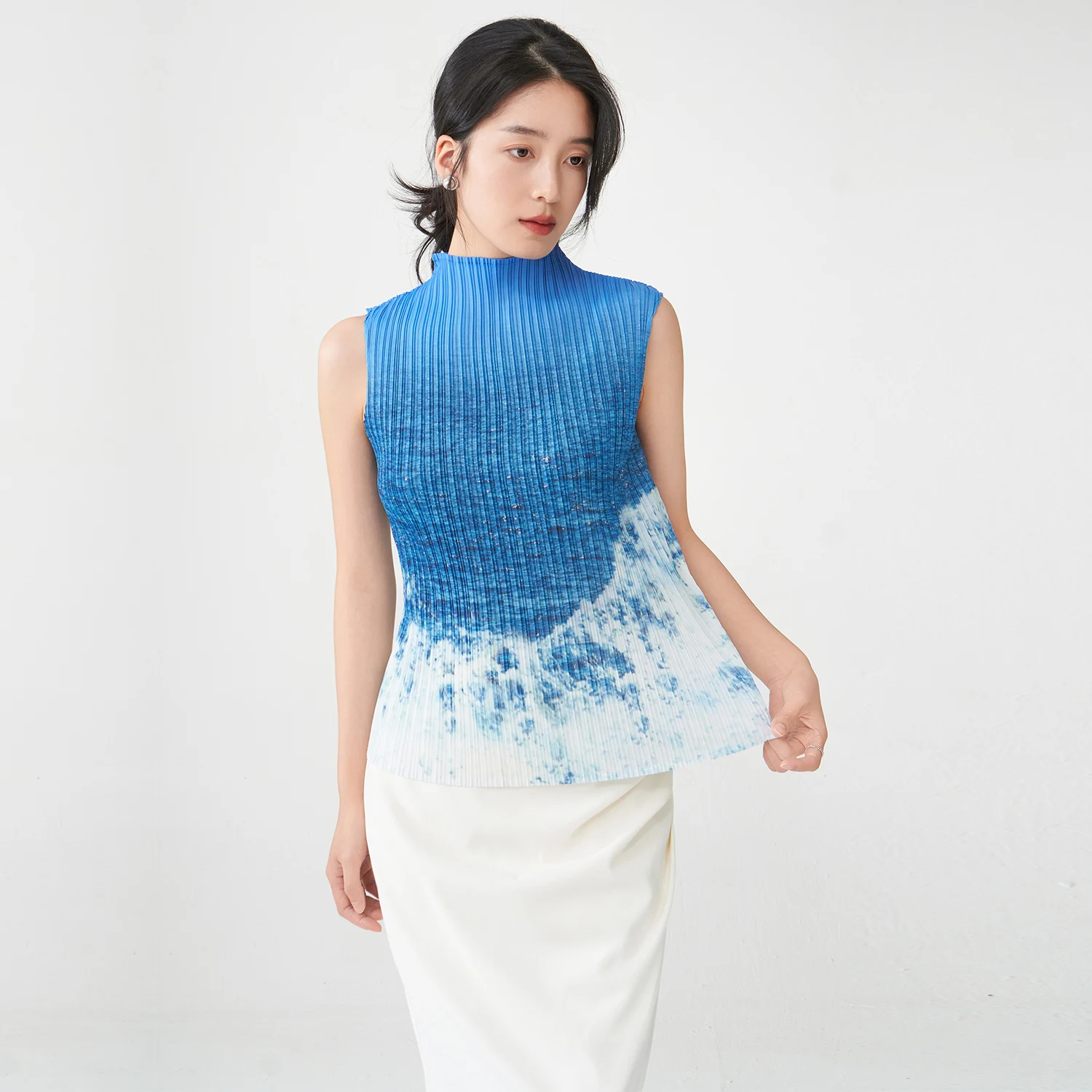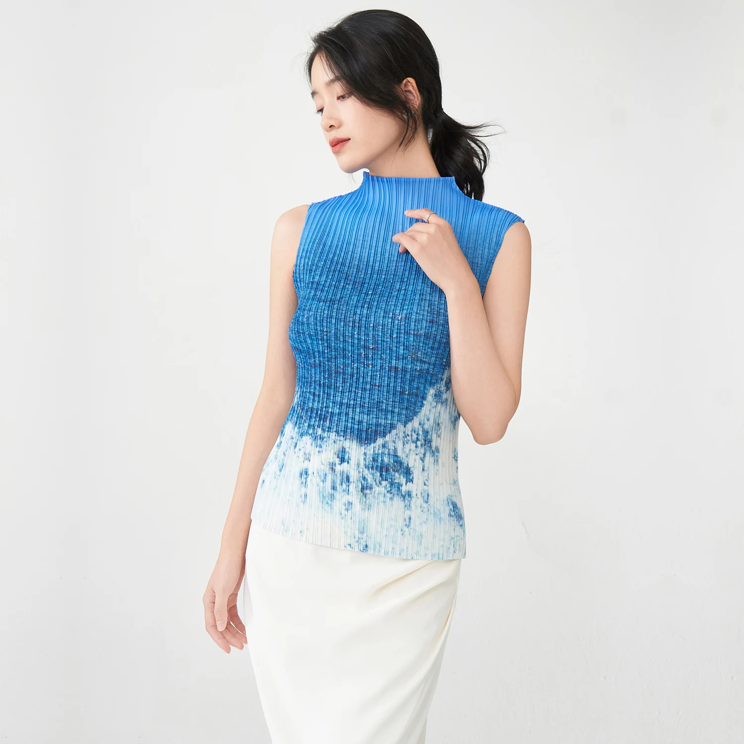 2025 New Design Tops Summer Women's Temperament Gradient Sleeveless Miyake T-Shirt