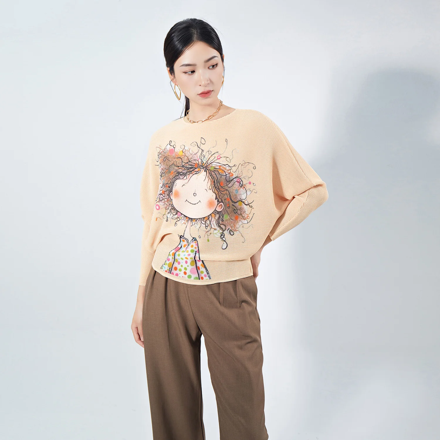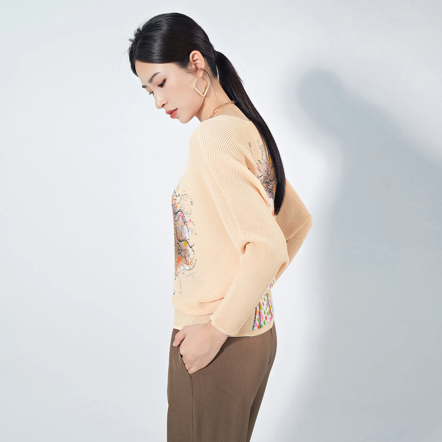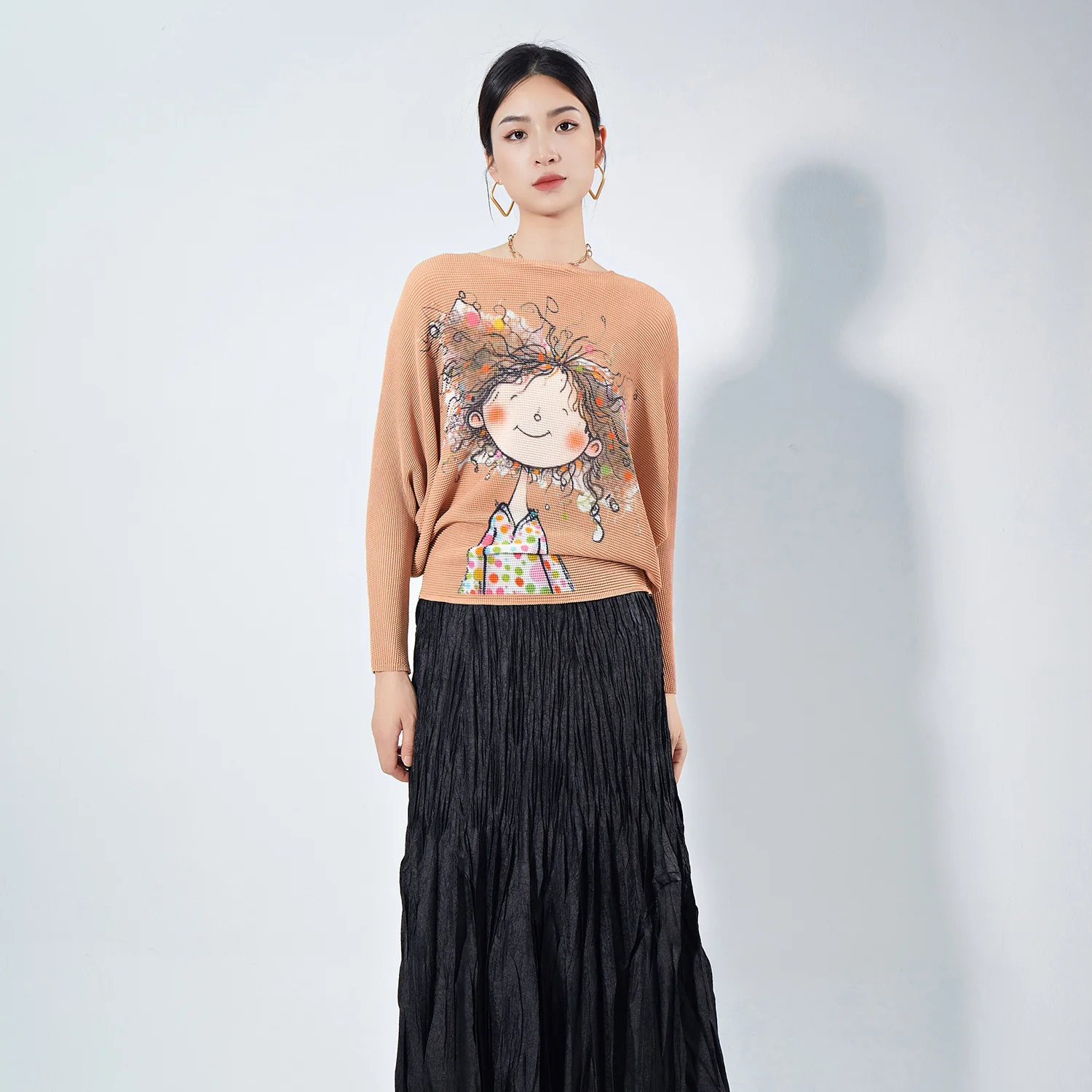 Fast Shipping High Quality Women's Casual Shirt Loose Free Size Elastic Stretch Miyake Pleated Top