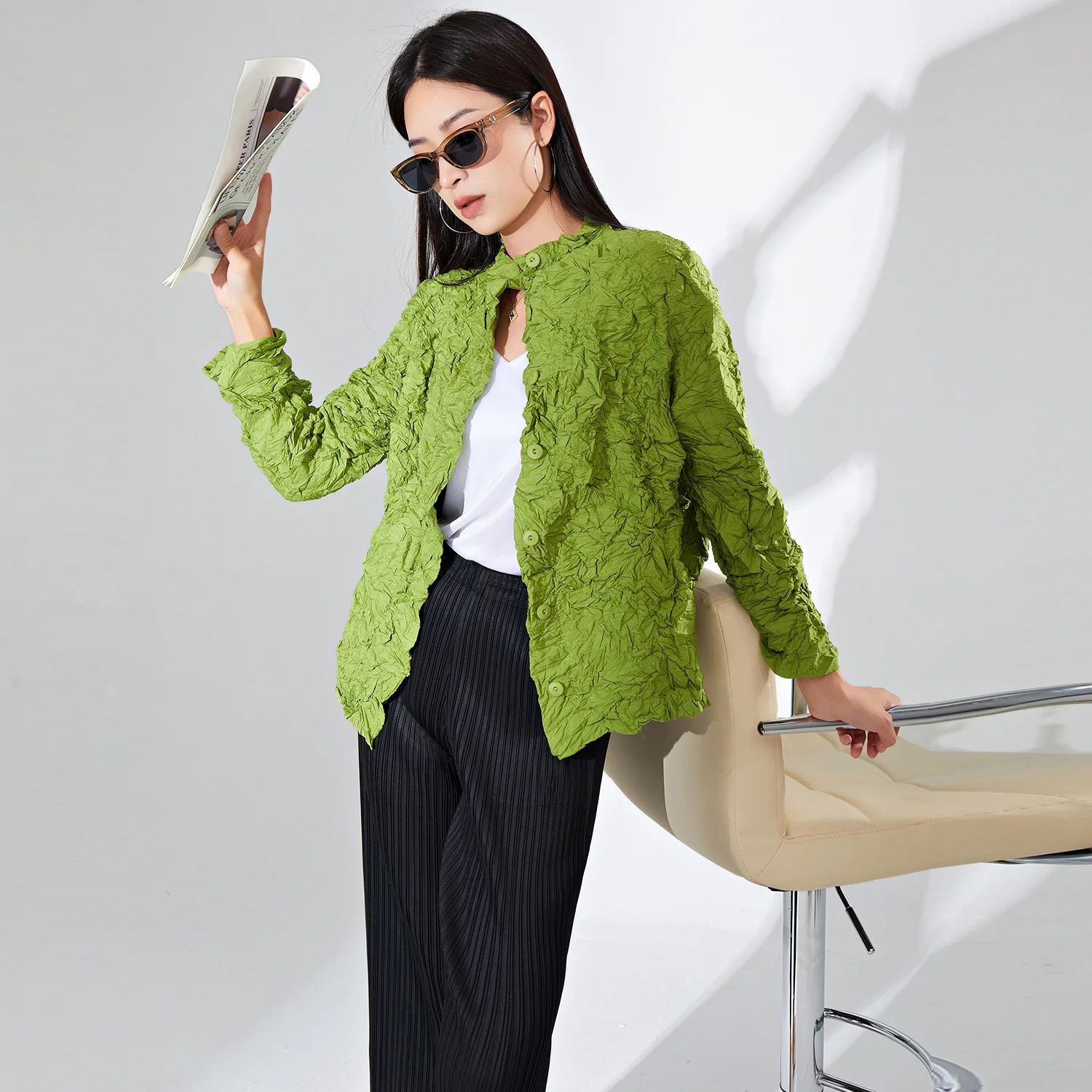 Miyake Pleated Women's Clothing 2025 Autumn New Pleated Tops Personalized Casual Single-Breasted Long-Sleeved Shirts