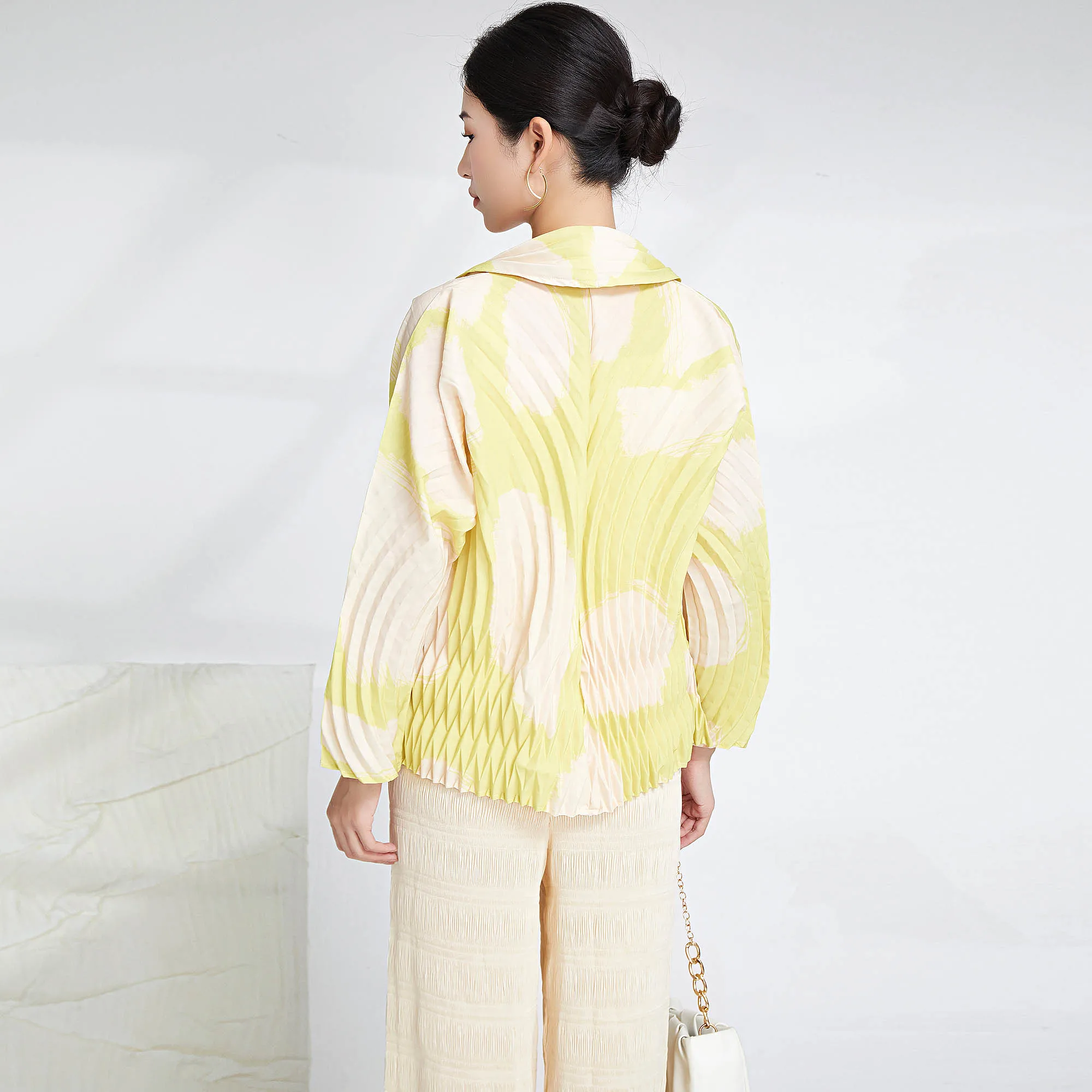 Miyake Latest Design Casual Shirt Women's Blouses & Shirts Fashion Plus Size Top Pleated Shirts