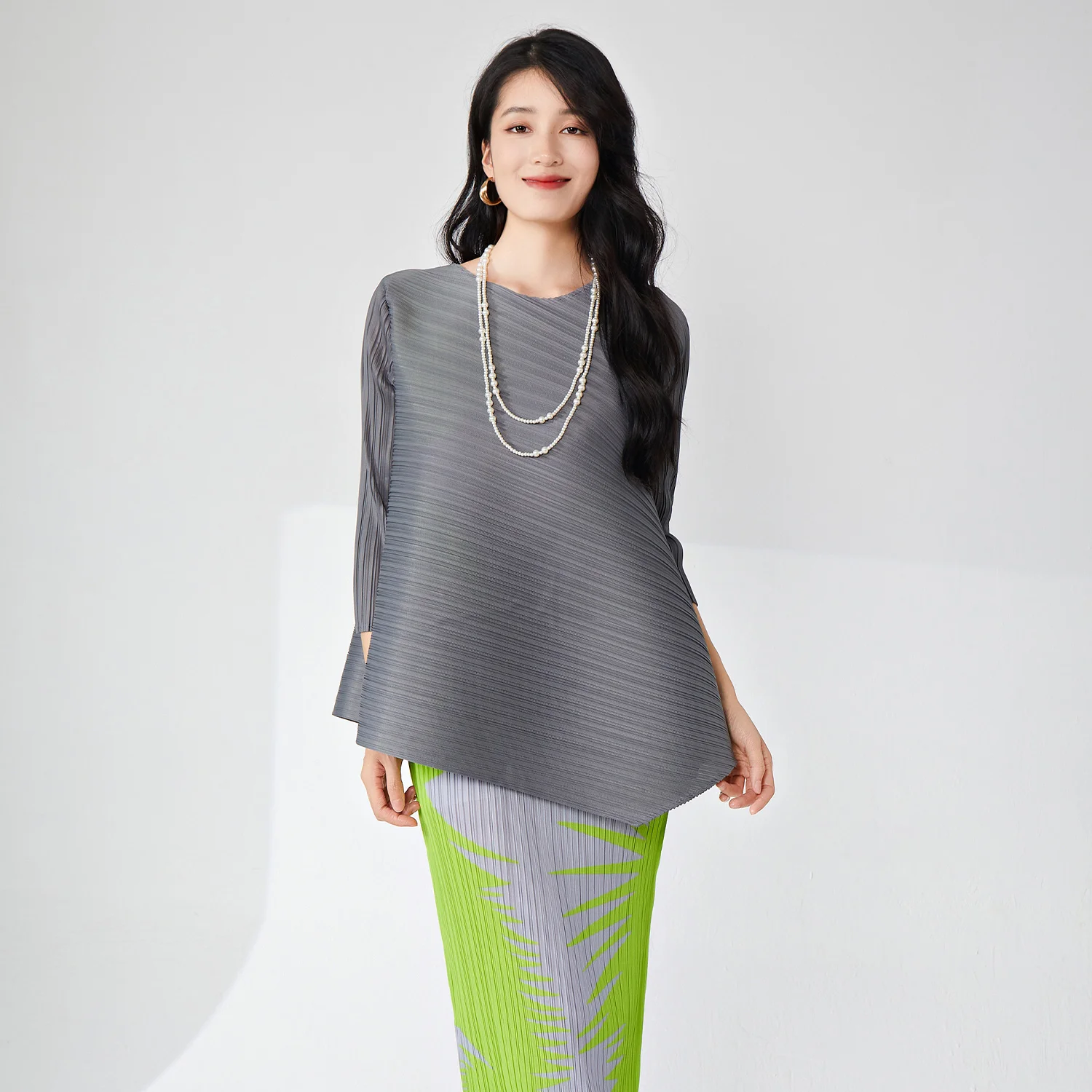 ZYHT 73907 Custom Design Long Sleeve High Neck Fashion Pleated Crystal Beads Ruched Knot High Slit Sexy Luxury Evening Dress