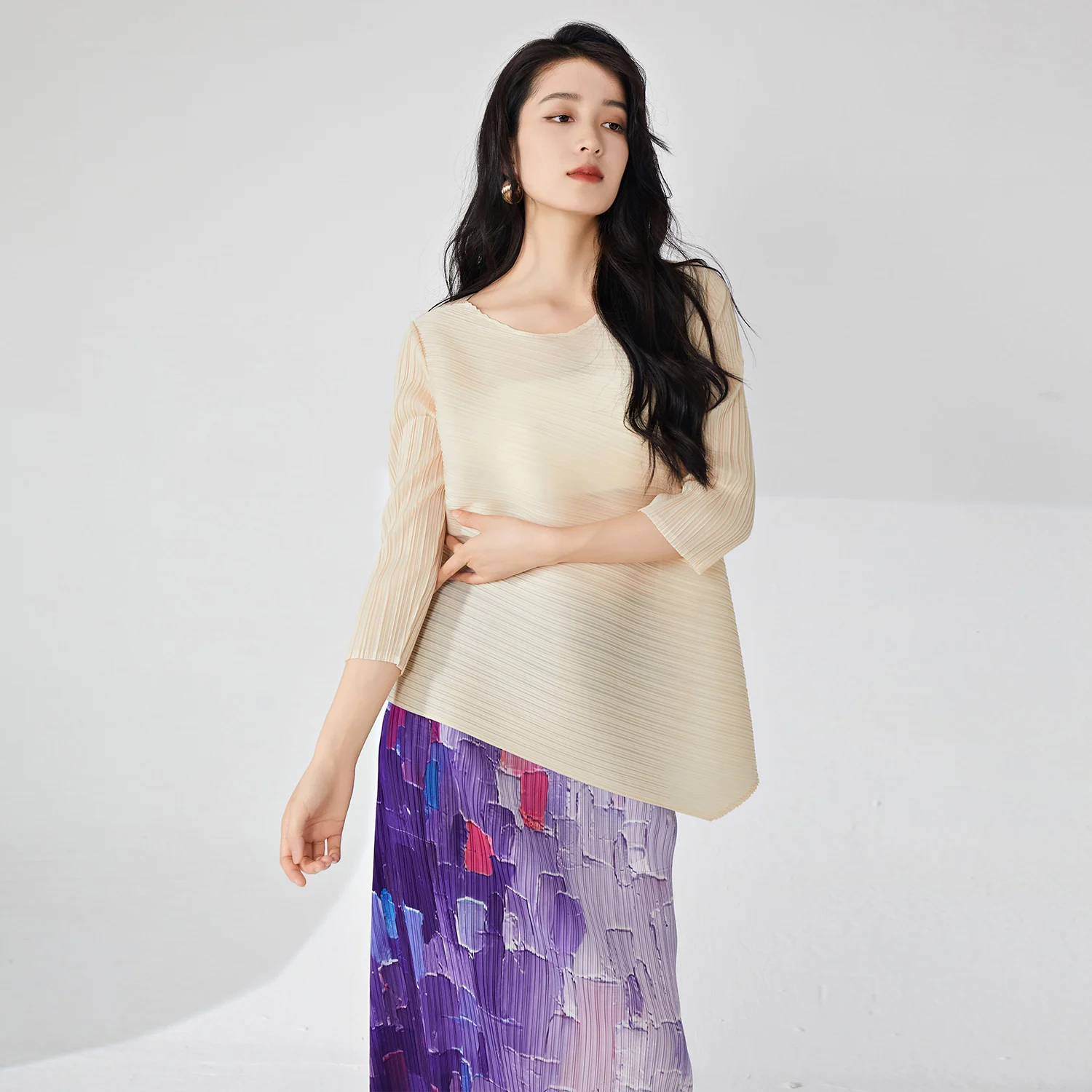 Factory Wholesale Women's Fashion Tops Loose Irregular Round Neck Large Size Classic Solid Color Simple Women's T-Shirt