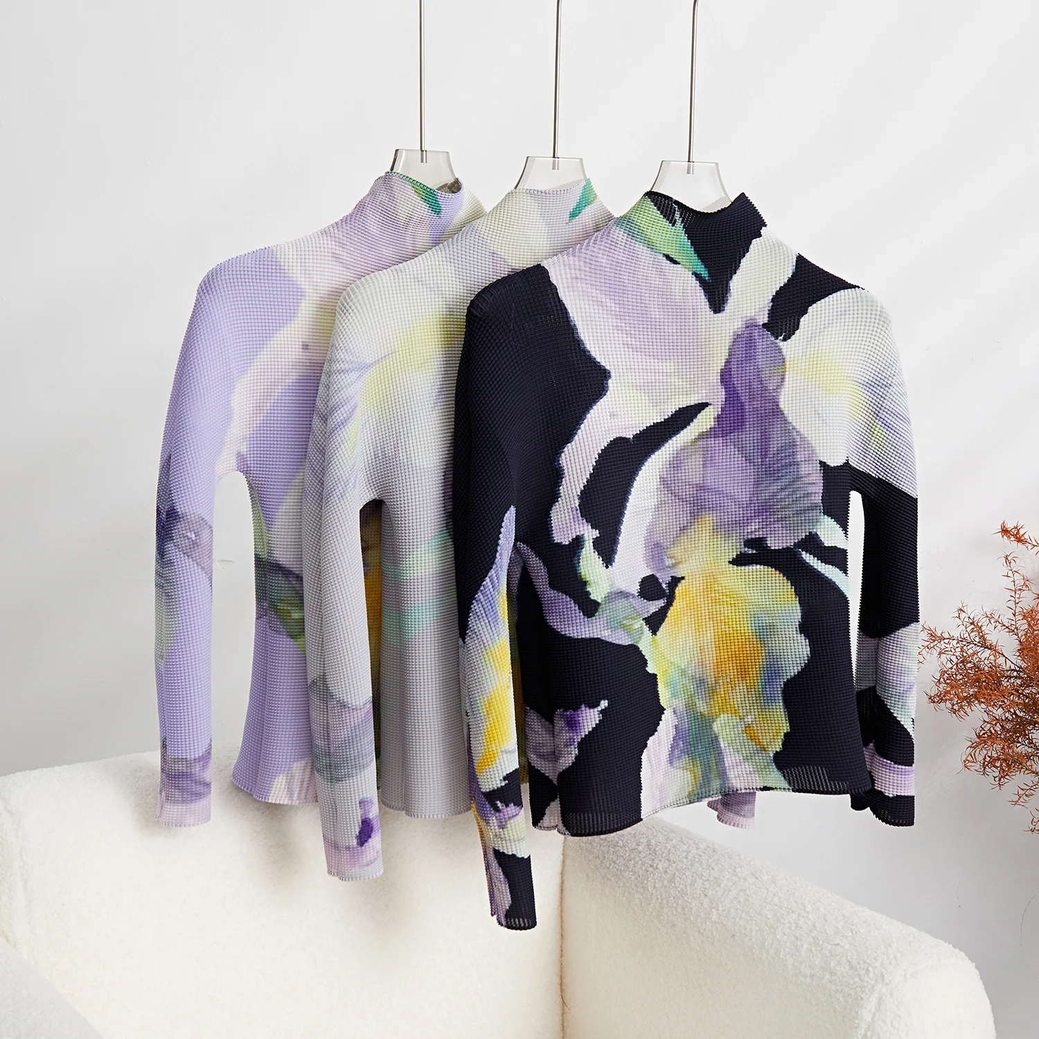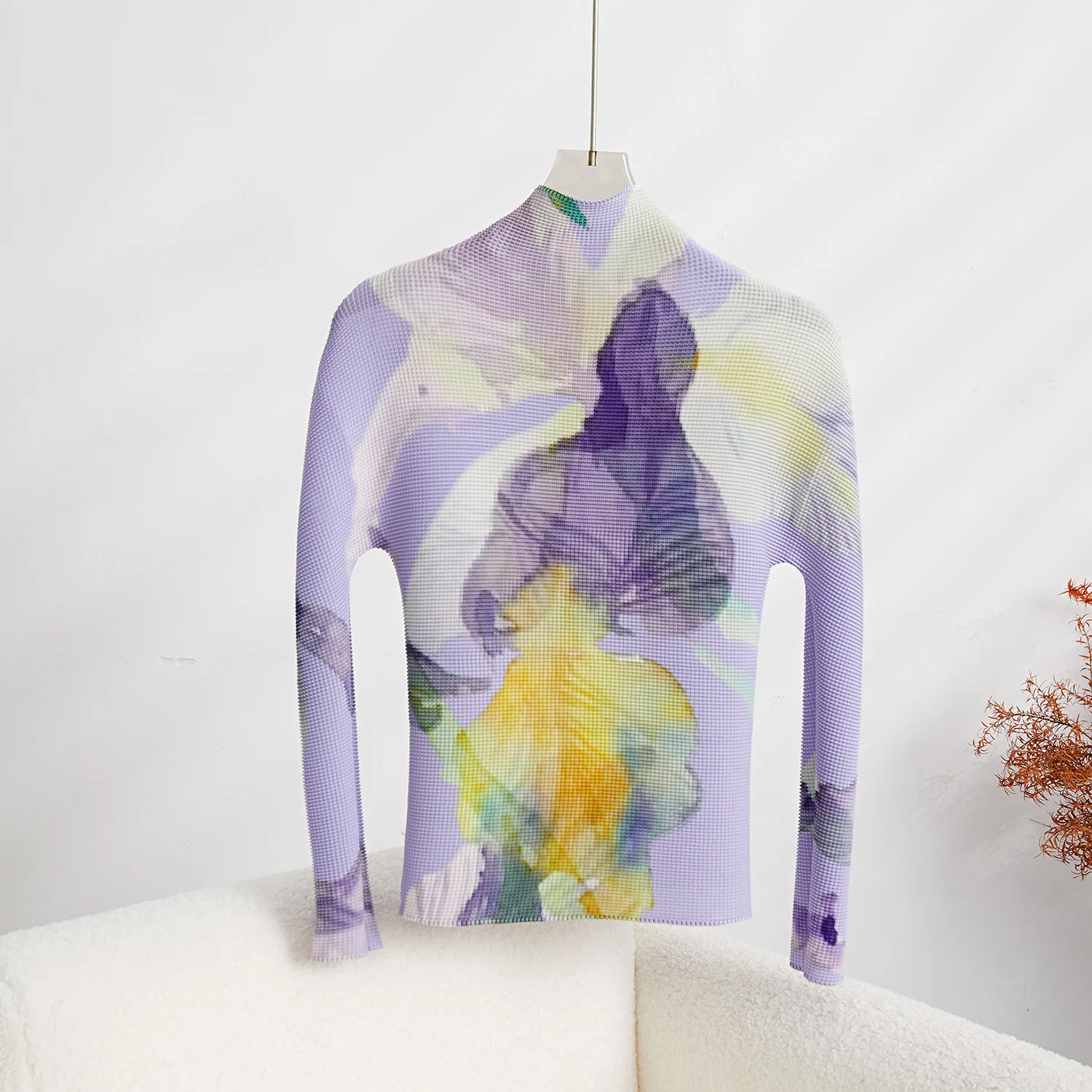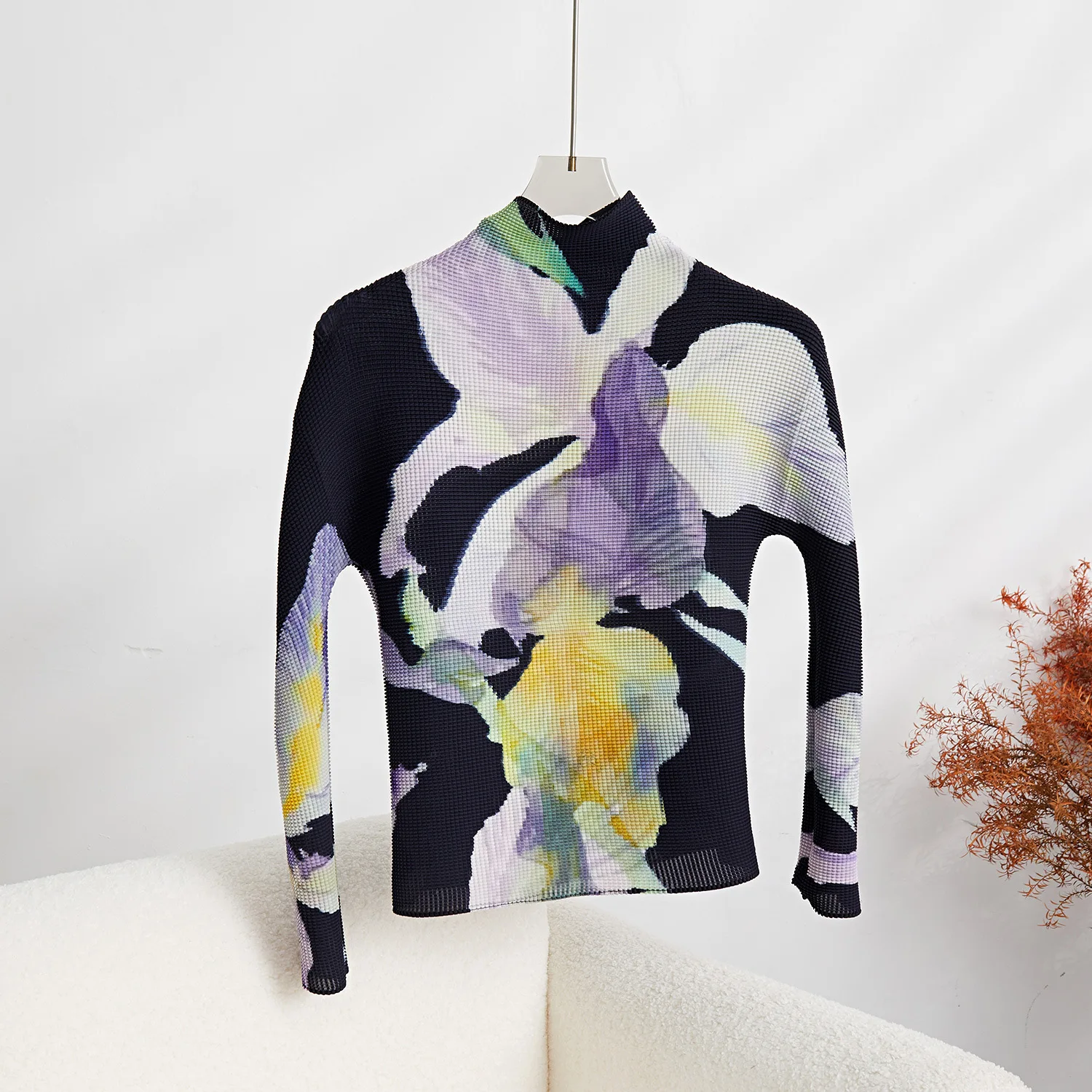 High Quality Wholesale Factory Miyake Pleated Flower Top Women Casual Style Shirt Pleats Long-Sleeved T-Shirt