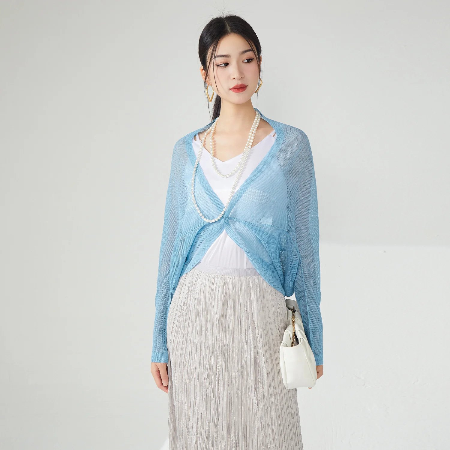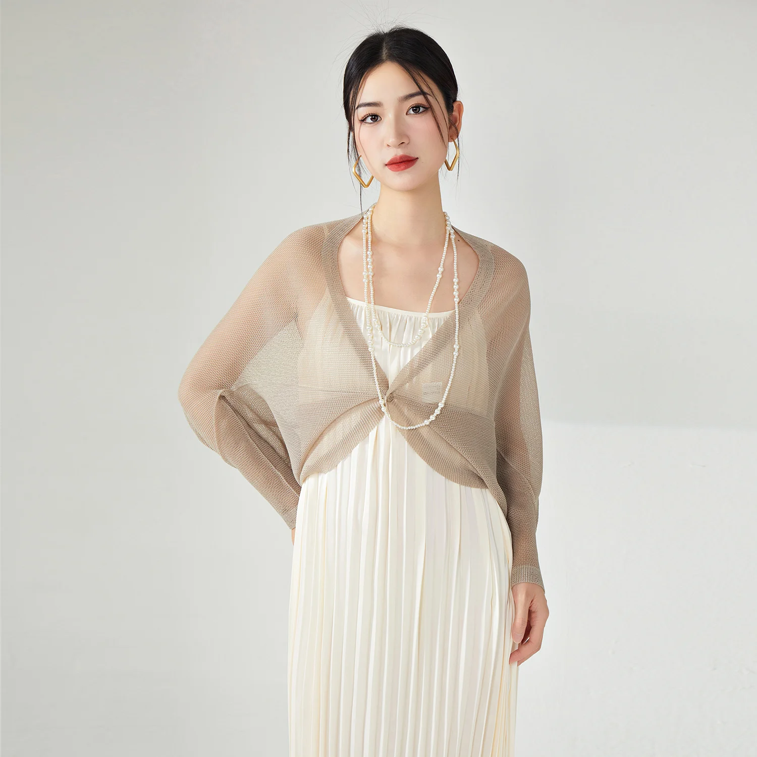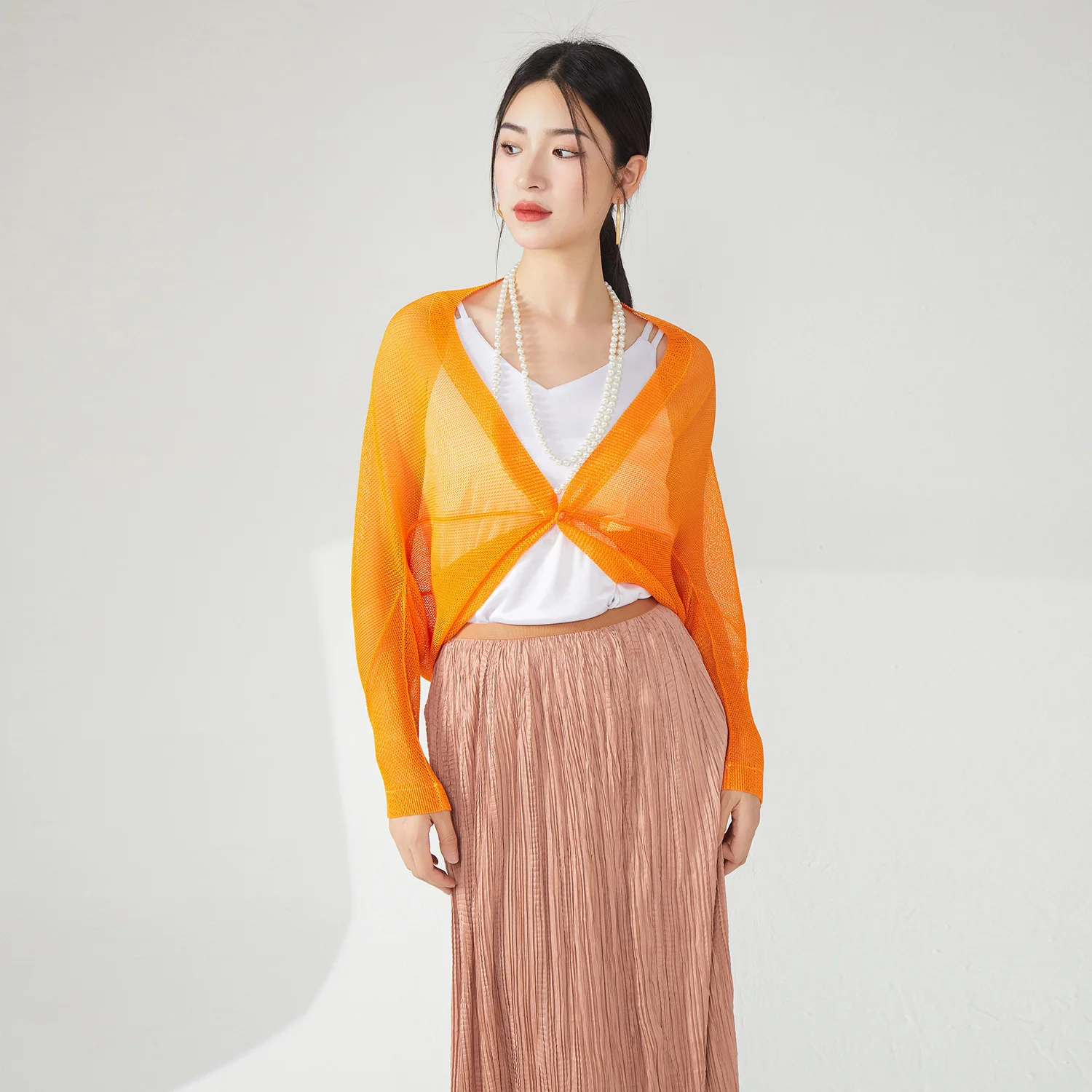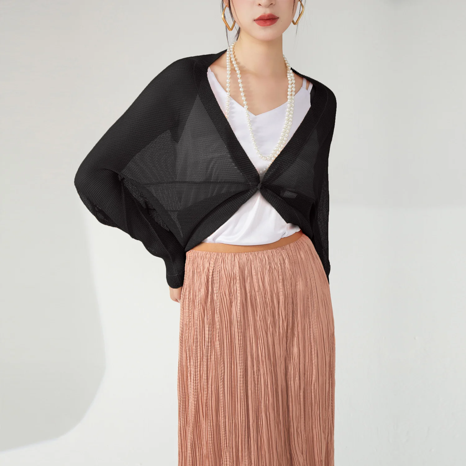 Women Woven Cardigan Casual Loose Stretch Design With Solid Color Pleats for Spring/Summer Fashion Shirt
