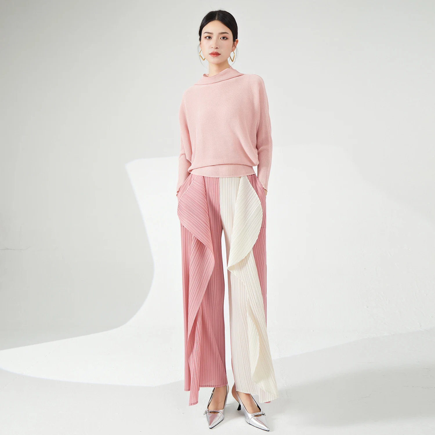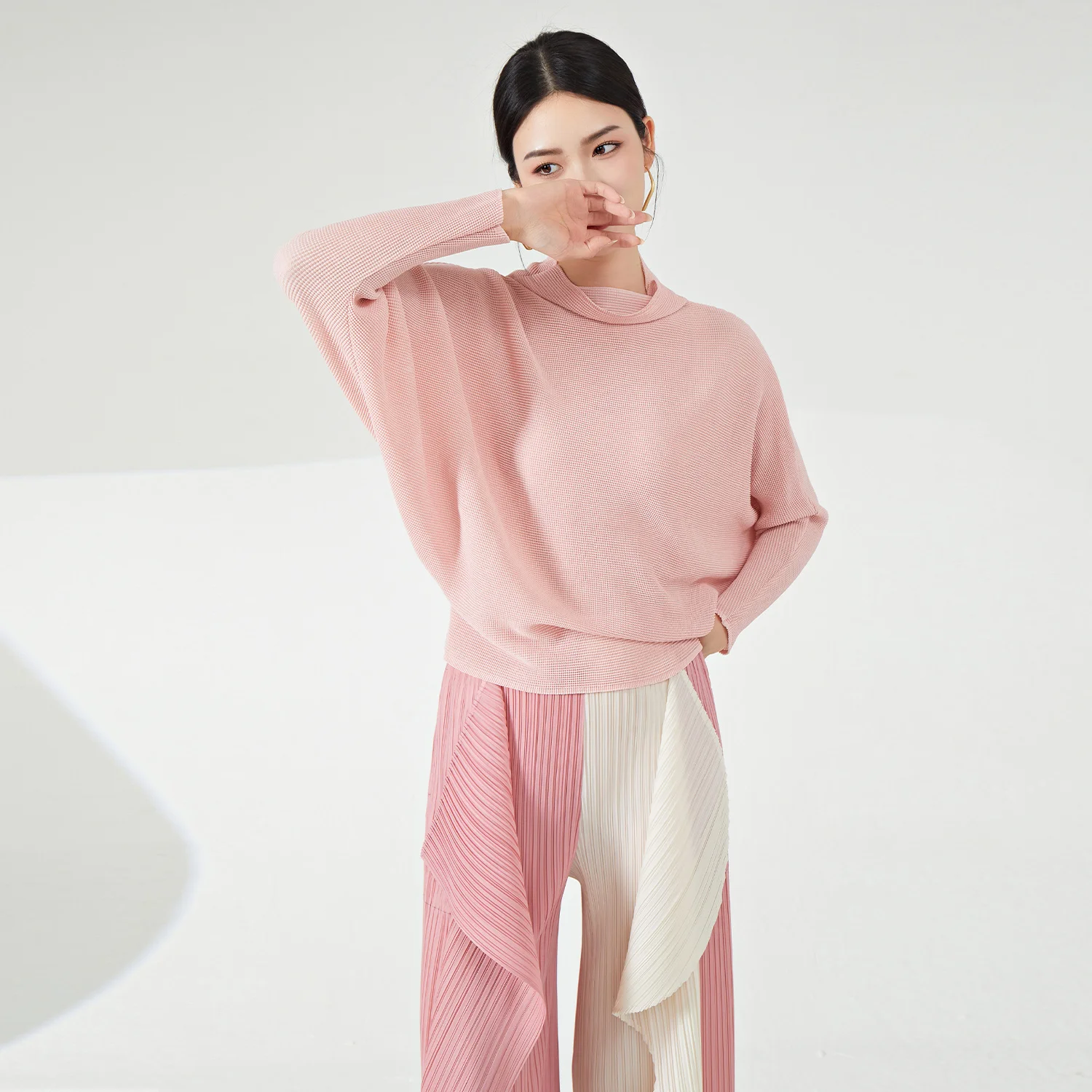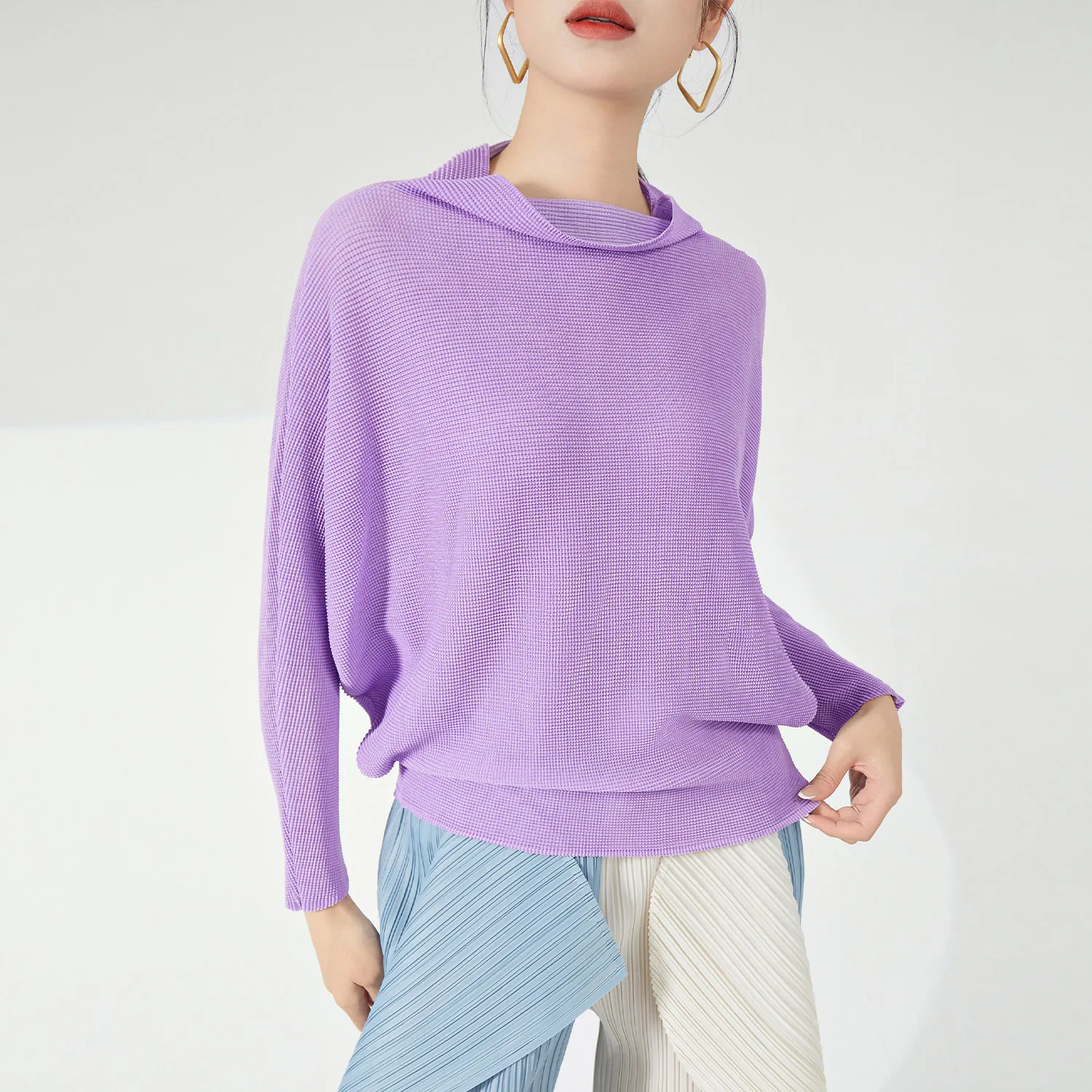 Ladies' High Quality Pleated Shirt Fashionable Wide Collar Stretch Casual Summer Top in Plus Sizes