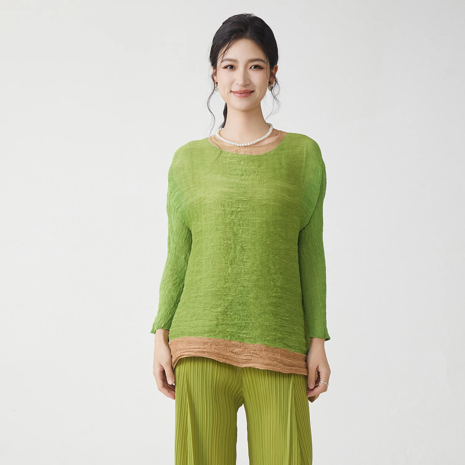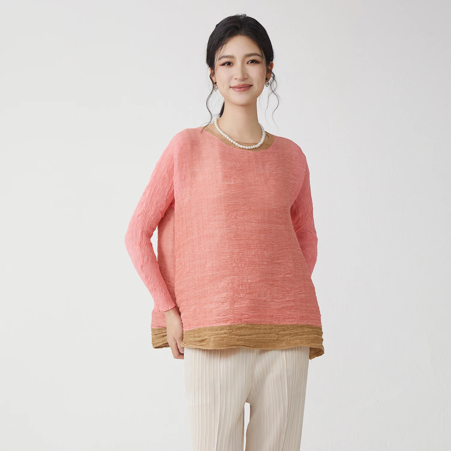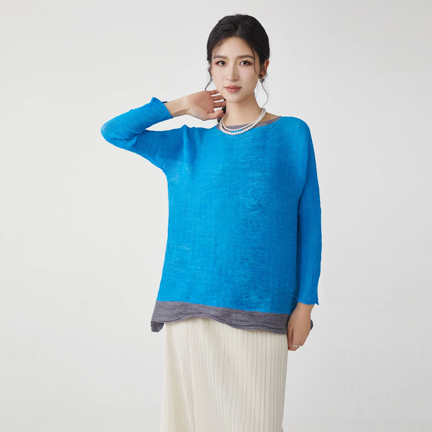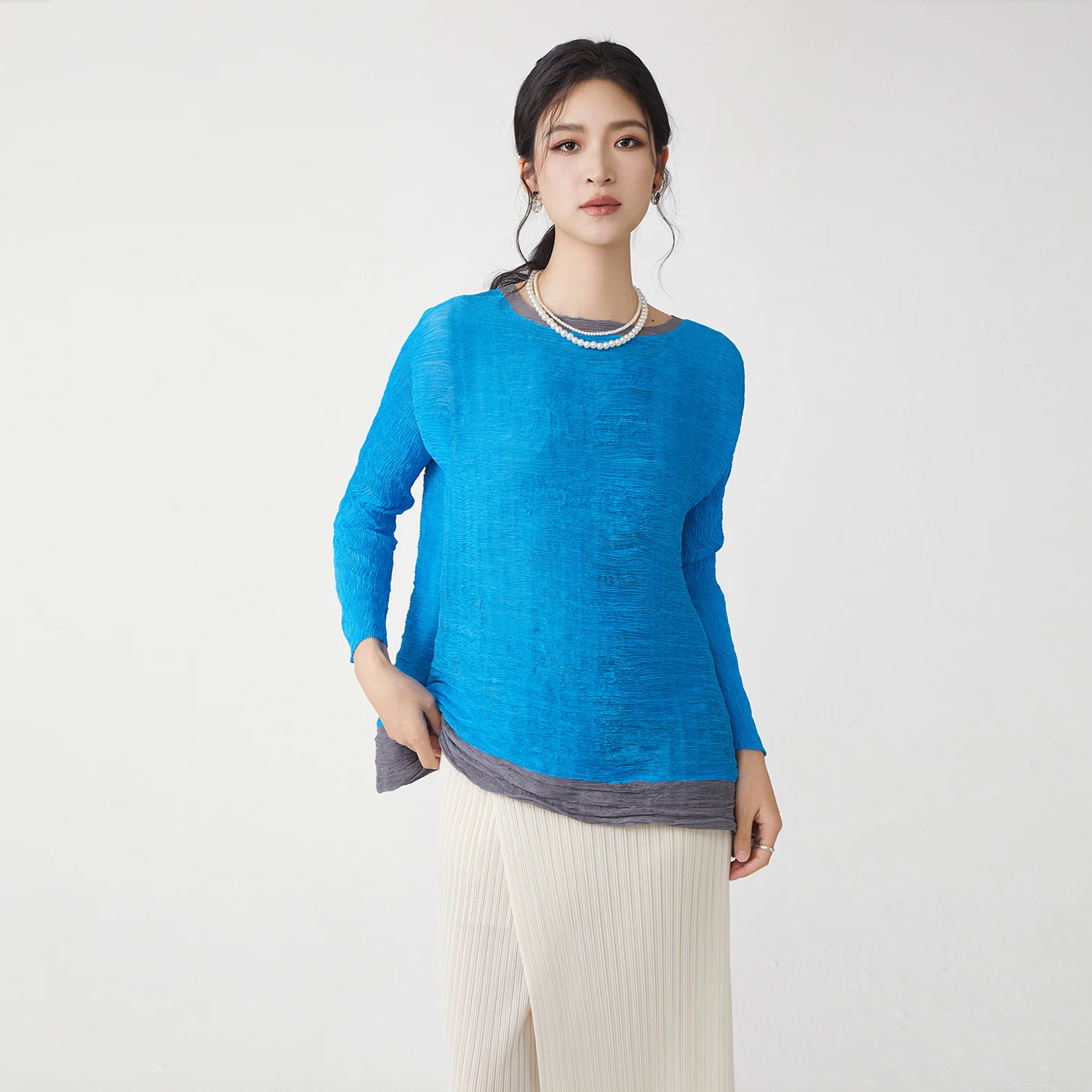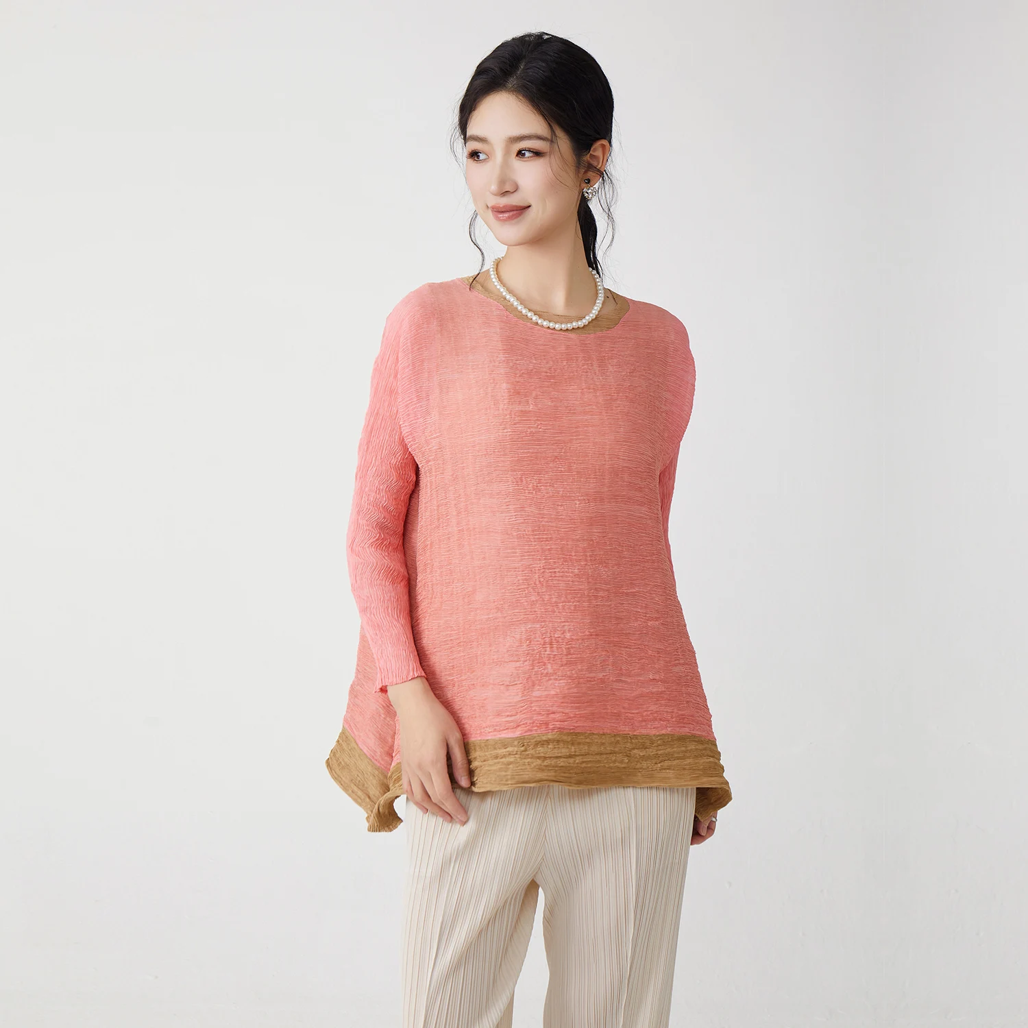Factory Direct Fashion Women's Pleated Tops Stretch Casual T-shirt Elegant Irregular Tops