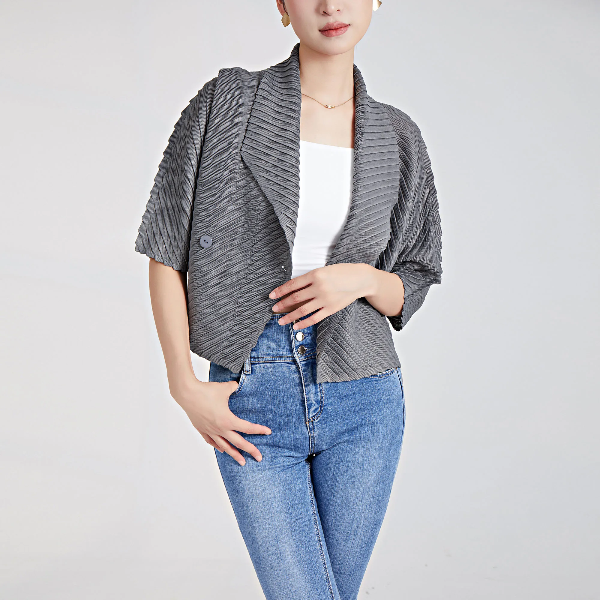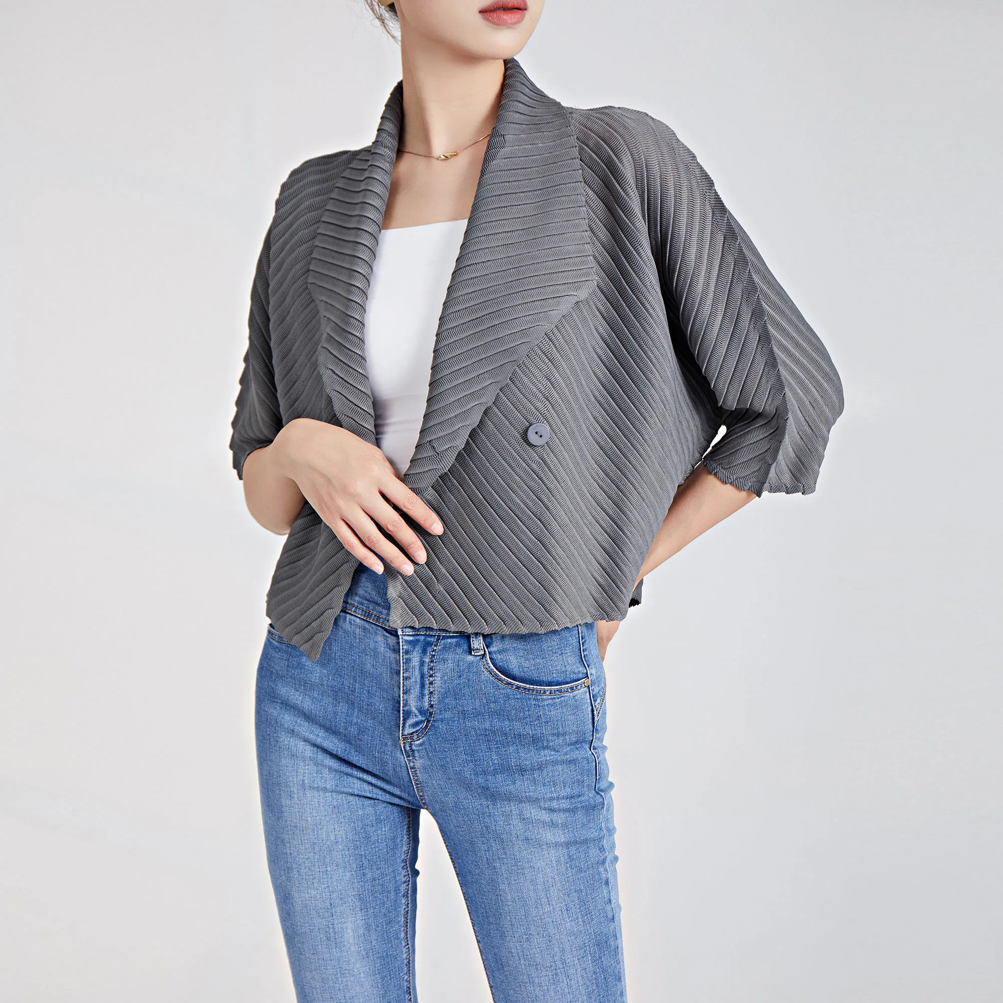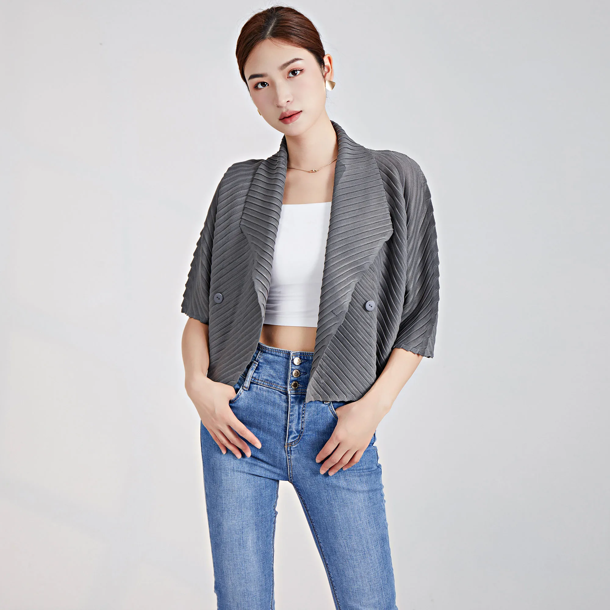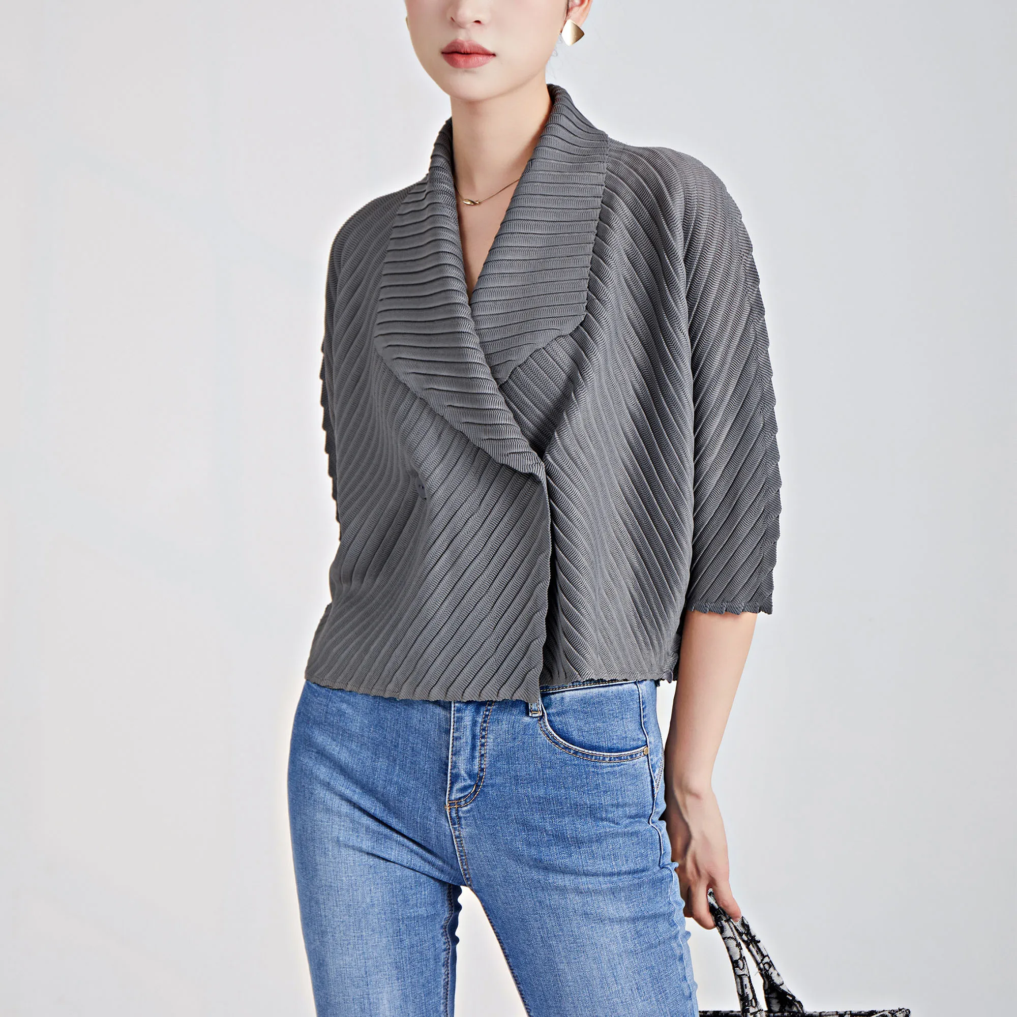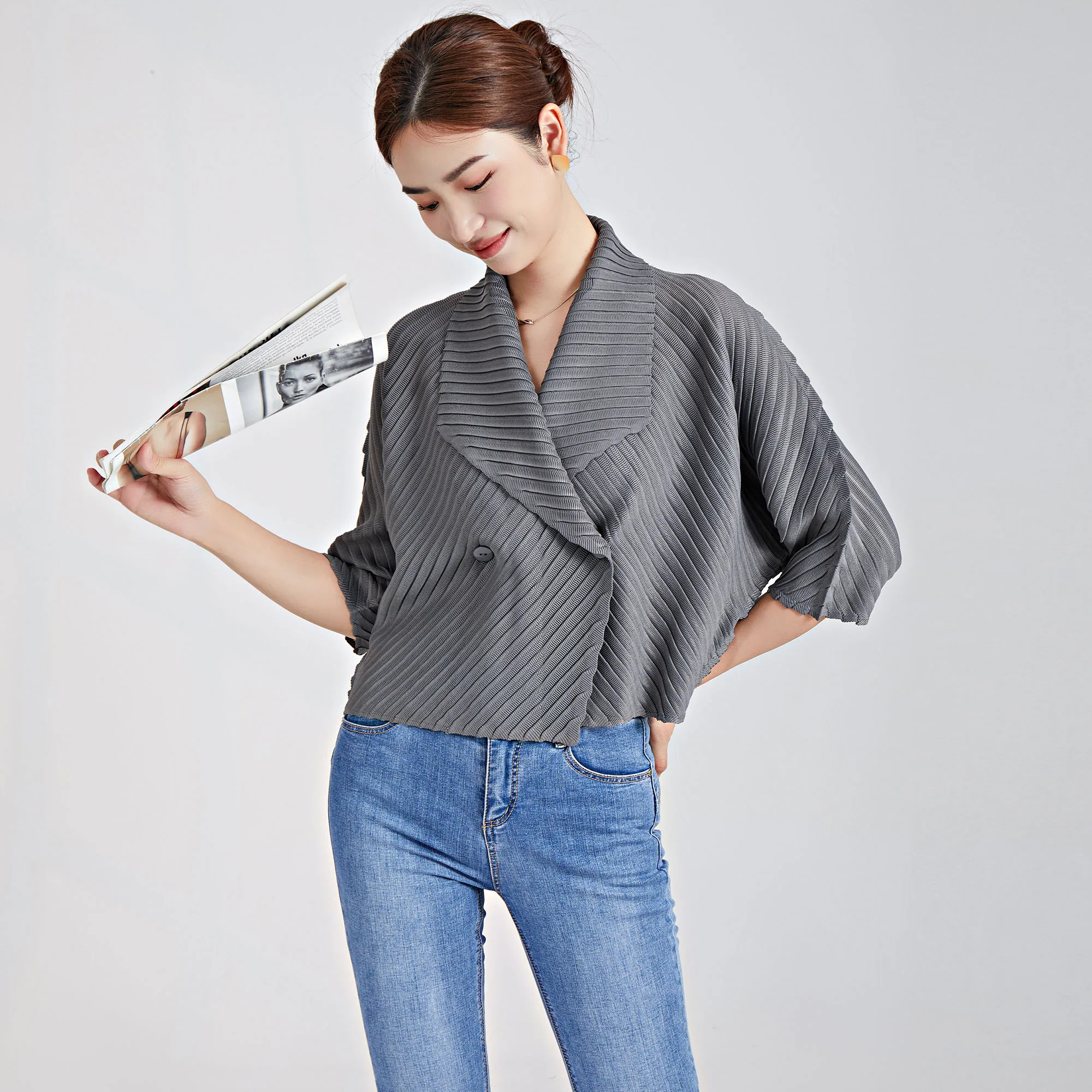2025 Latest Design Pleated Jacket Korean Woman Casual Style Office Blouson Woman Pleated Miyake Pleated Top