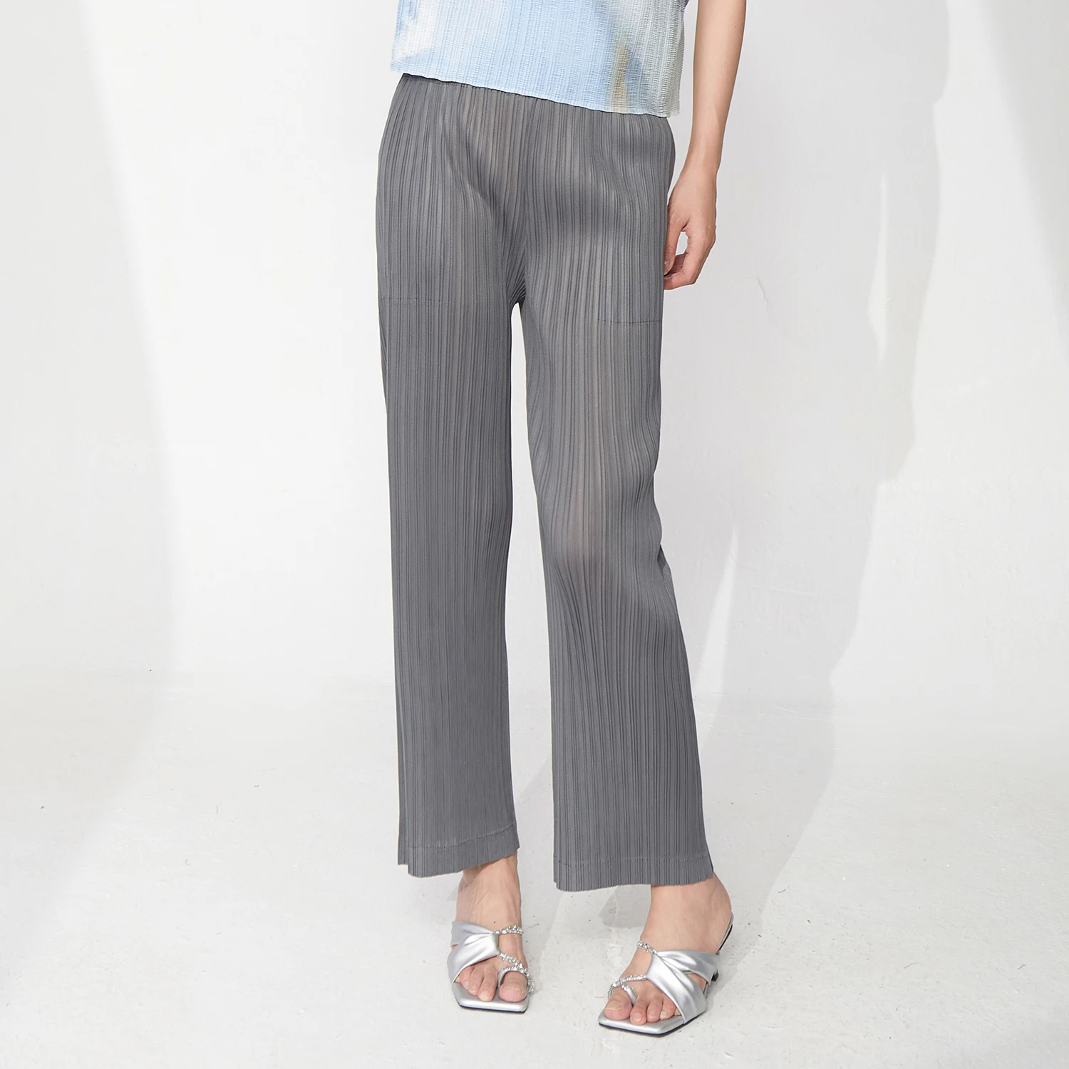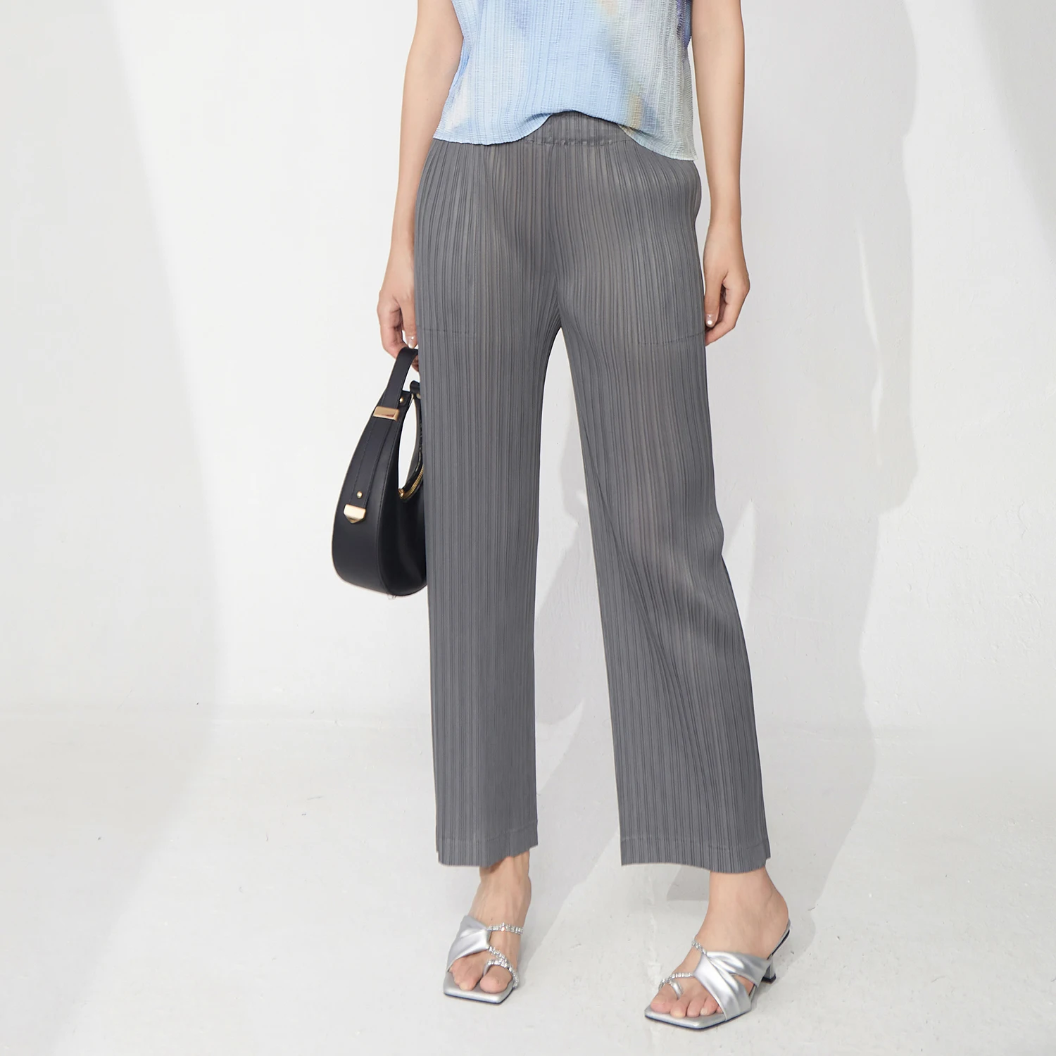 Premium Quality Quick Shipping Miyake Pleated Pants Stretch Solid Color Straight Pants Loose Casual Pants