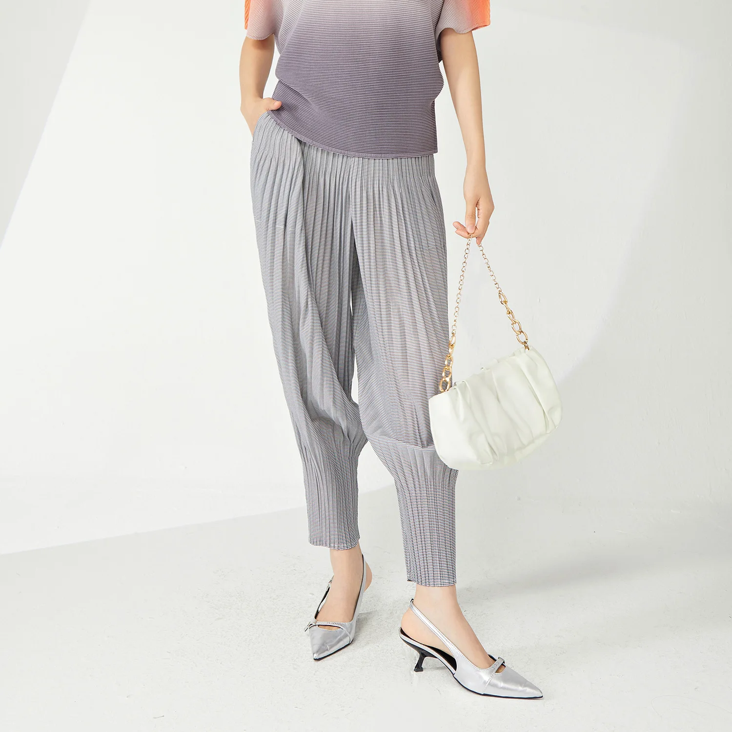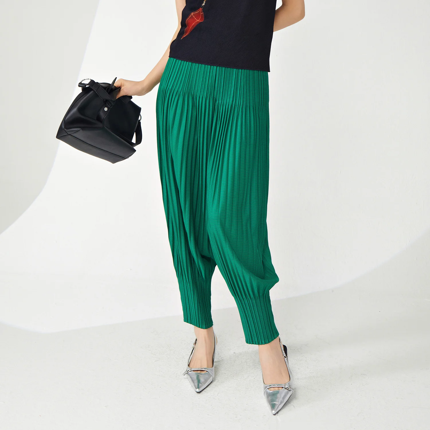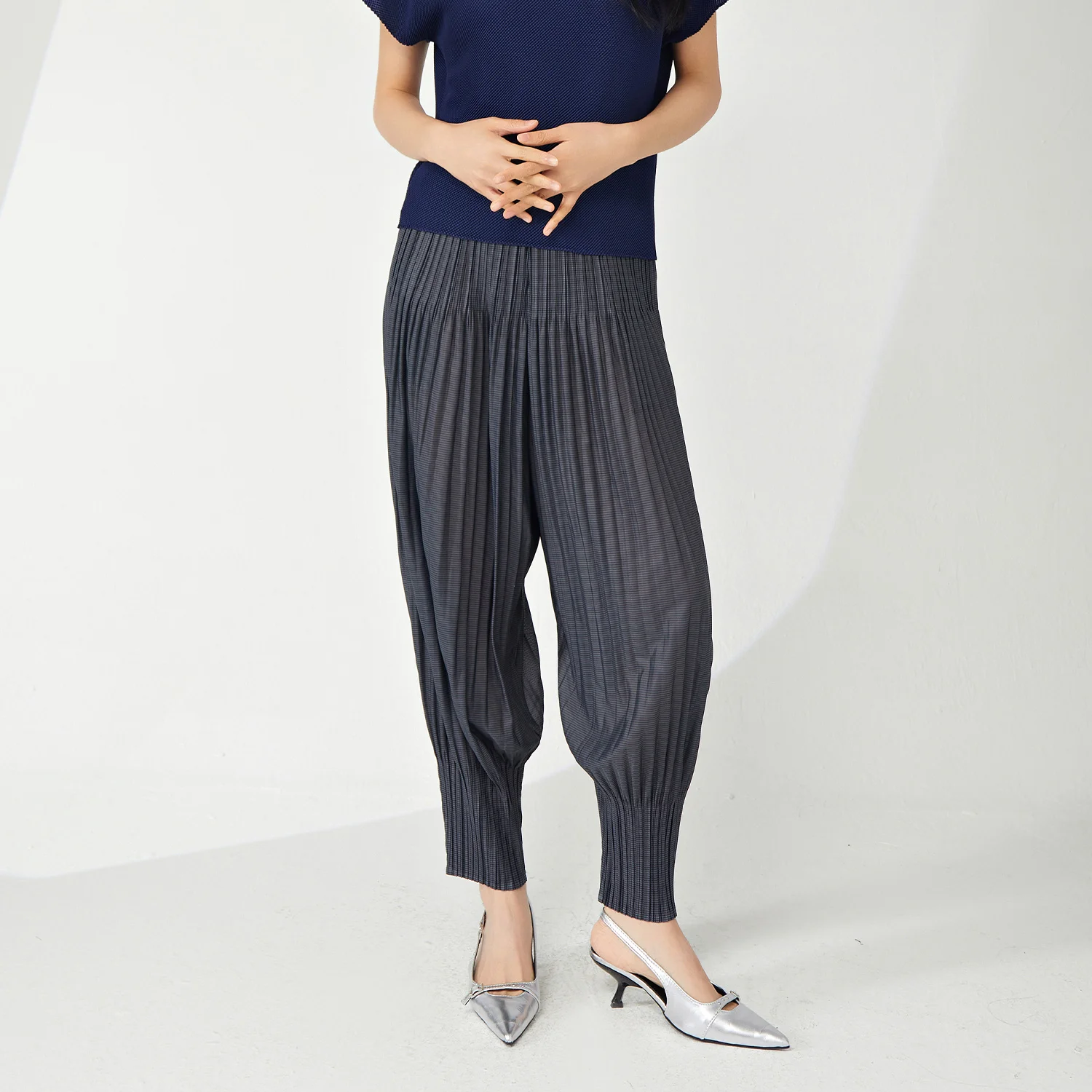 2025 New Fashionable Women's Harem Pants Pleated Japanese Style With Elastic Waist Loose and Versatile Slim Casual Pants