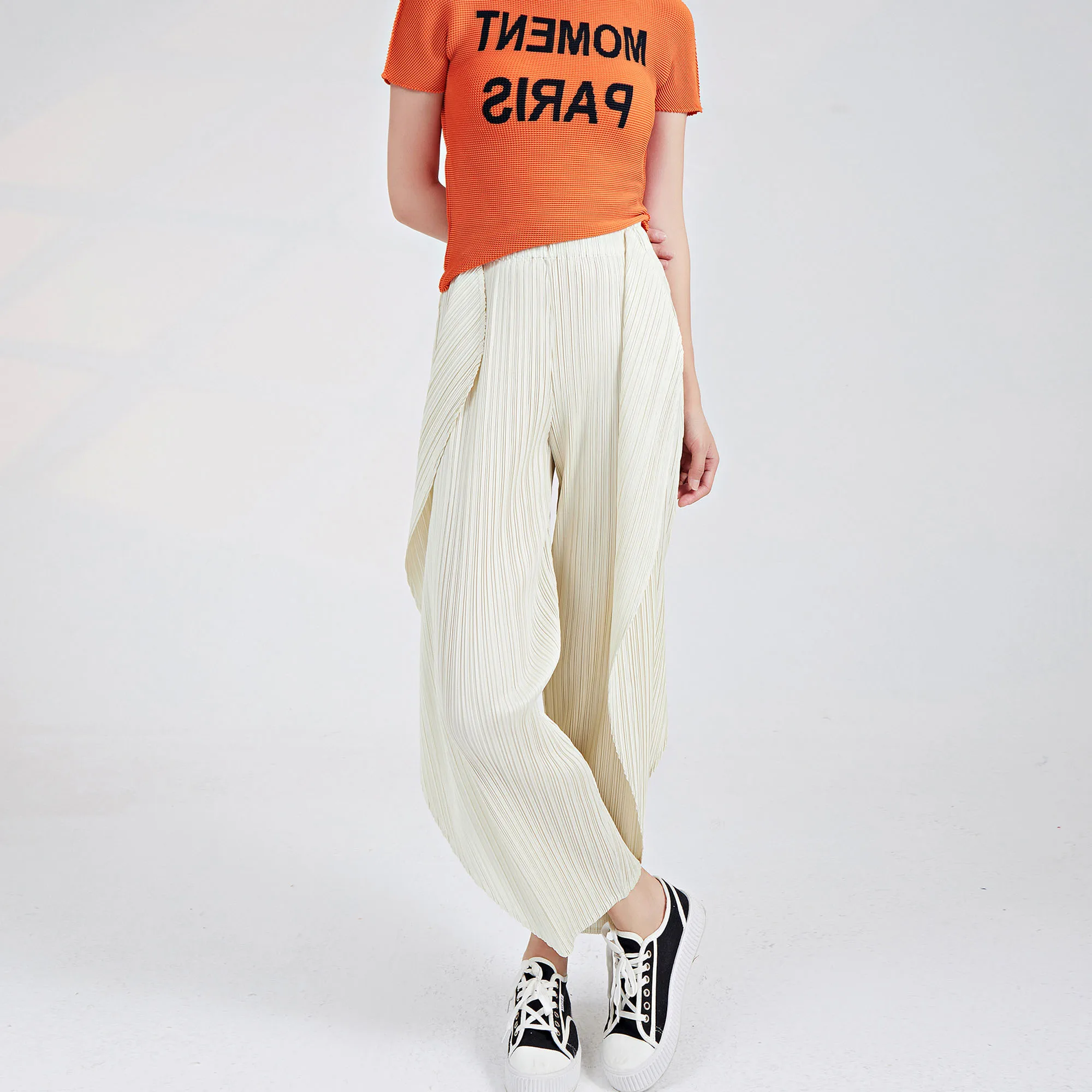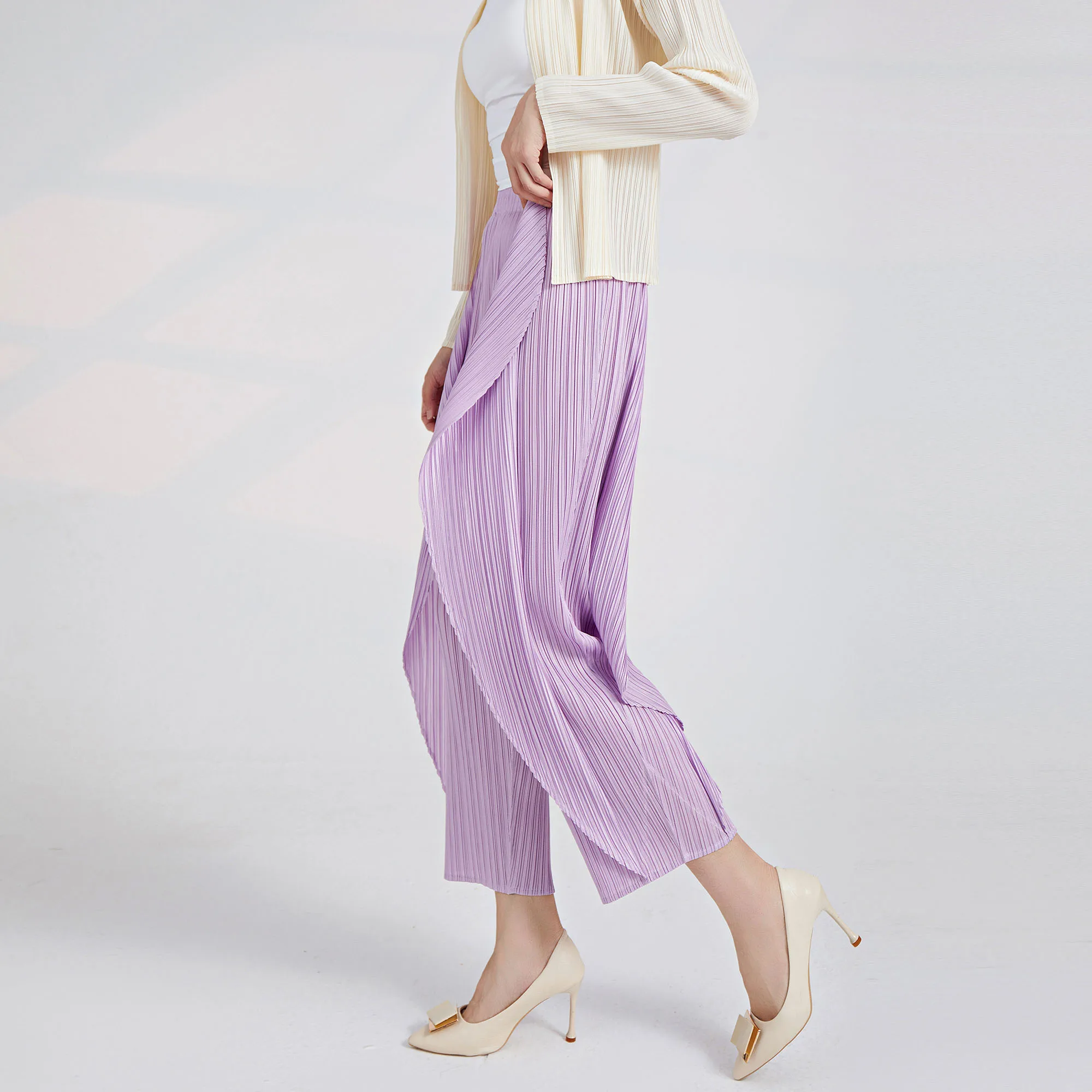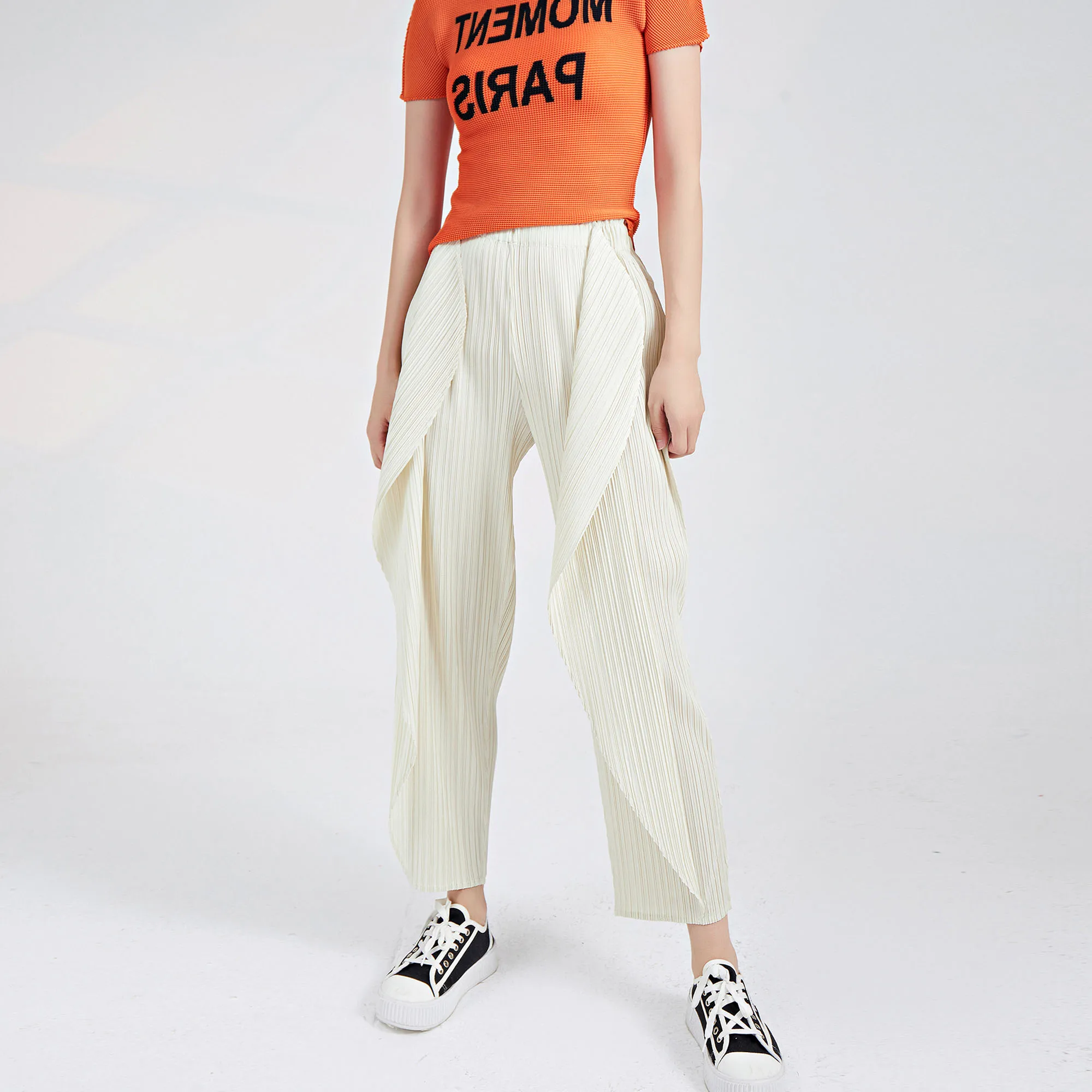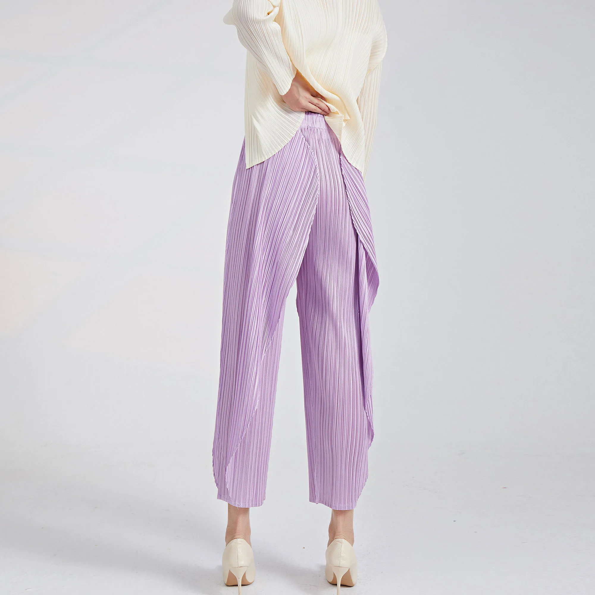 Japanese-Style Miyake Casual Pants for Women Summer New Chic and Unique Irregular Seaweed Pants Versatile Pleated Cropped Pants