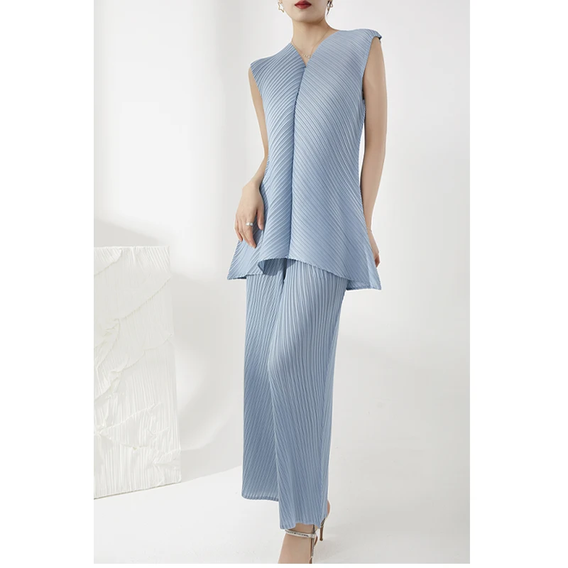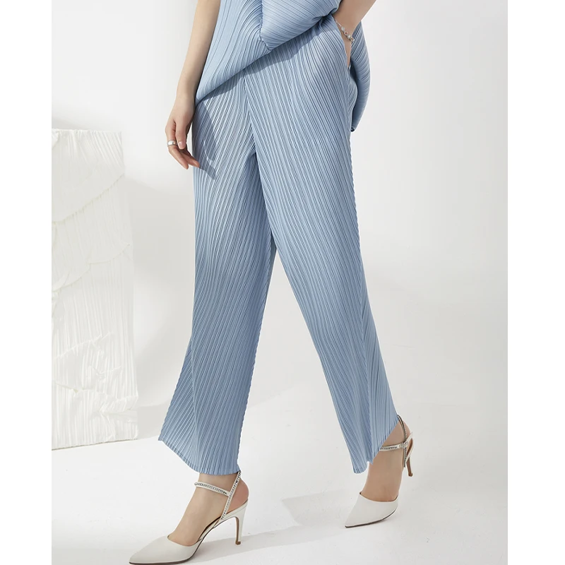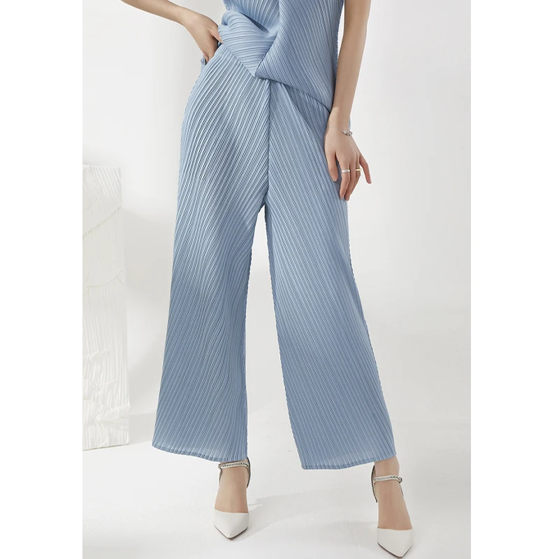 2025 Latest Miyake Pleated Trousers Ladies Casual Style Long Trousers Fashion Loose Wide Leg High Waist Straight Pants