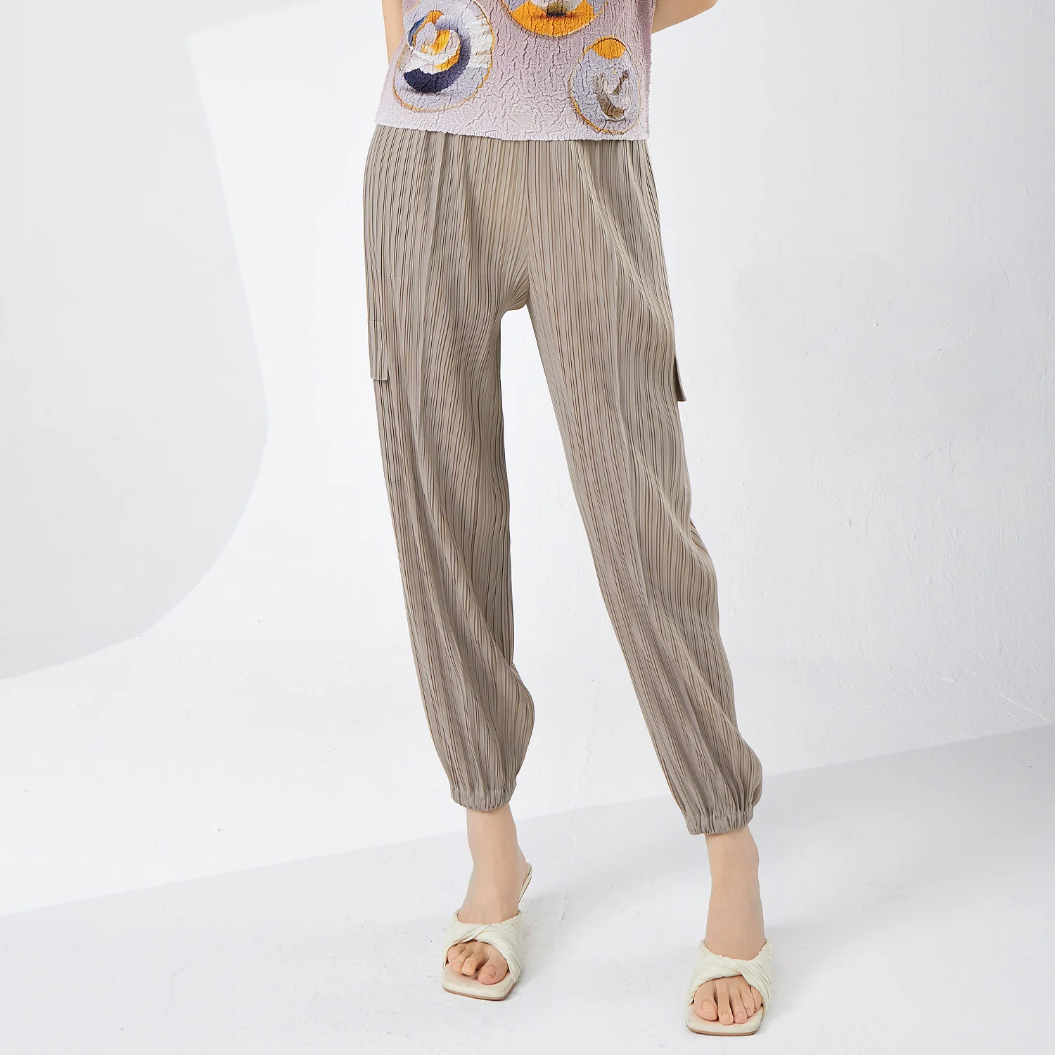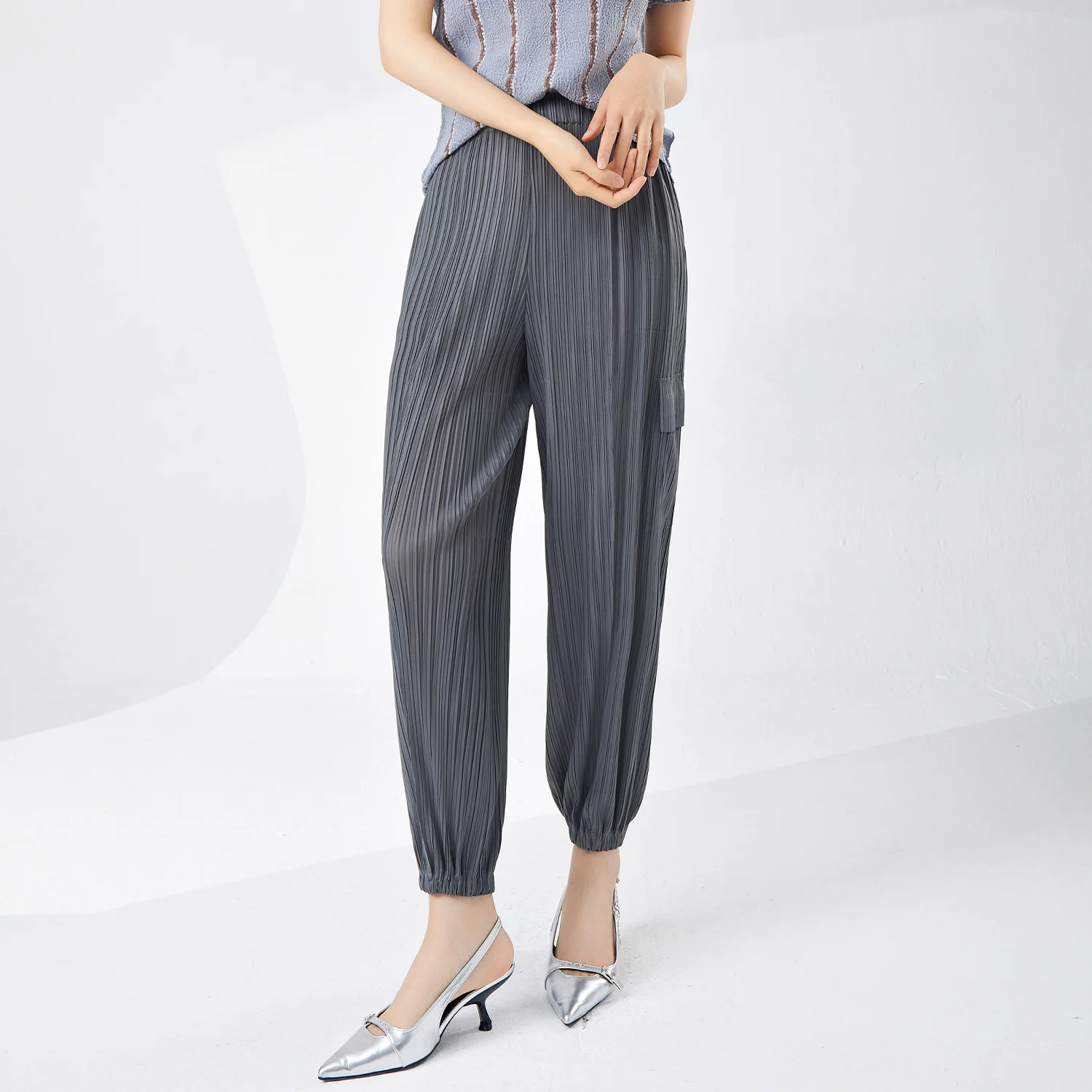 Wholesale Polyester Women's Pants Street Wear Harem Pants Pleated Loose Jogging Sweatpants for Women