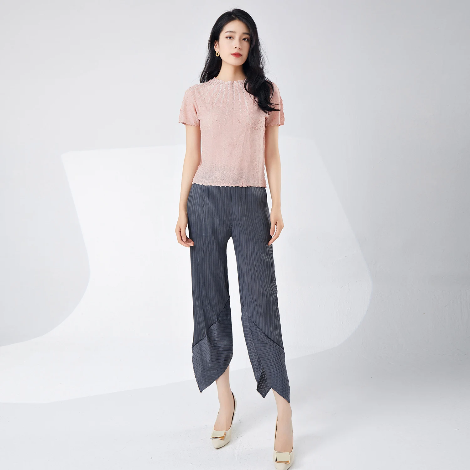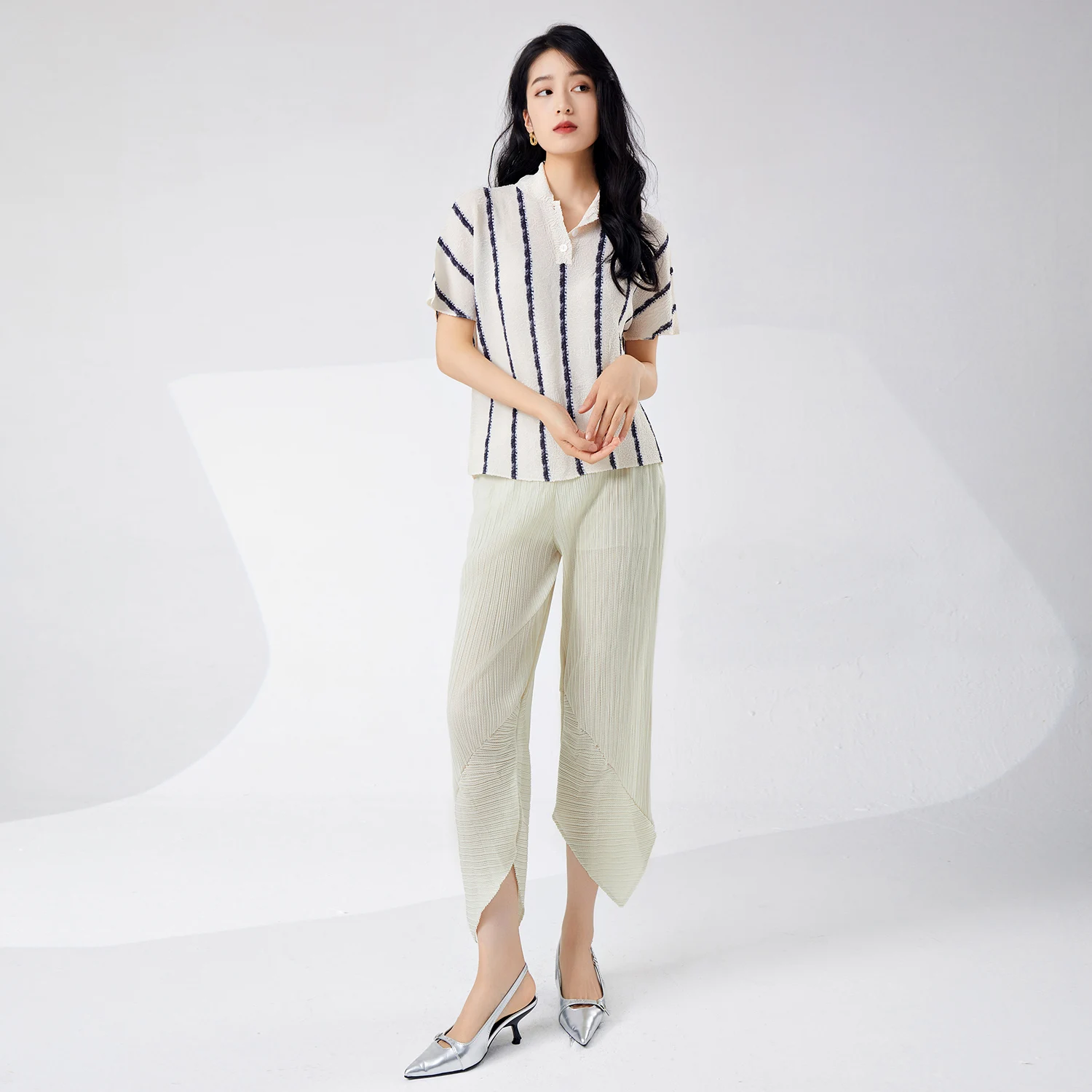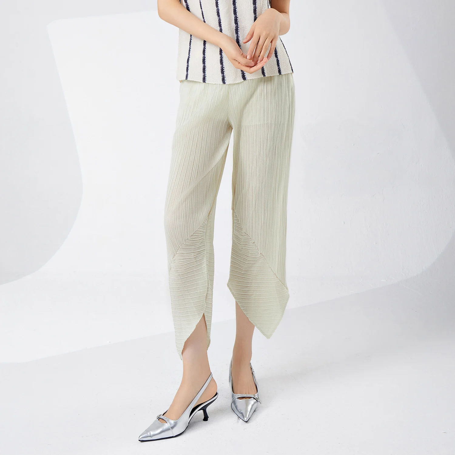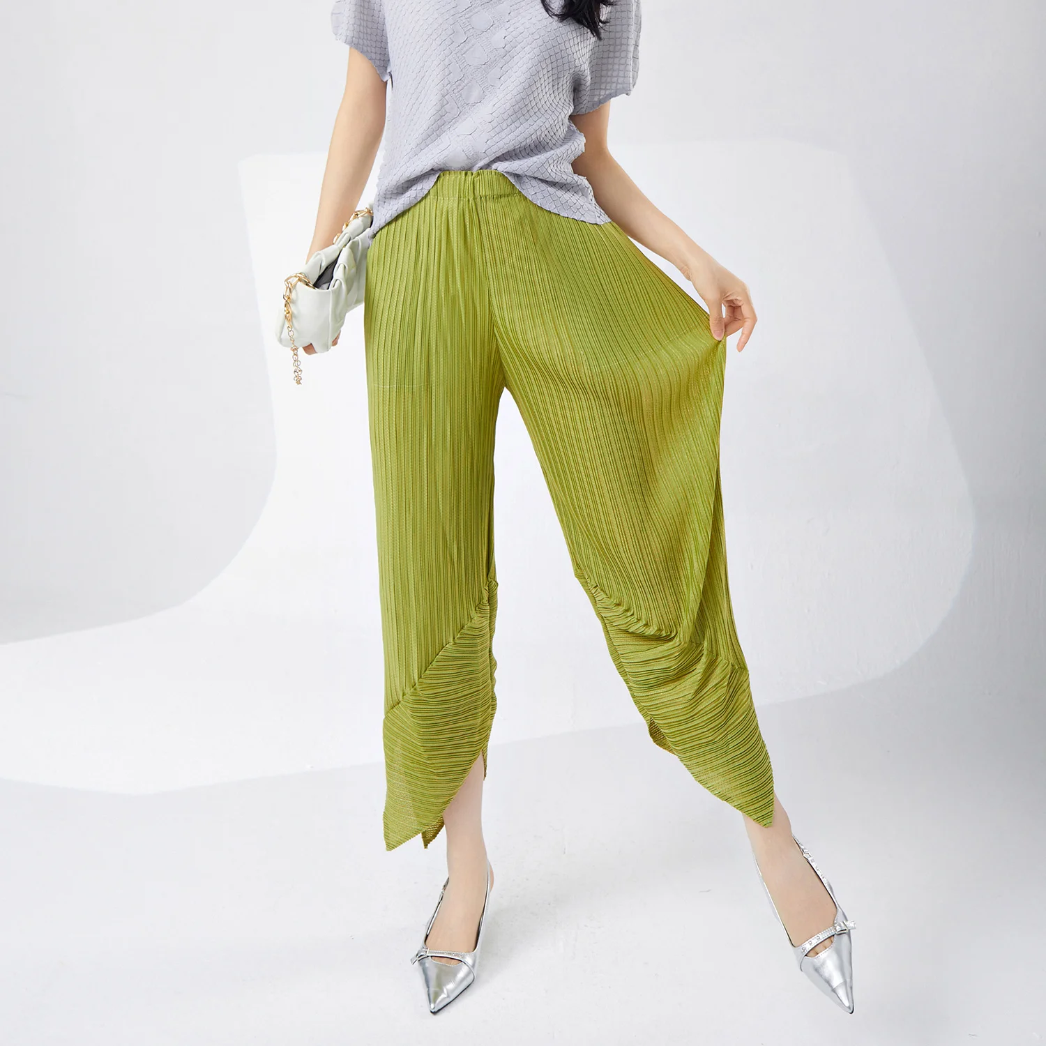 Factory Wholesale Fashion Casual Women's Pleated Pants Stretch Polyester Irregular Solid Color Wide Leg Pants