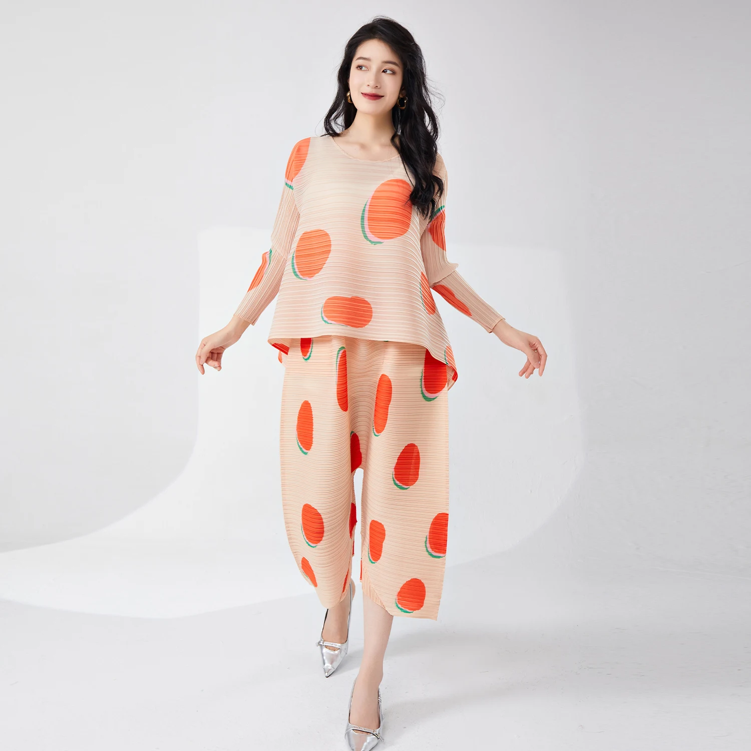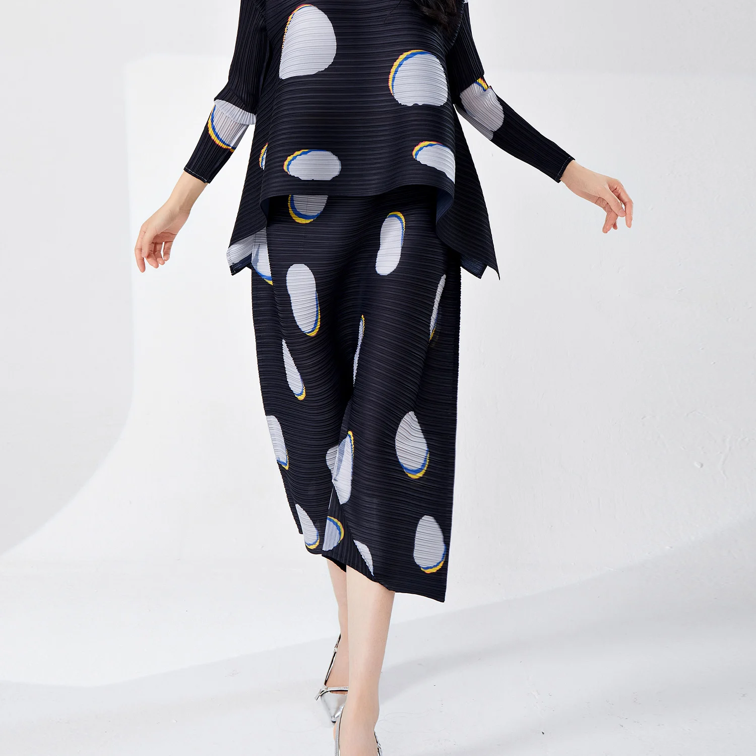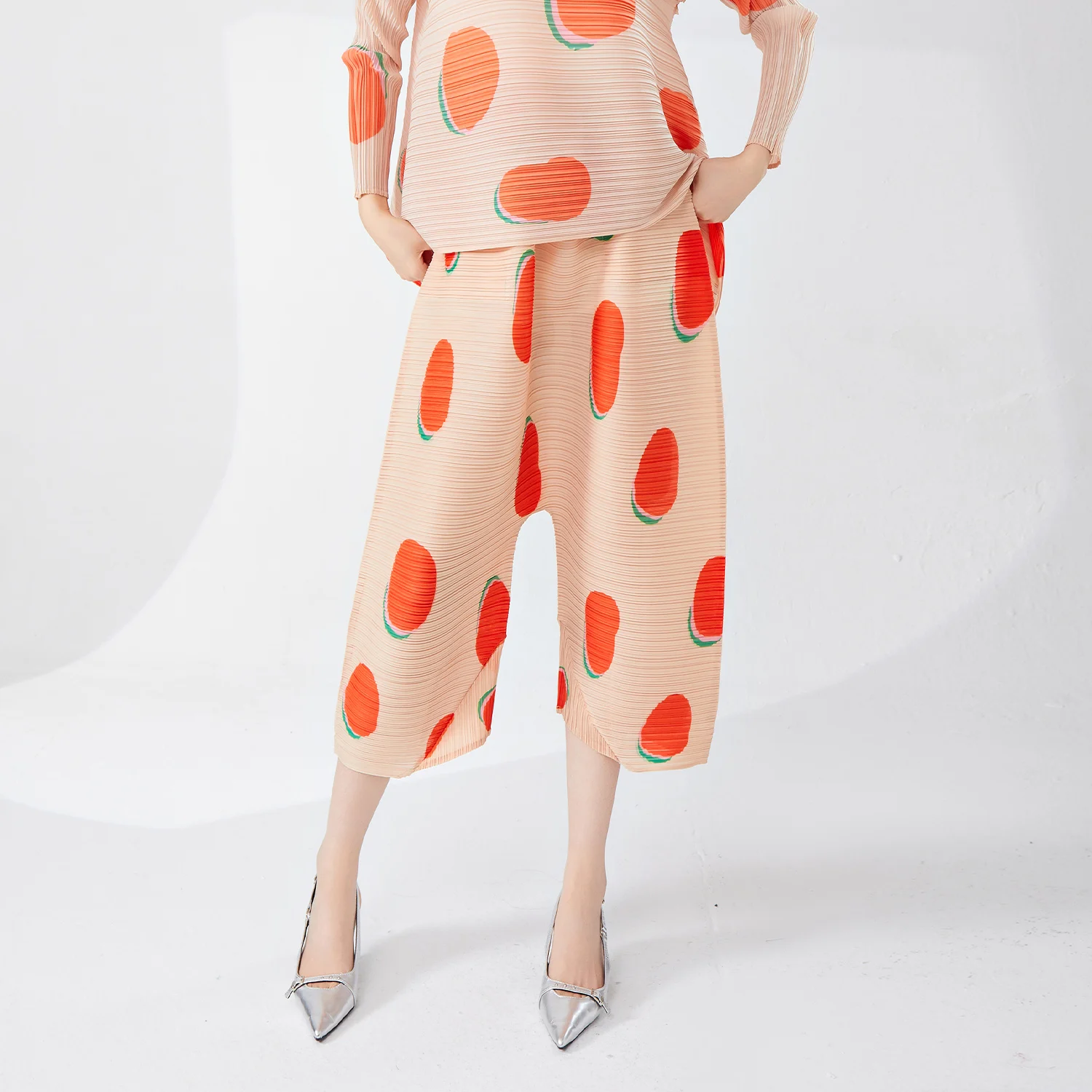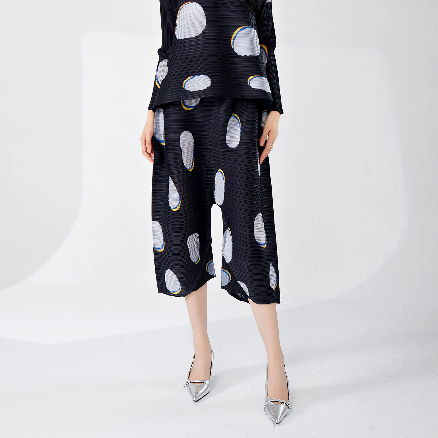 Women's Classic Pleated Wide Leg Pants Plus Size Casual Stretch Printed Polka Dot Design Western Style for Ladies Pants
