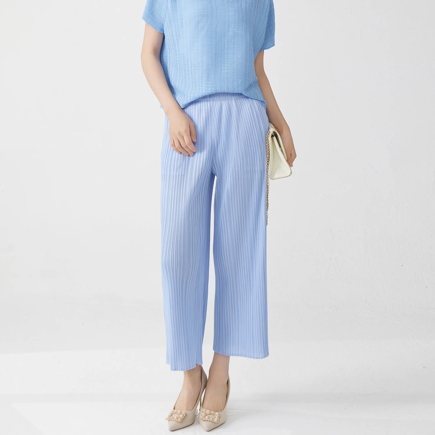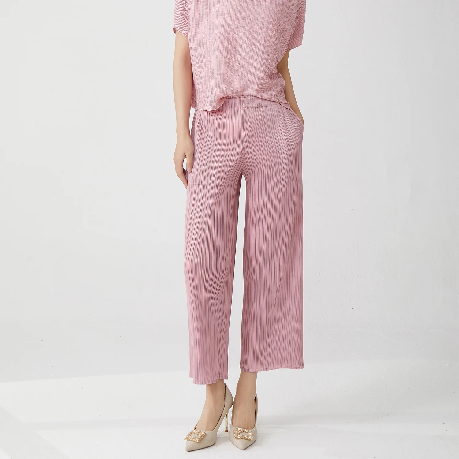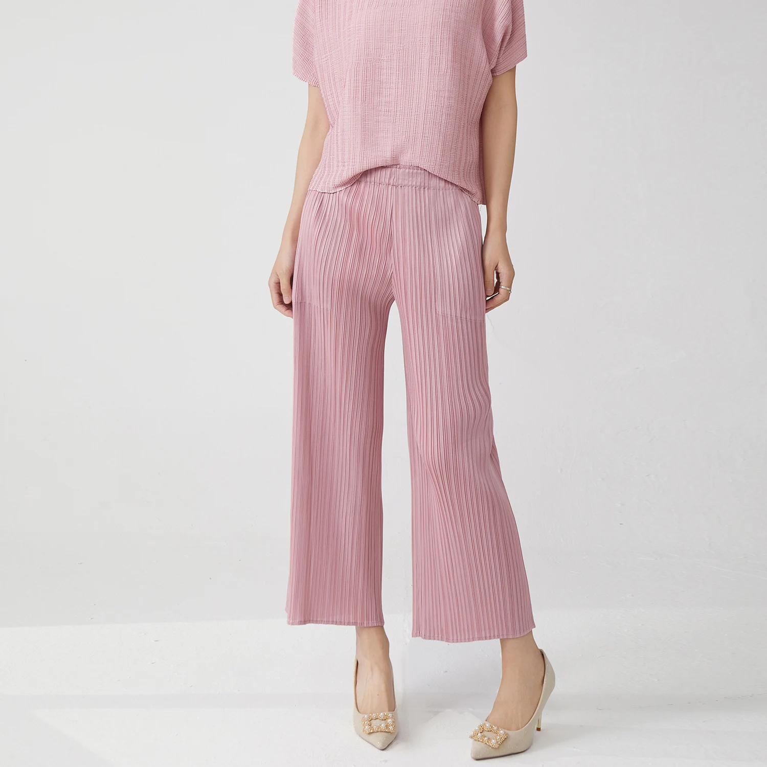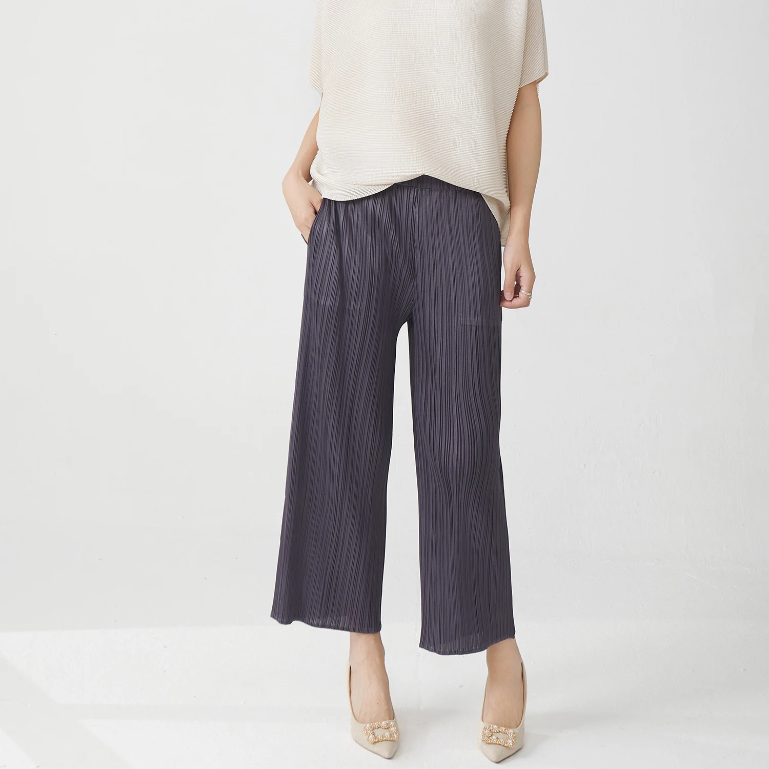 Miyake Pleats Pant Designer Stretch Casual Pants Women's Classic Solid Color Wide Leg Pants