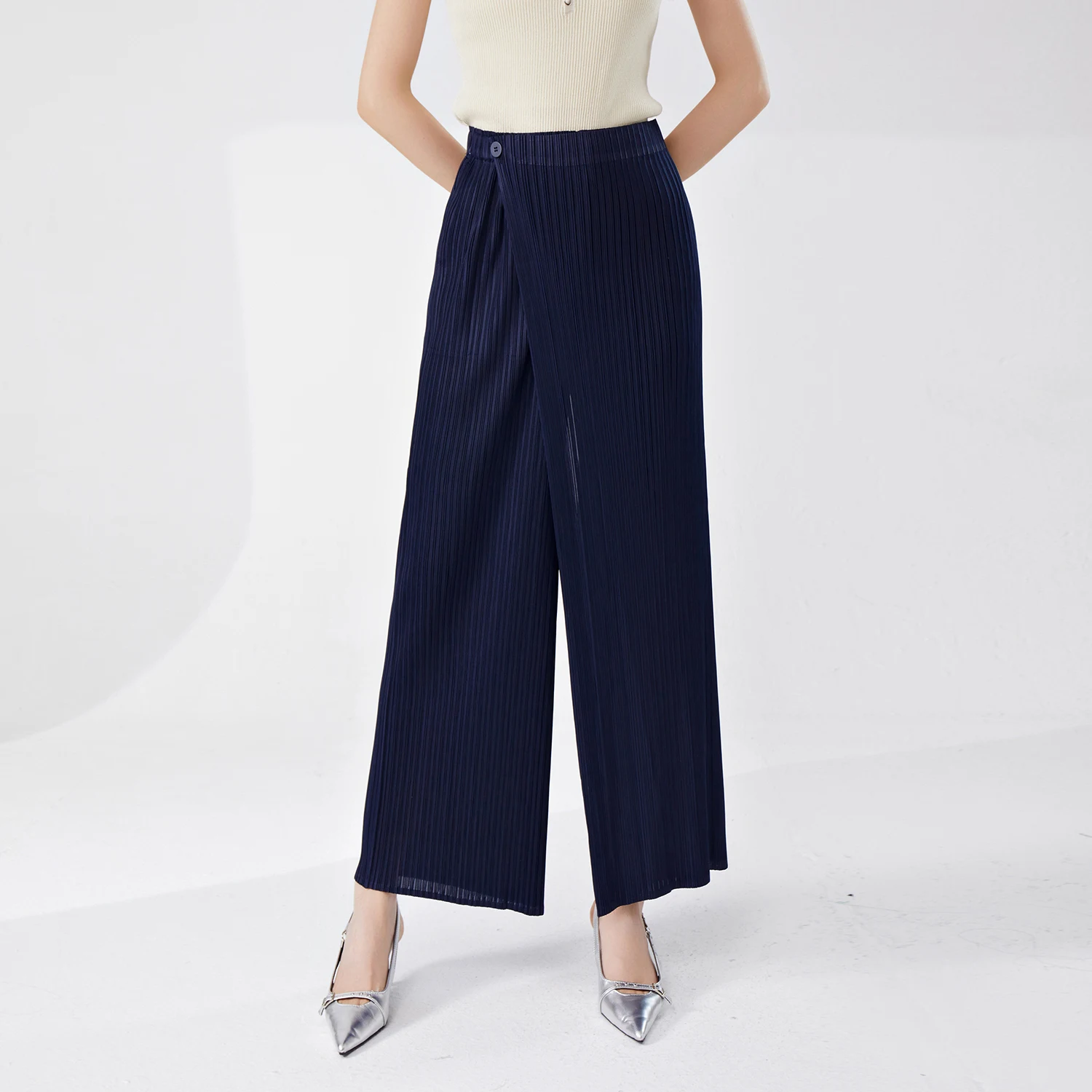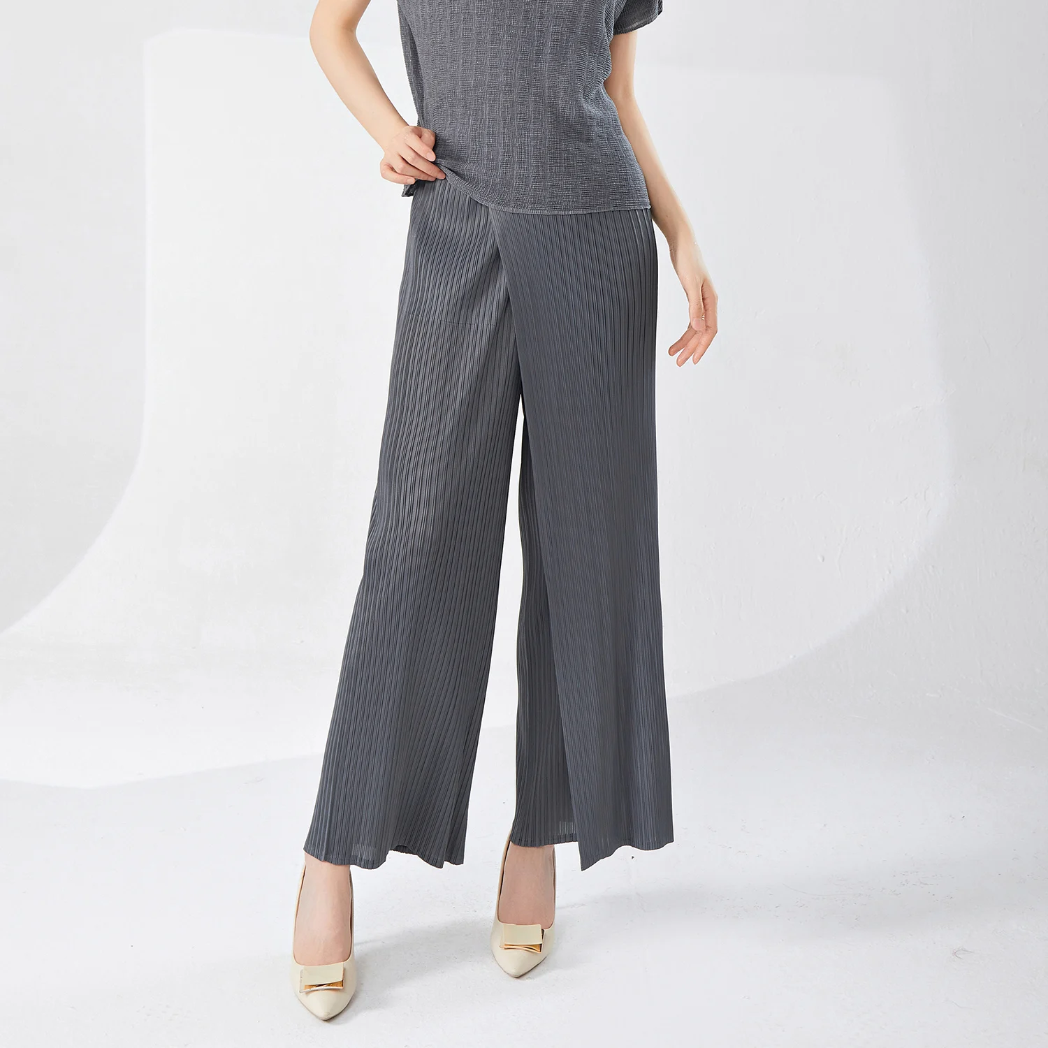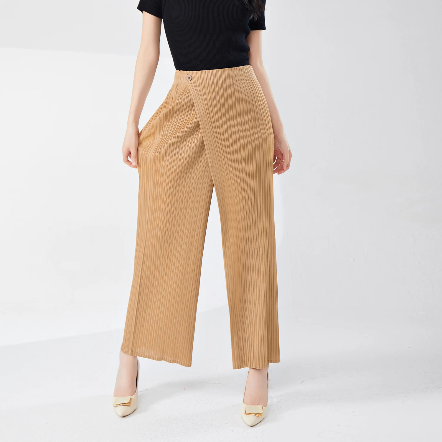 Spring and Summer New Women's Fashion Solid Color Pleated Pants Trendy Wide Leg Pants Loose Plus Size Casual Women's Trousers