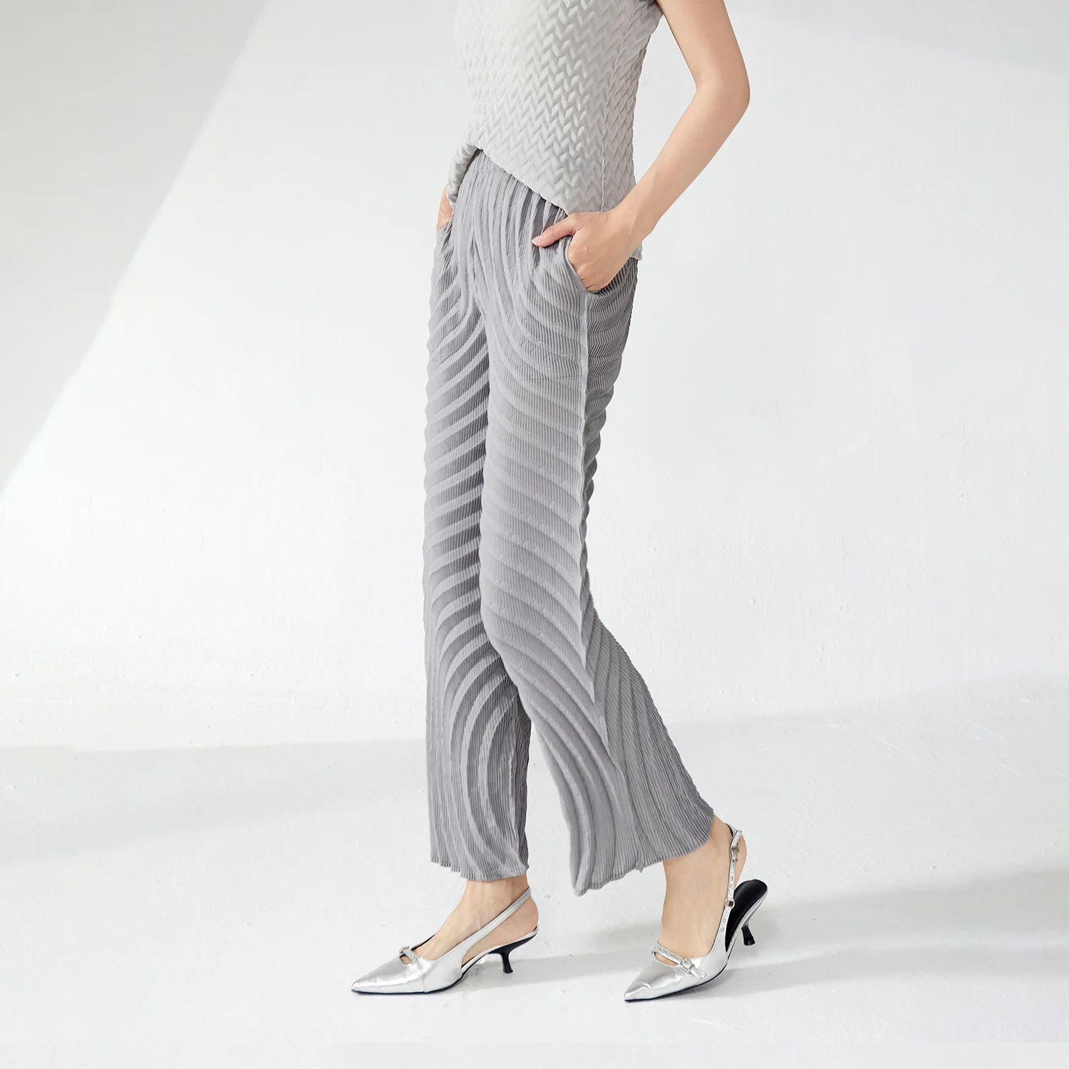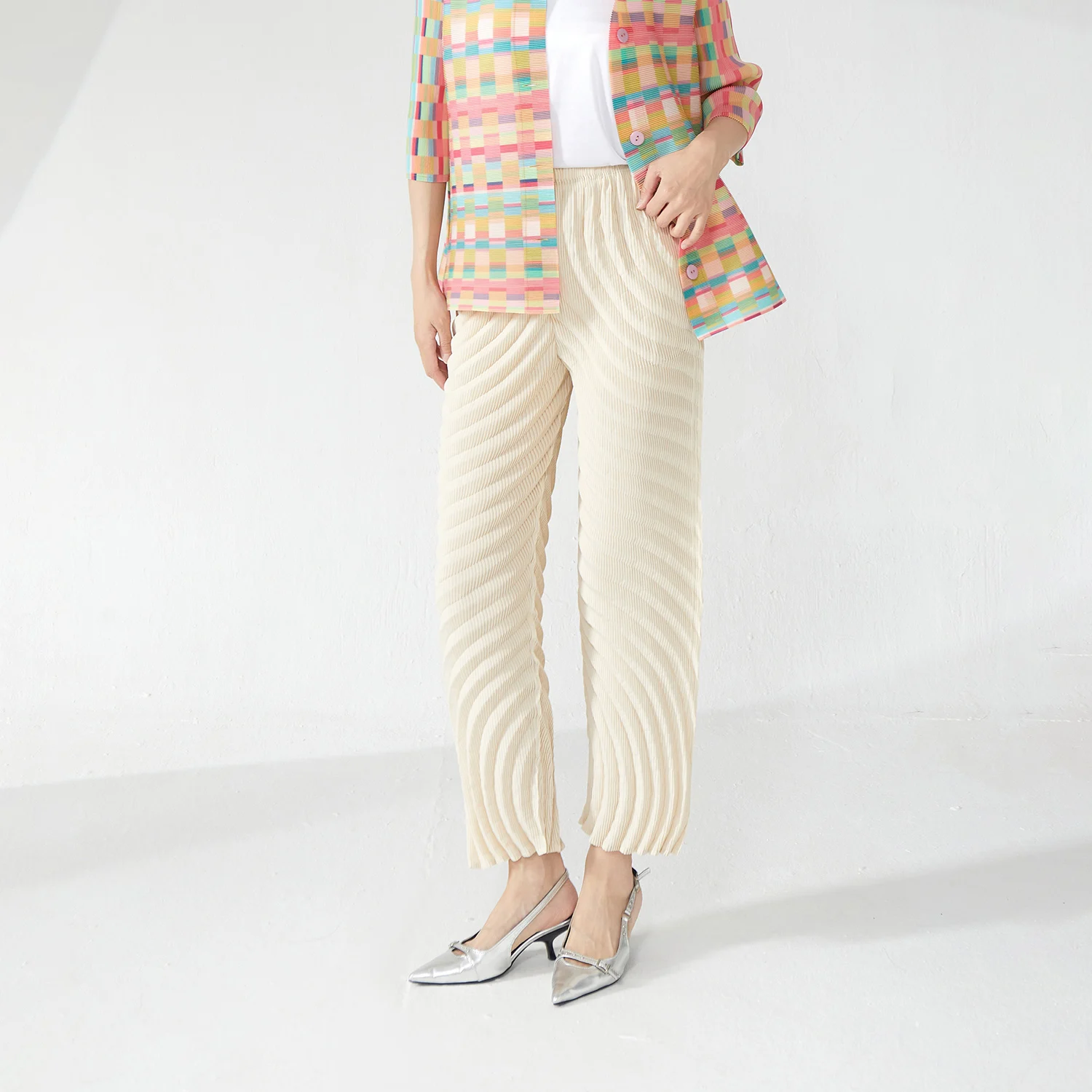 New Arrival 2025 Miyake Pleated Pants Summer Women's Casual Pants Designer Trousers Wide Leg Pants