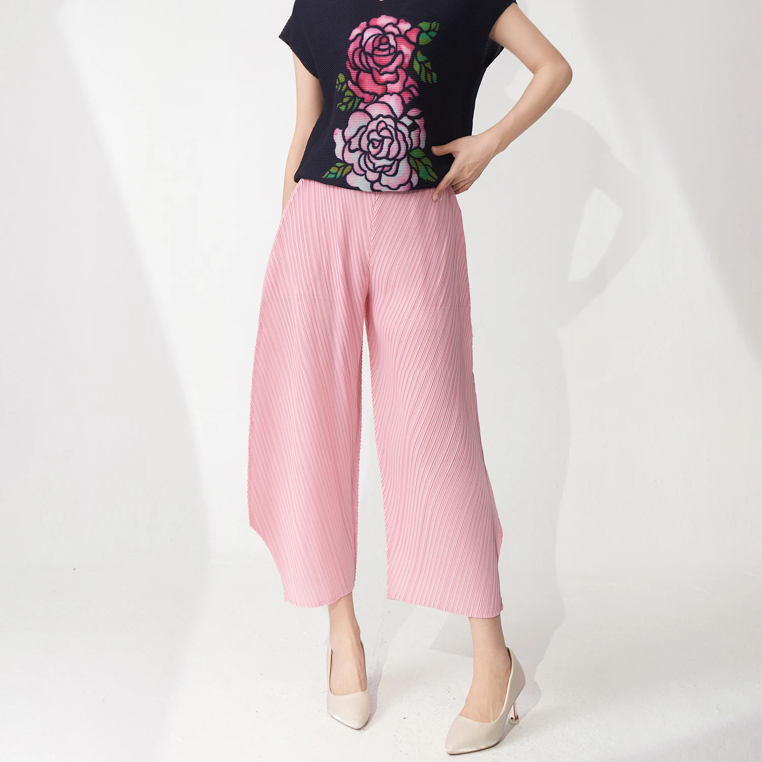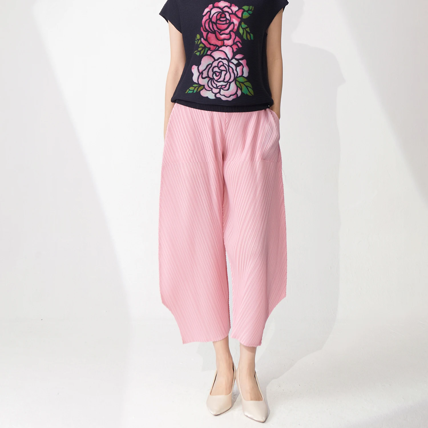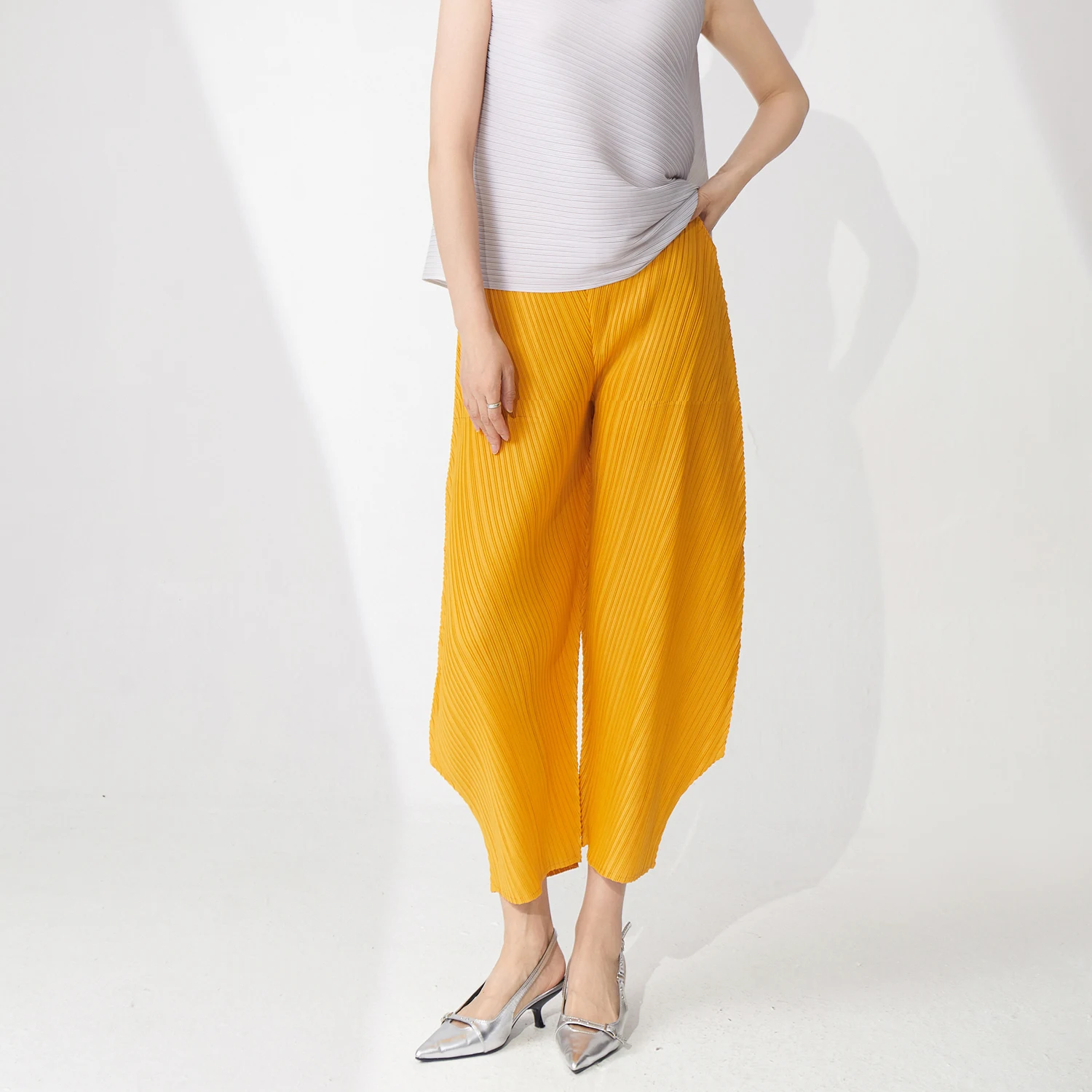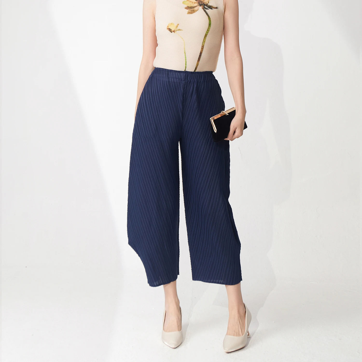 2025 New Ladies for Summer Casual Pleated Harem Pants High Waist Elastic Closure Long Plain Pants