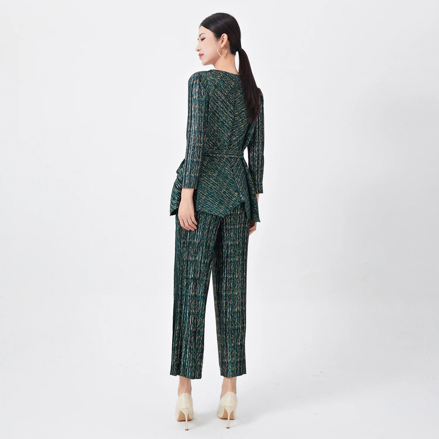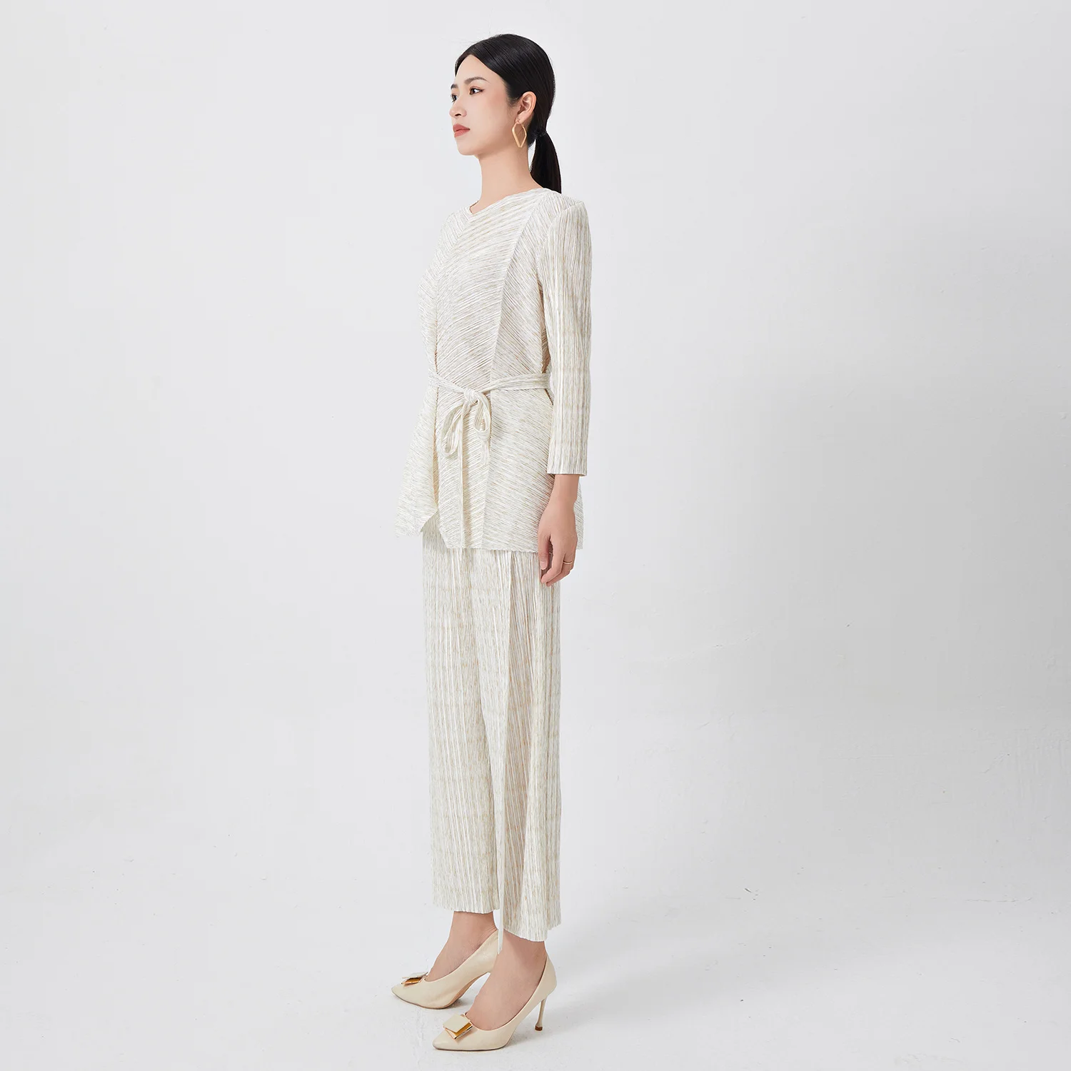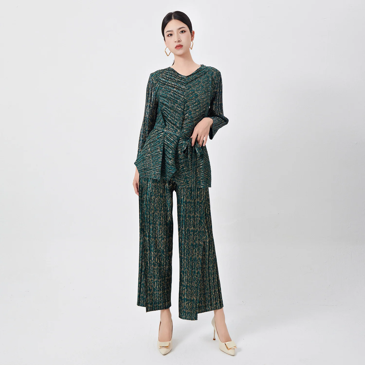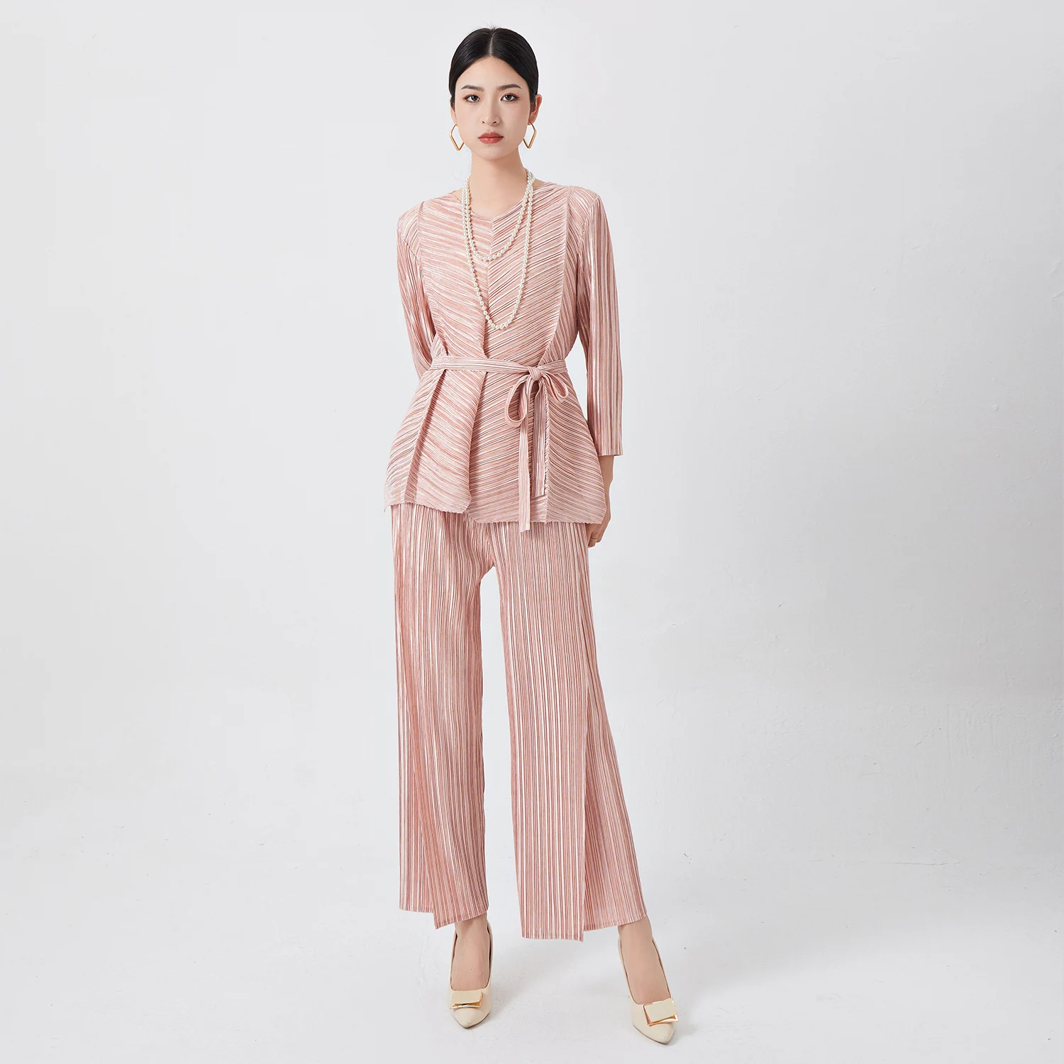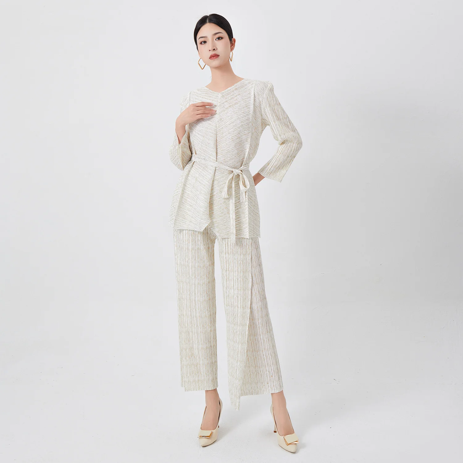 Miyake Pleated Women's Two Piece Sets Long Sleeve T-Shirt Tops Ladies Loose Pants Original Designer Causal Clothing Sets