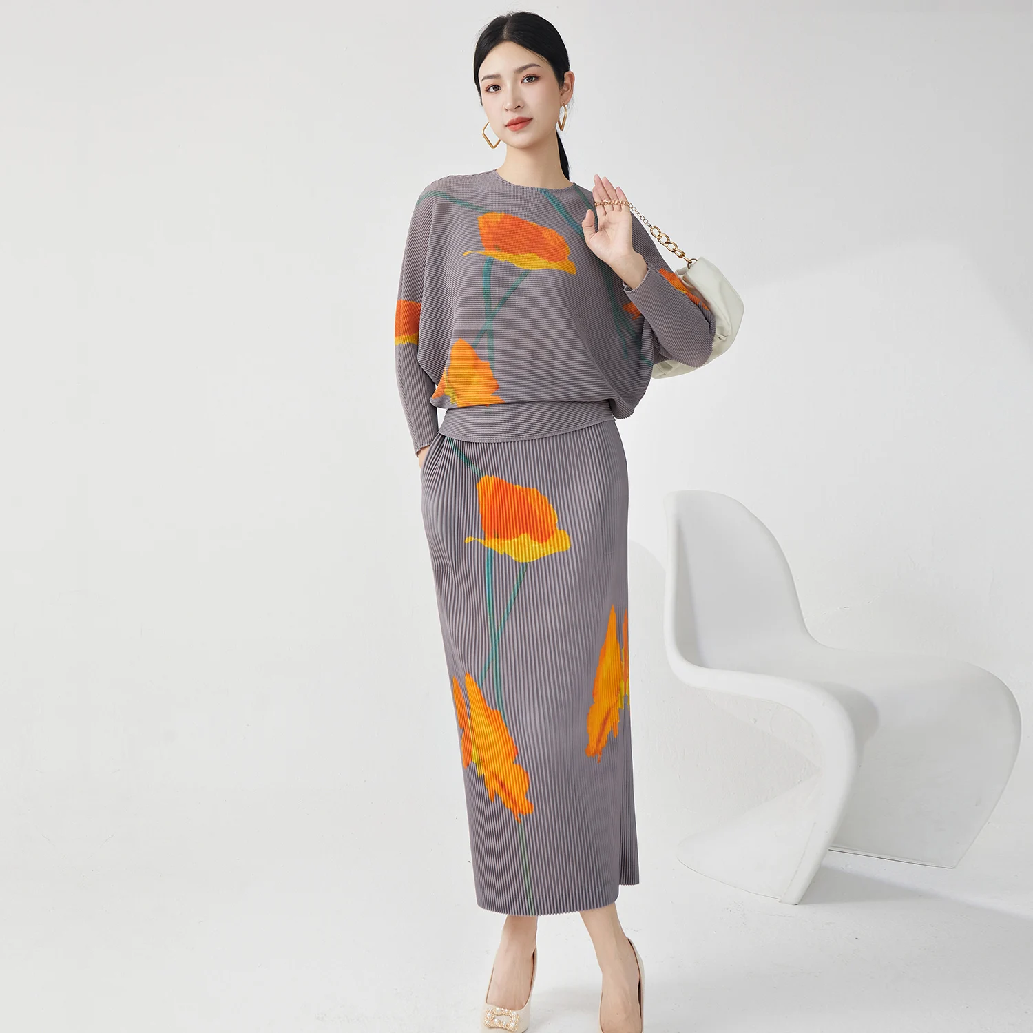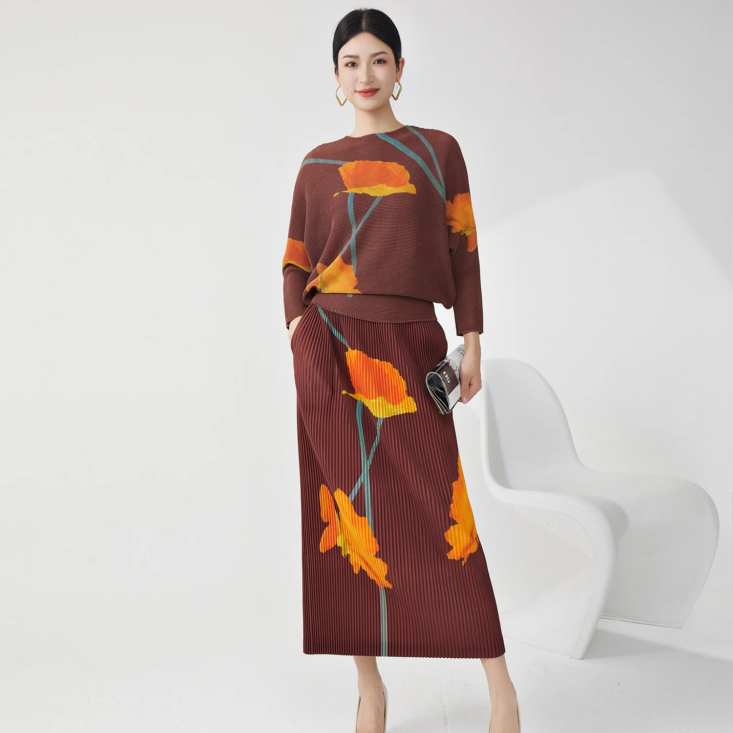 2025 One Size Casual Summer Two Piece Set High Quality Latest Design Polyester Pleated Top & Women's Two Piece Set