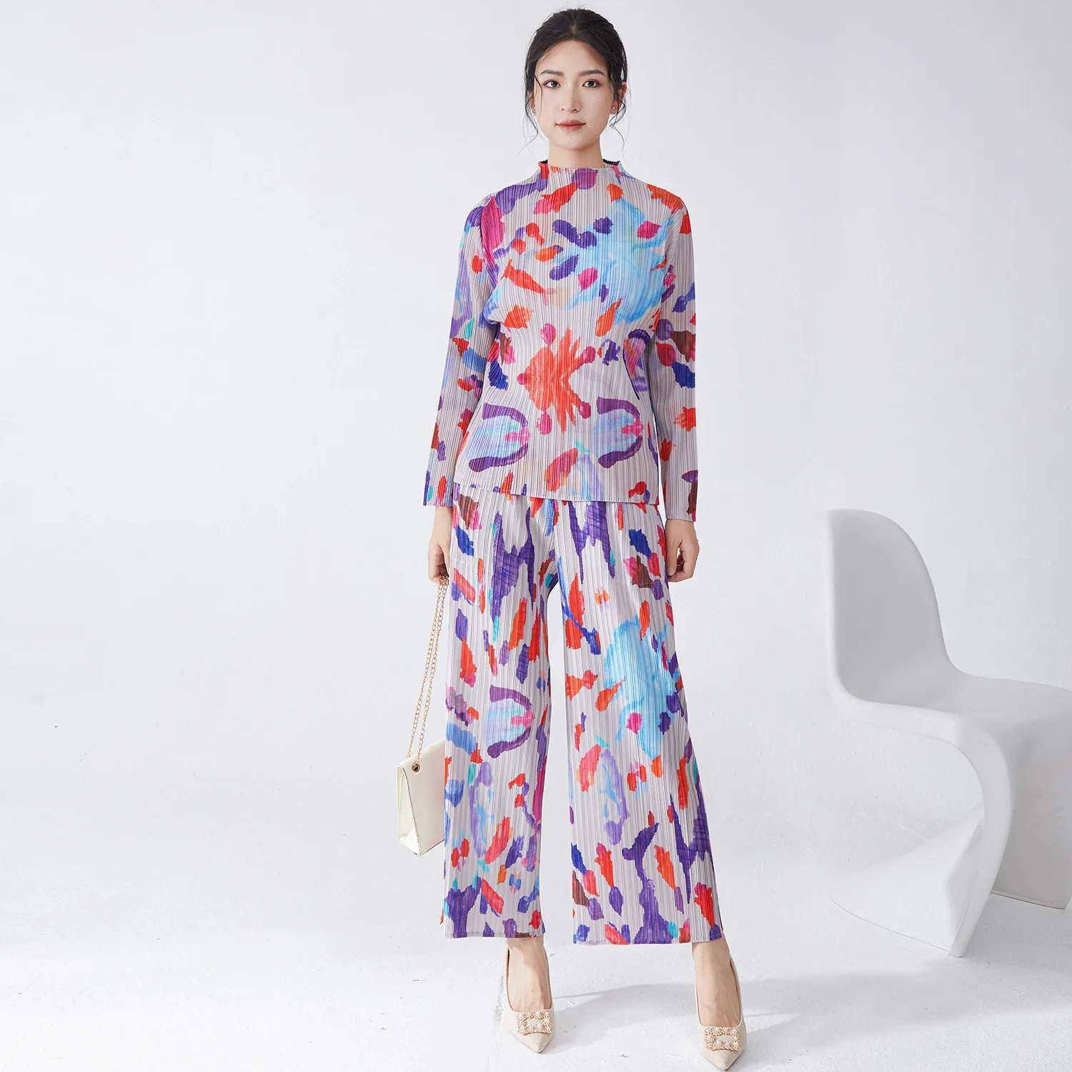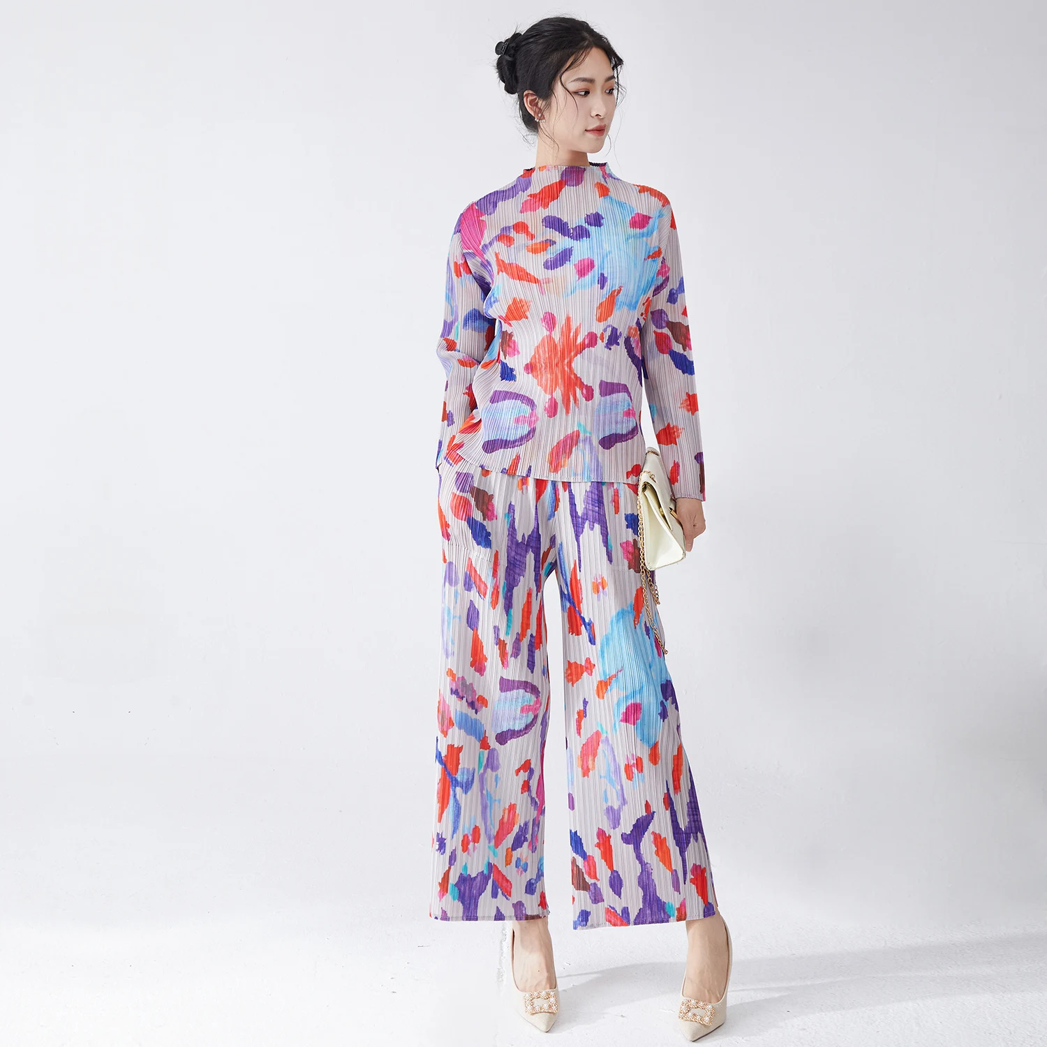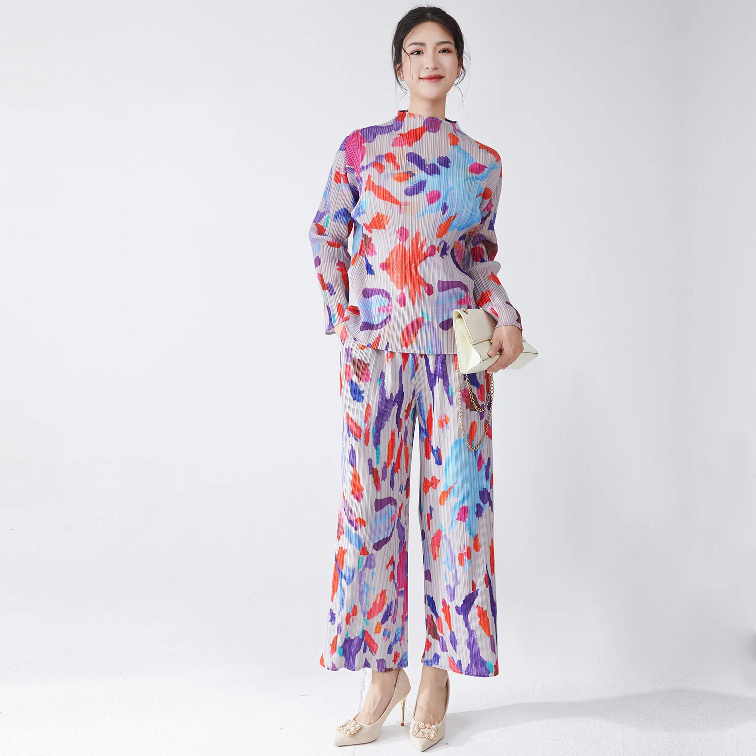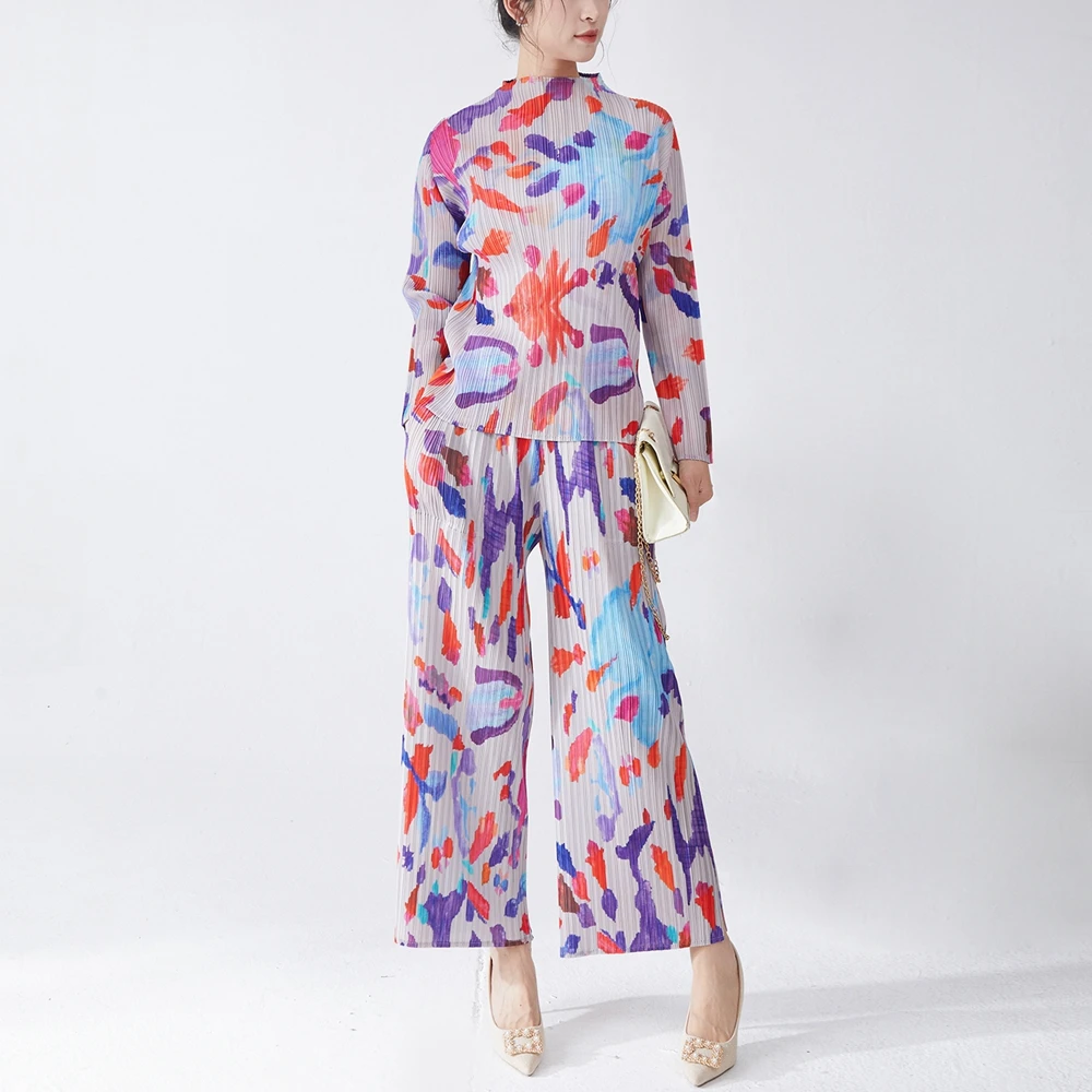 Factory Direct Fashion Miyake Pleated Set Design High Quality Women's Fashion Top and Pants Two-piece Set