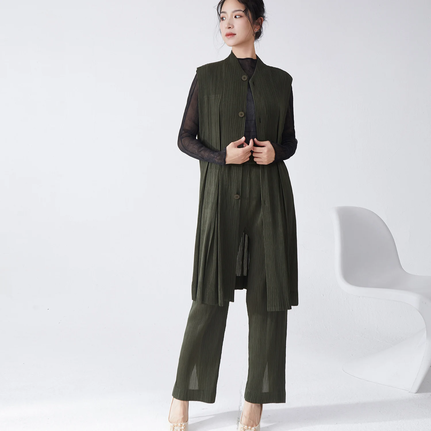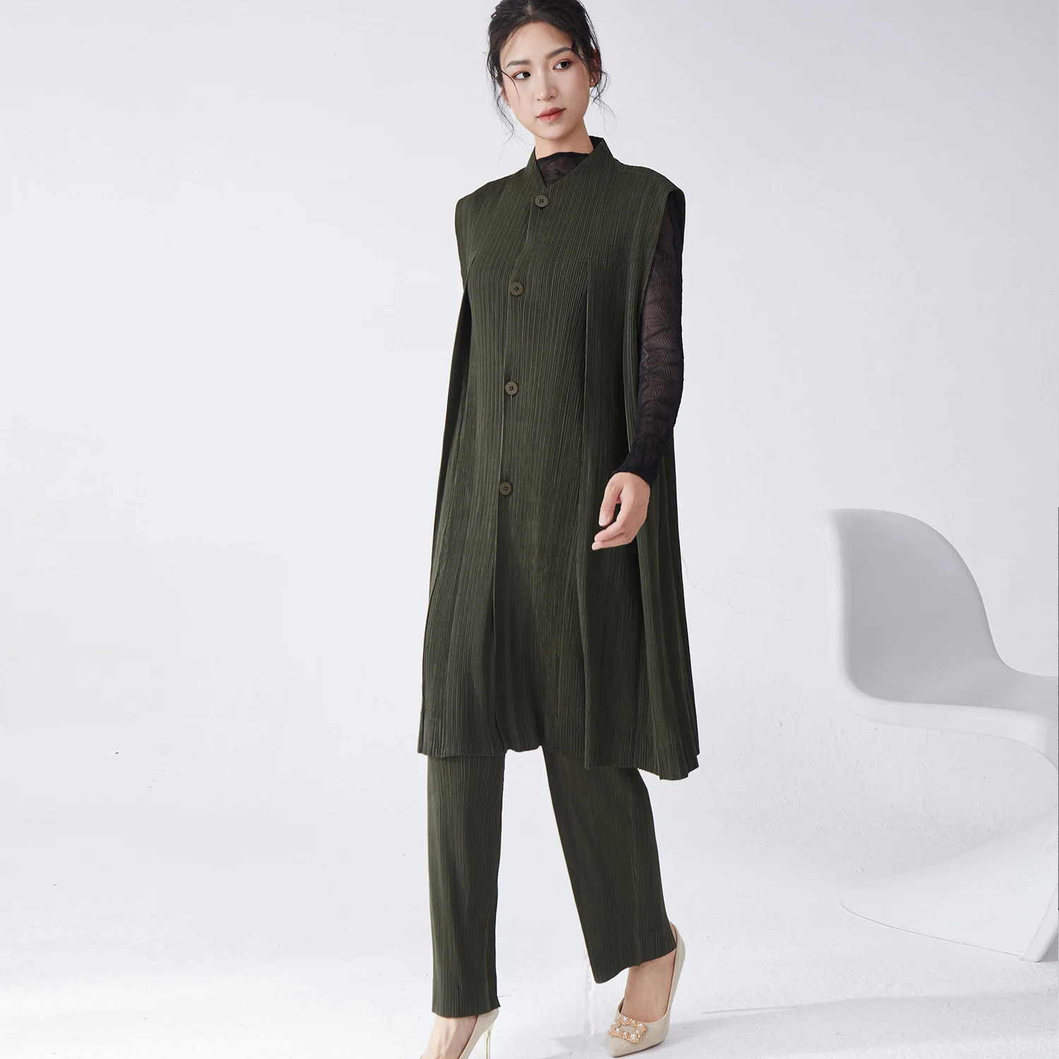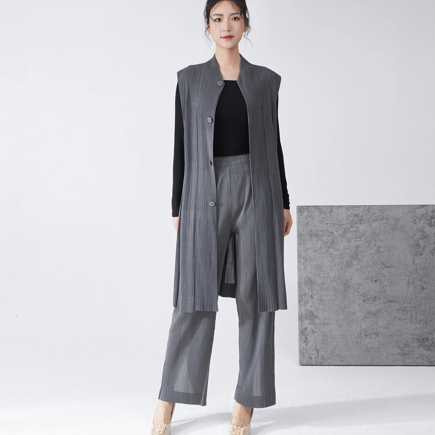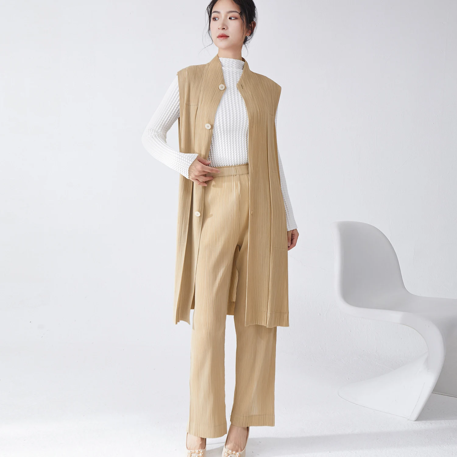 Wholesale Smocked Clothing Women's Fashion Suits High Quality Button Down Sleeveless Top and Pants Two Piece Set