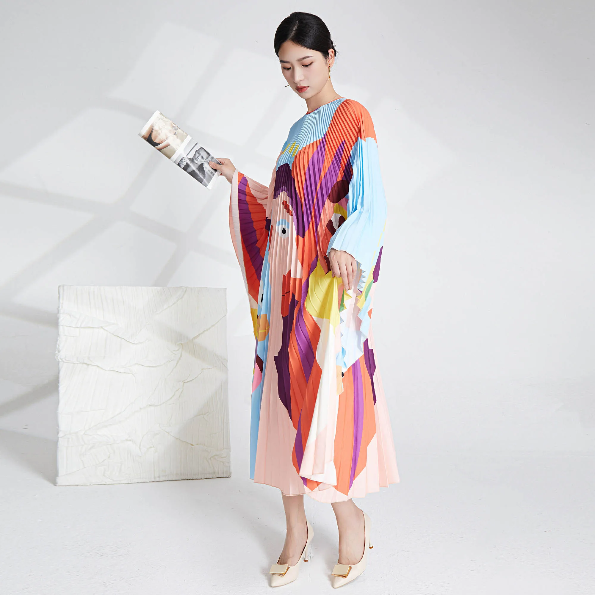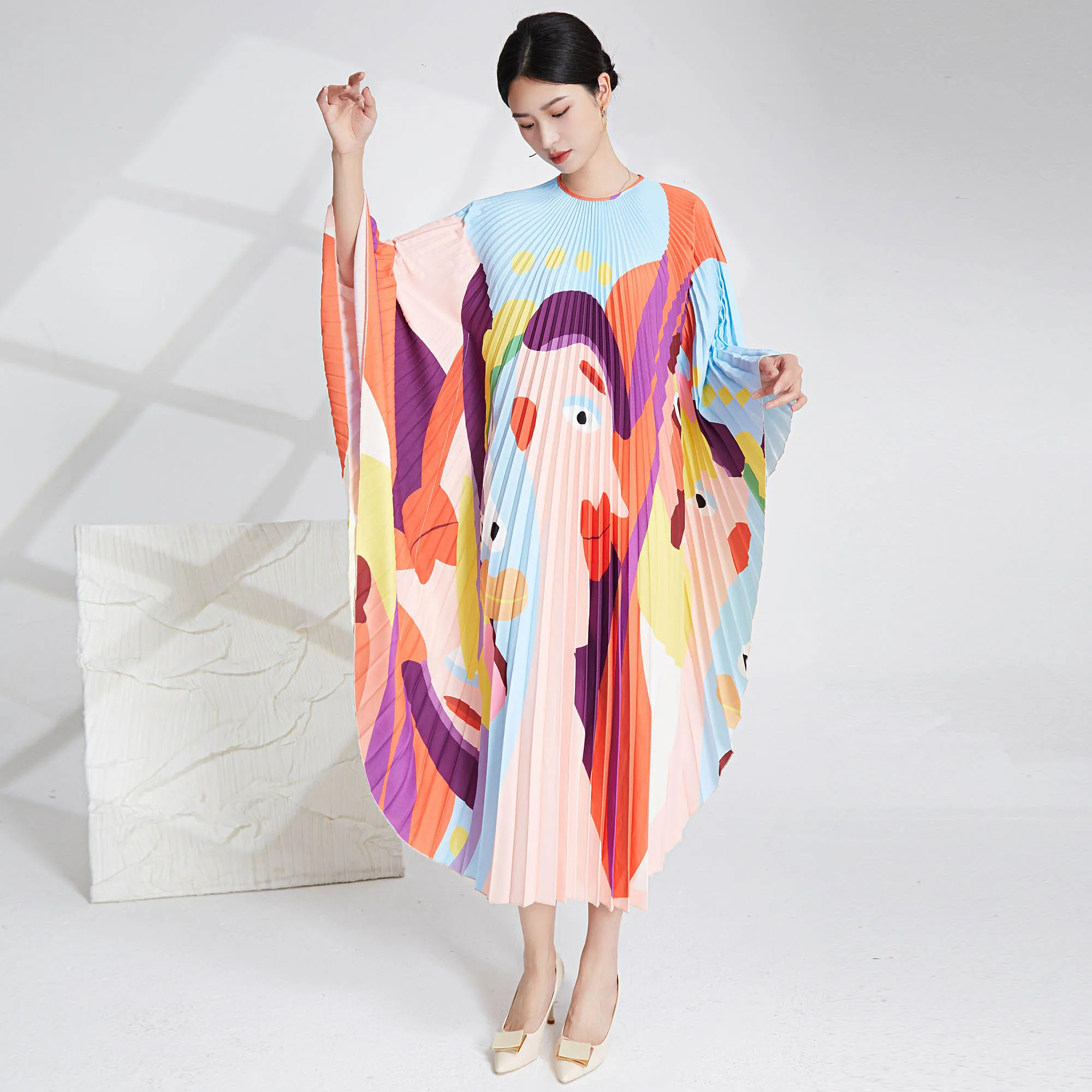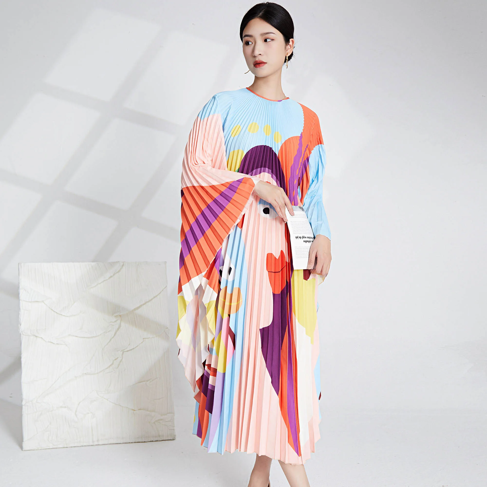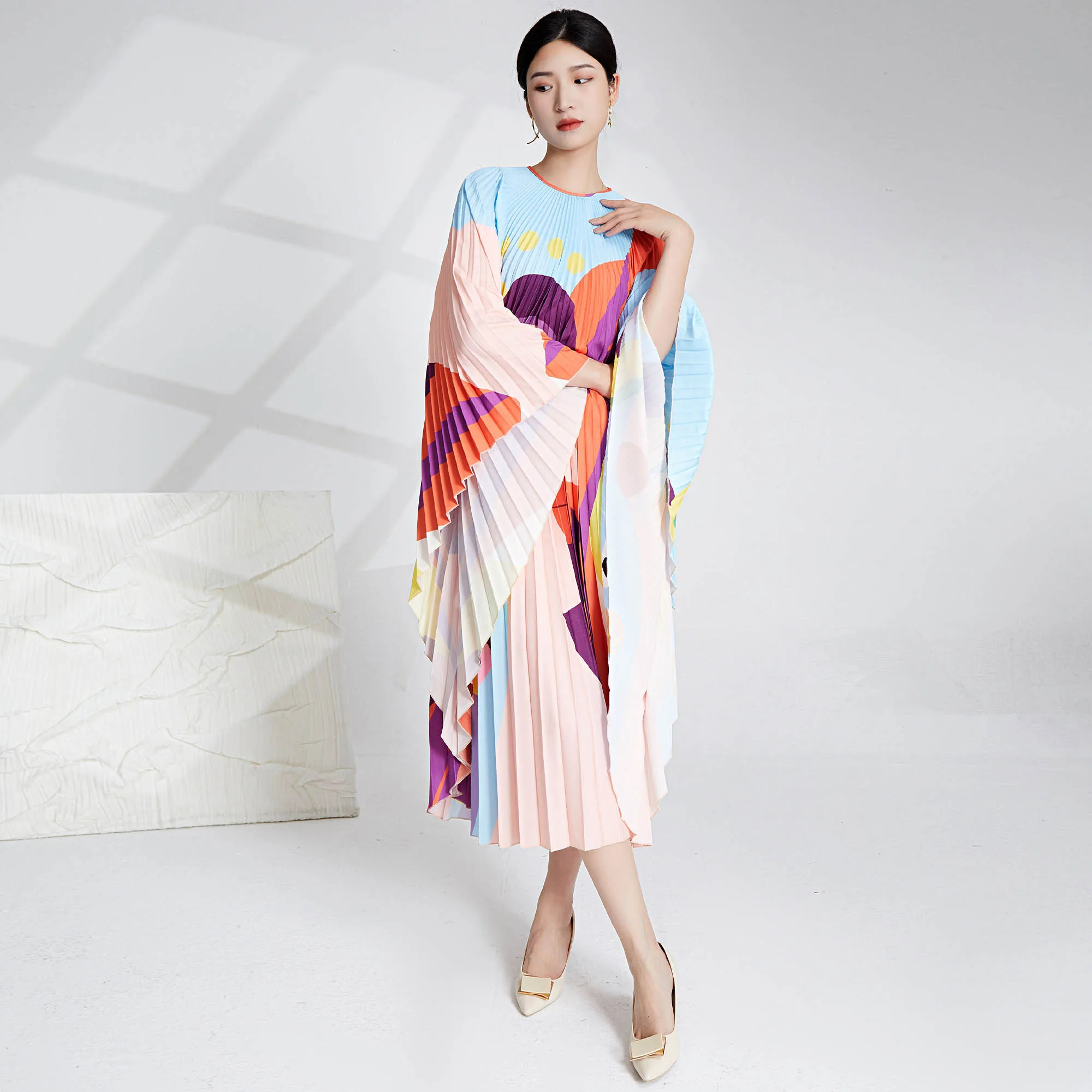 2025 New Elegant Pleated Dress for Women Fast Shipping High Quality Woven Bat Sleeve Style Casual Fashionable Plus Size