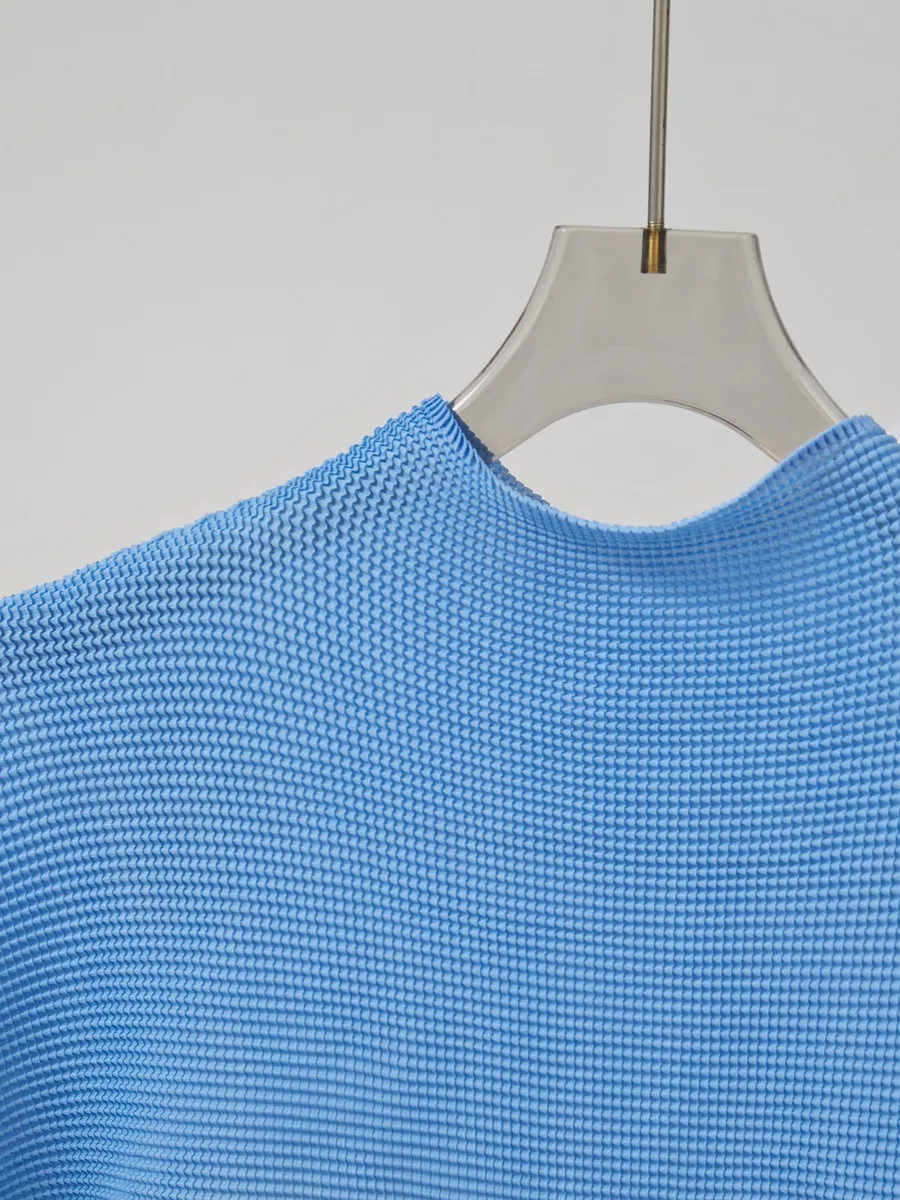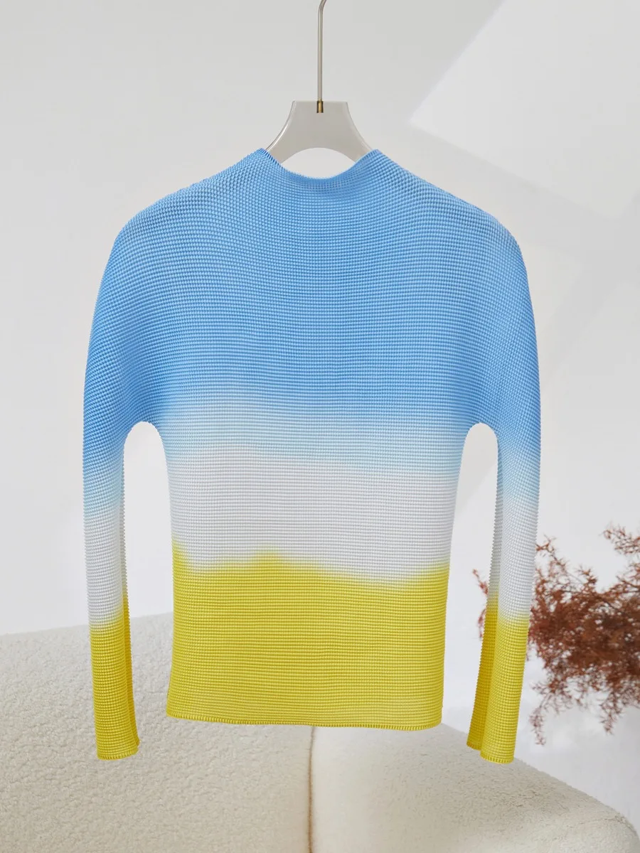 Miyake Women's High Quality Pleated Suit Fashionable A-Line Skirt Elastic Gradient Top Casual Two-Piece Set With Print Fabric