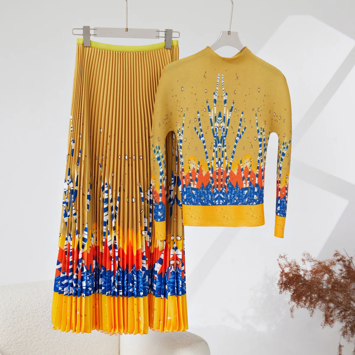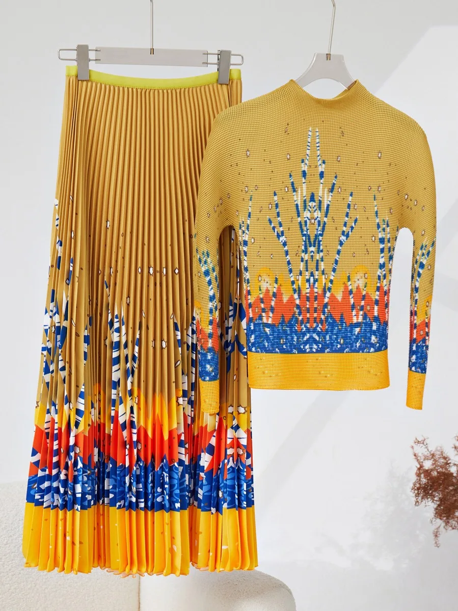 Women's High Quality Casual Fashion Set Elastic Stretch Printed Top and Long Skirt Two-Piece Set Made of Fabric