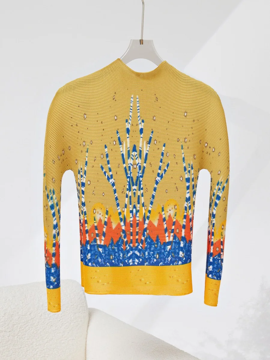 ZYHT 73907 Custom Design Long Sleeve High Neck Fashion Pleated Crystal Beads Ruched Knot High Slit Sexy Luxury Evening Dress