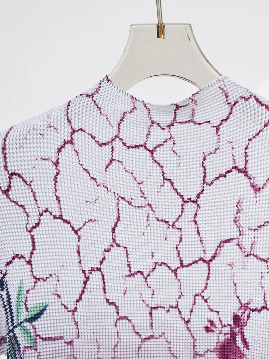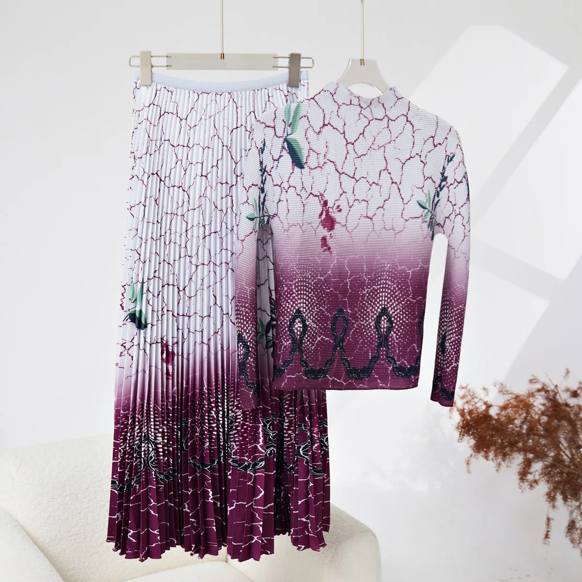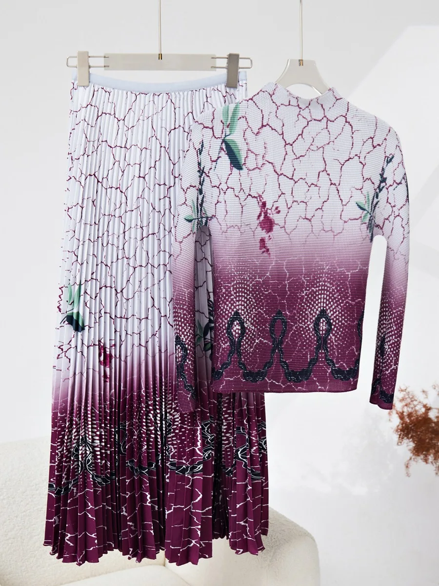 High Quality Women's Pleated Set Stretch Printed Top A-Line Skirt Miyake Fashionable Women's Two-Piece Set