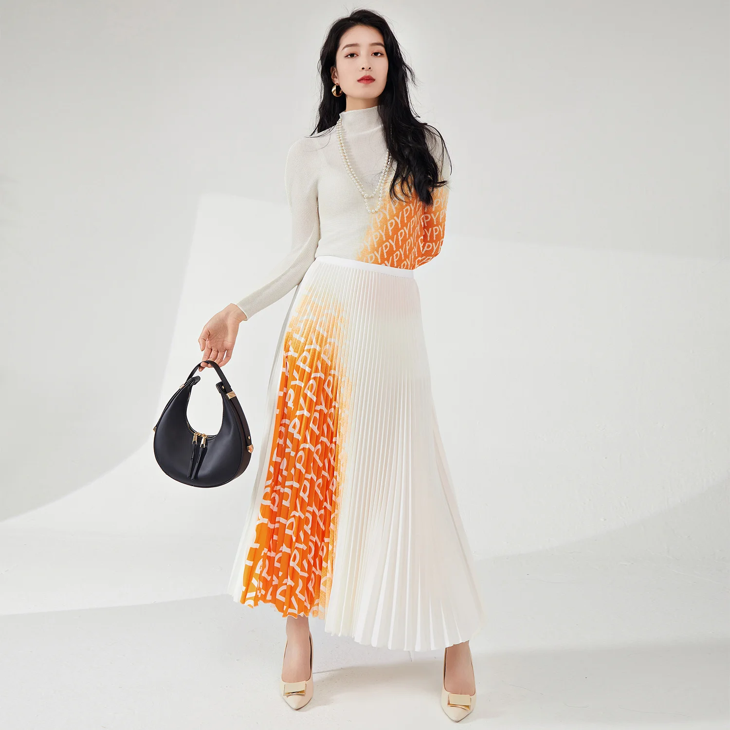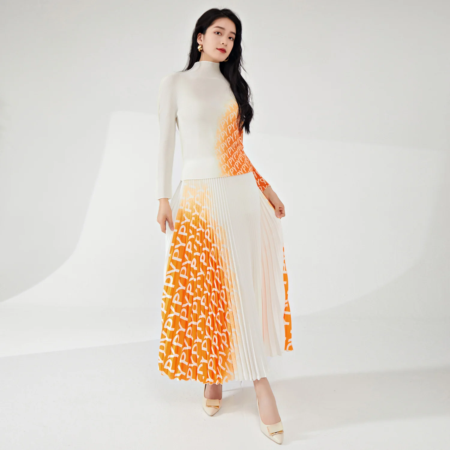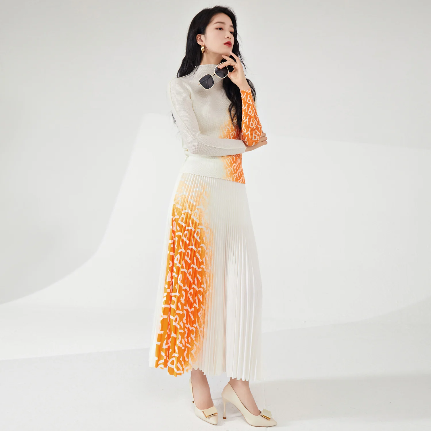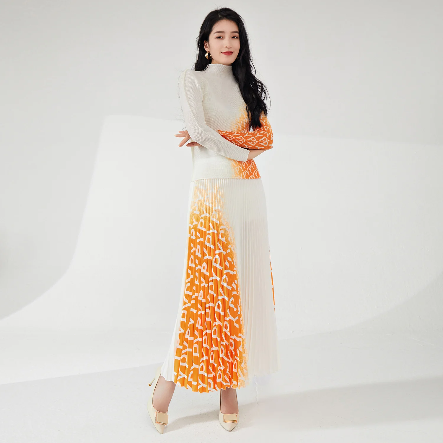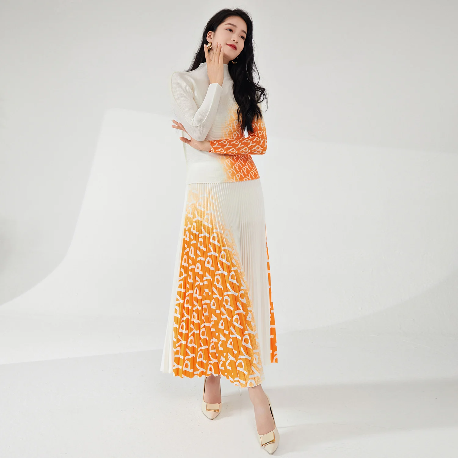 2025 Women's Summer Casual Two-Piece Set Personalized Design Stretch Printed Top and Long Skirt Made of Polyester