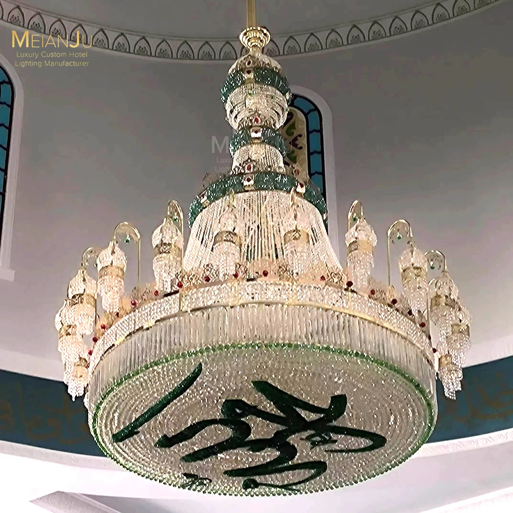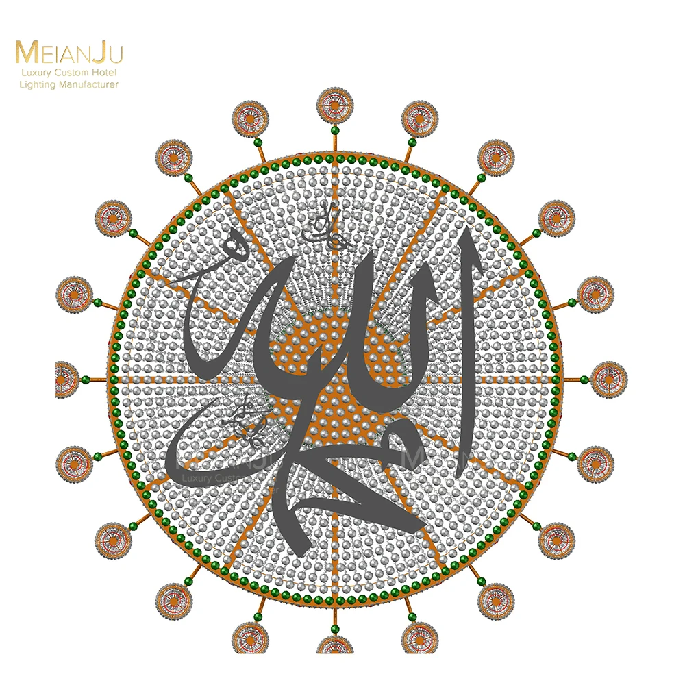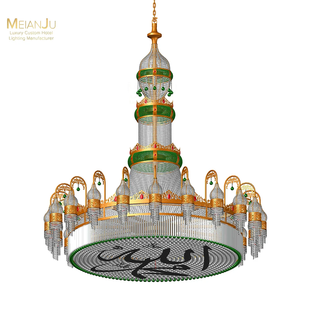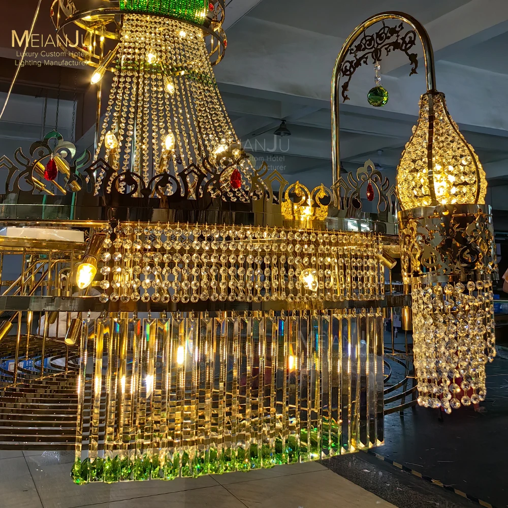 Golden Crystal-Decorated Stainless Steel Chandelier for Villa or Kazakh Mosque Elegant Pendant Lights for Interior Design