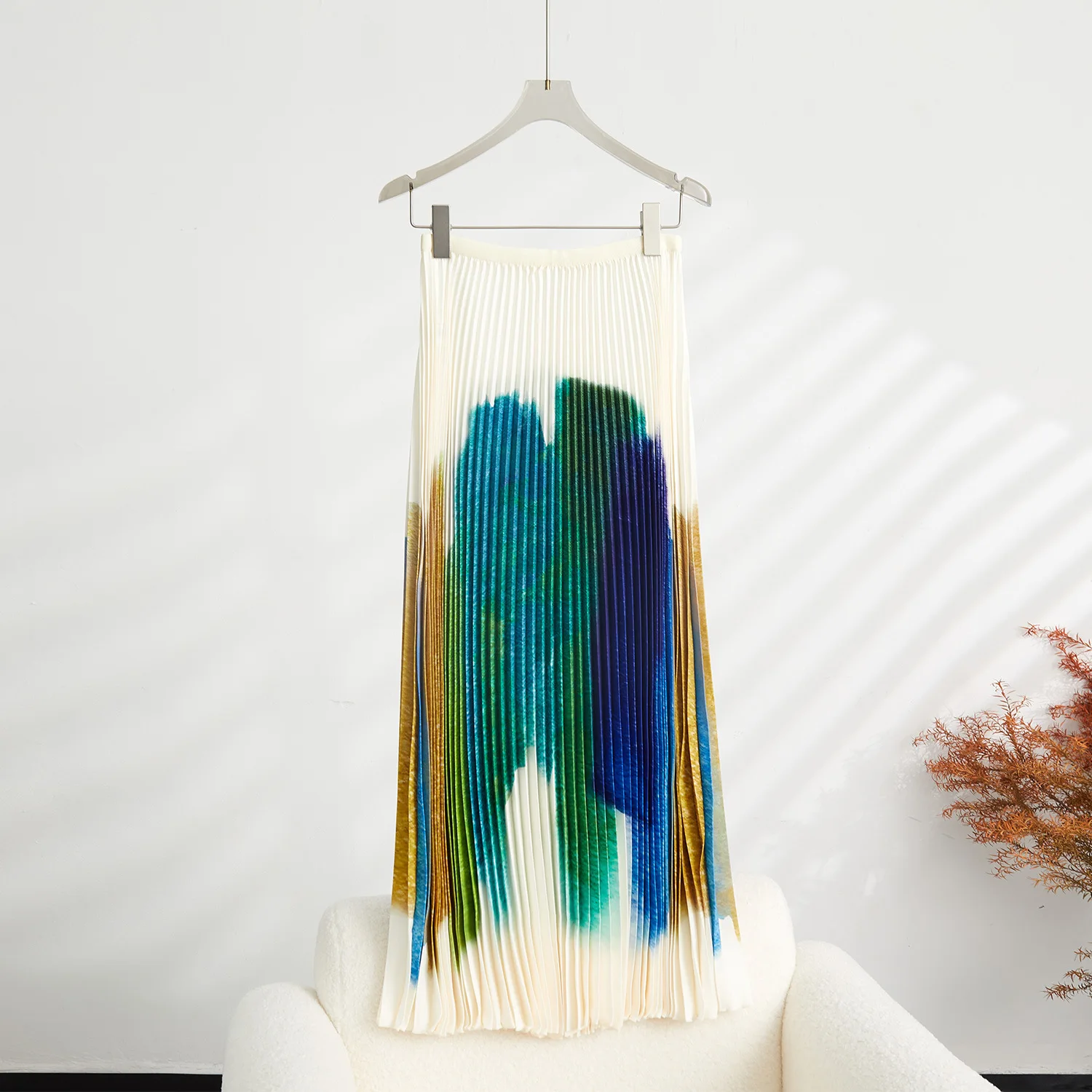 Long Pleated Skirt Set Women Summer High Quality Miyake Pleated Shirt and Printed Pleated Skirt Women 2 Piece Sets