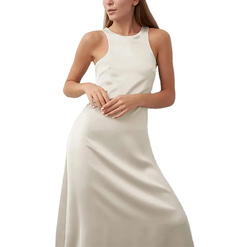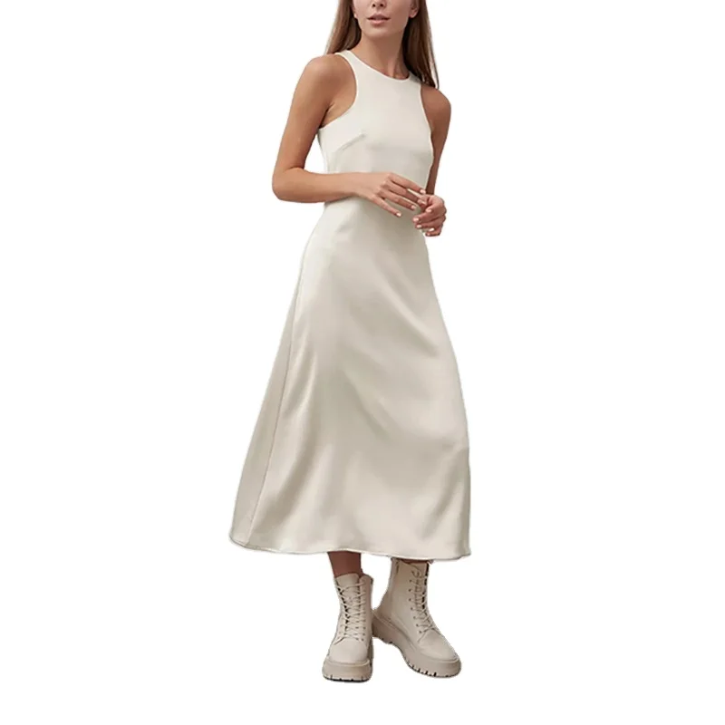 Custom High Quality Spring Summer O-Neck Dress Vest Loose Midi Skirt Simple and Rustic Women's Casual Clothing