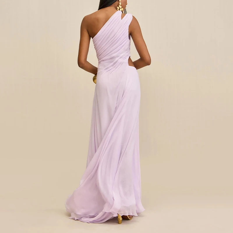 ZYHT 73995 Hollow Out Pink Chiffon High Split One Shoulder High End Women Lady Luxury Evening Party Club Dress