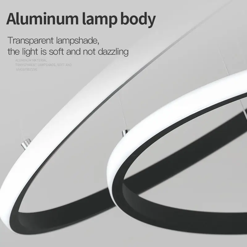 JACKSUN Modern LED Gold Chandelier 3 Ring Dimmable Circular 60+40+20cm Hanging Light Dinning Room Lightweight Aluminum Lamp