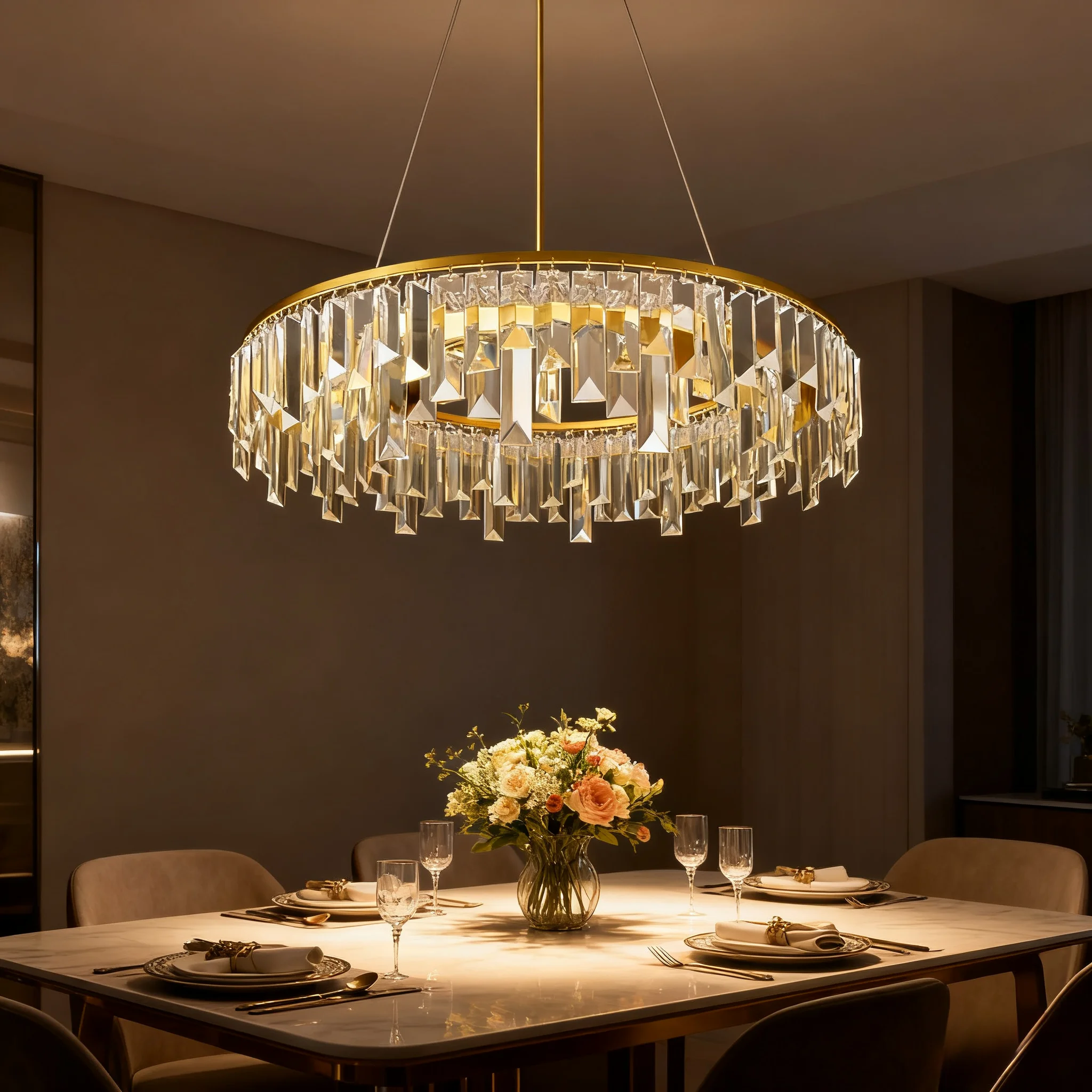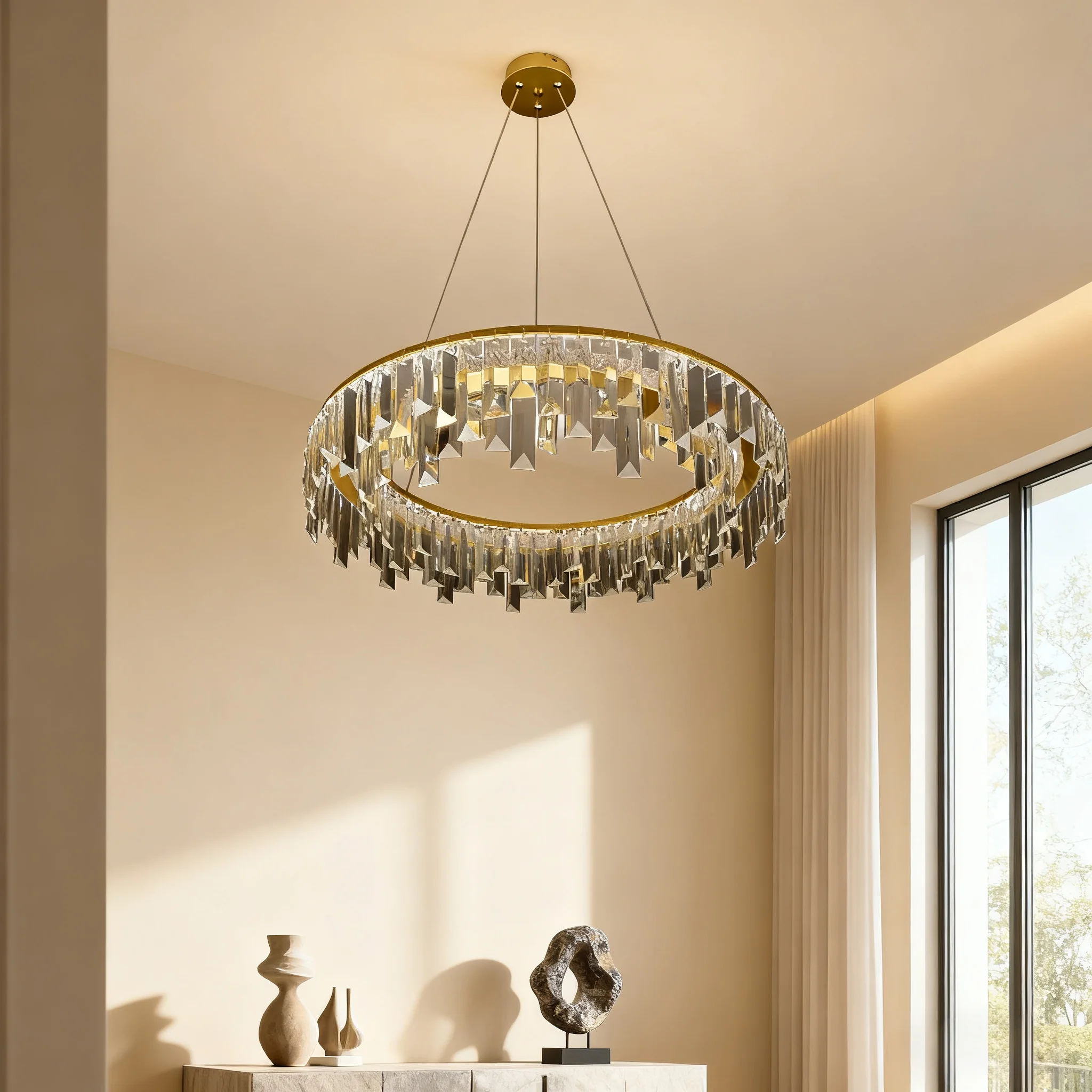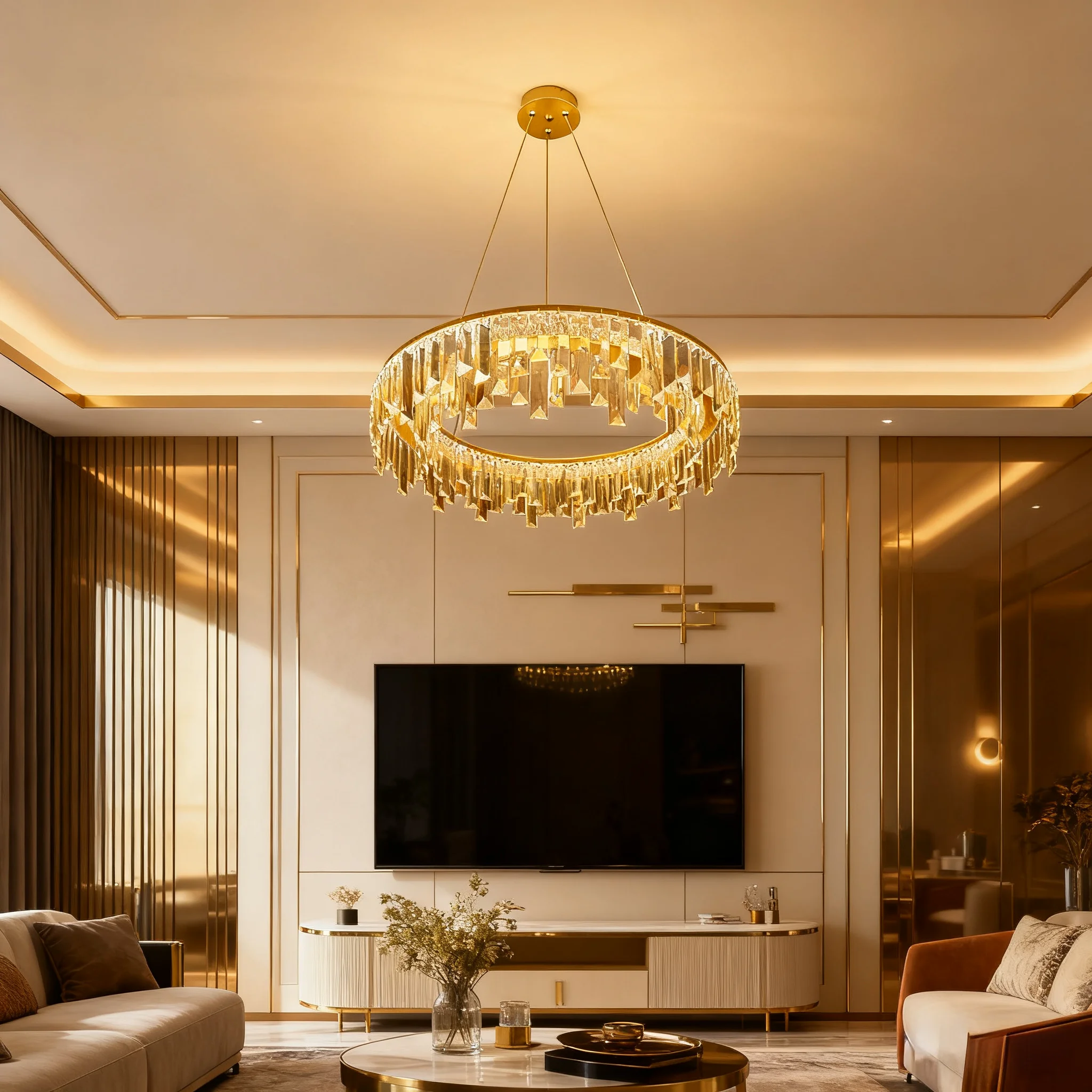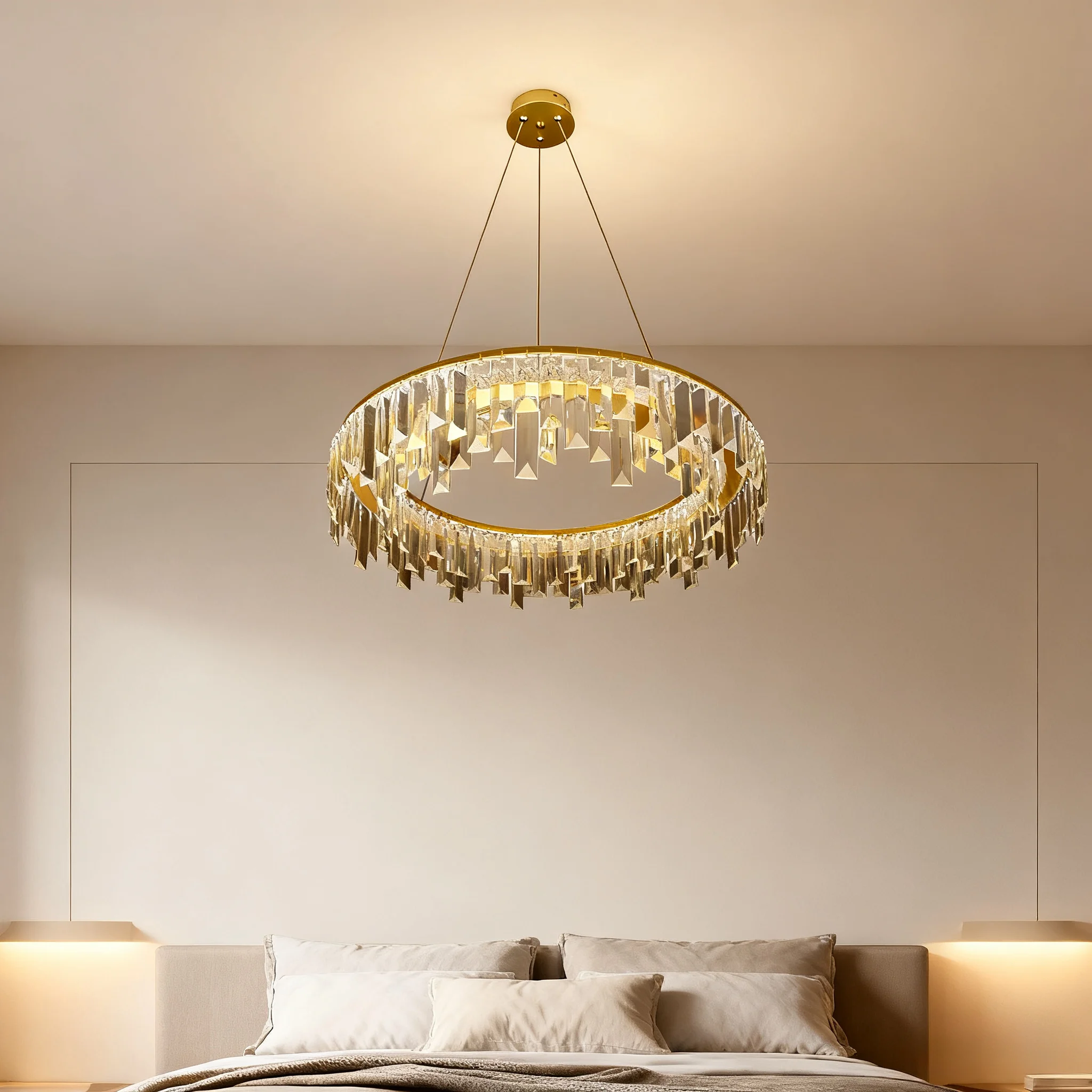 JACKSUN Golden Crystal Pendant Lamp Luxury Living Room Chandelier for Home Decoration Dining Bedroom Pendant Light