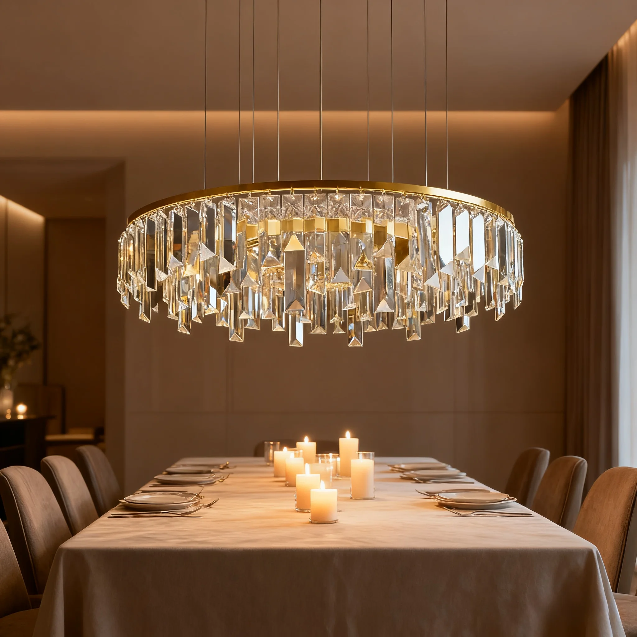 Zeal Lighting Hotel Lobby Hall Decorative Large Hanging Light Customized Long Gold Crystal Elegant Chandelier
