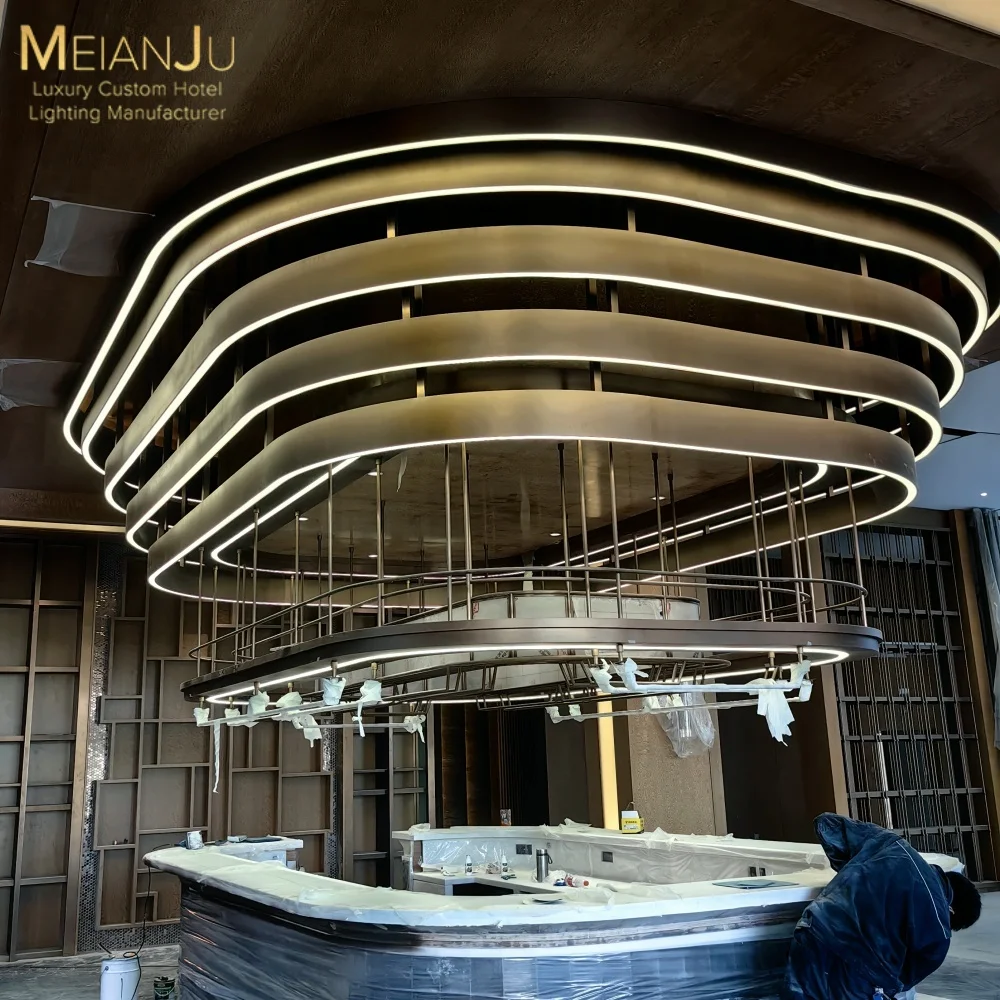 Wedding Hall Chandelier Hotel Hanging Pendant Light Customized Amber Crystal Chandelier Lighting for Lobby