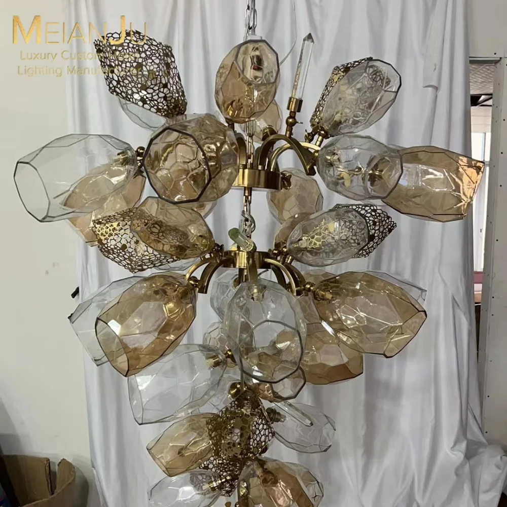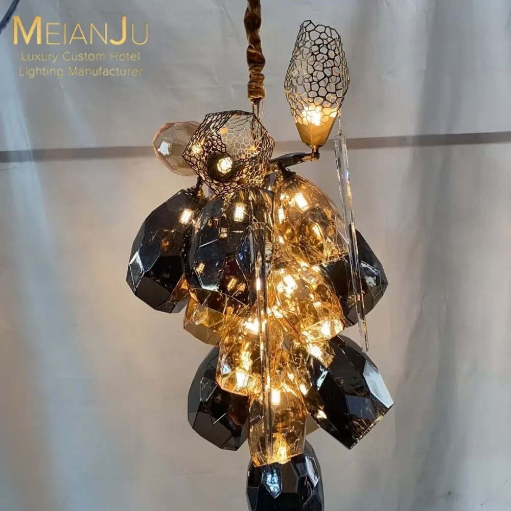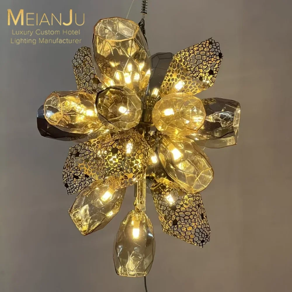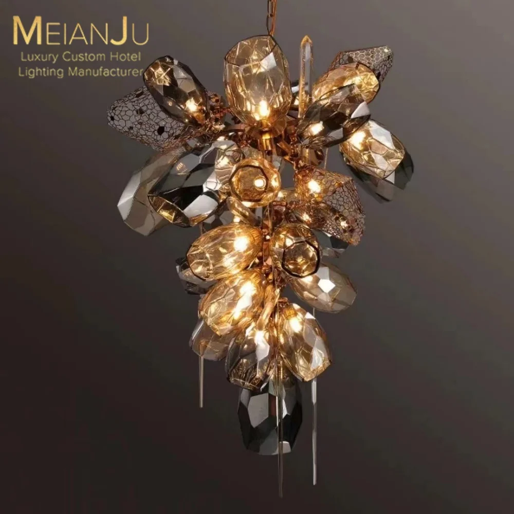 Wedding Hall Chandelier Hotel Hanging Pendant Light Customized Amber Crystal Chandelier Lighting for Lobby